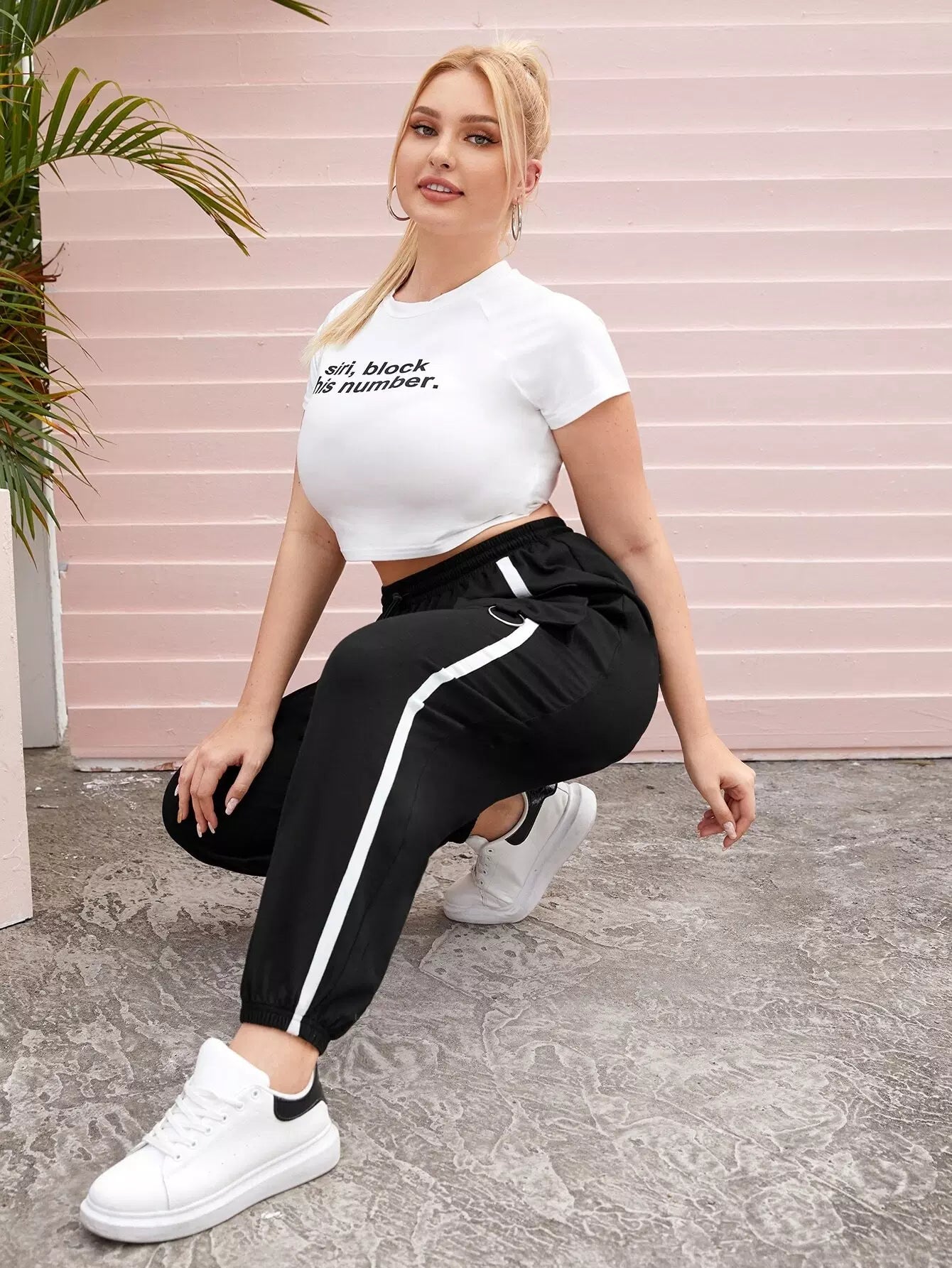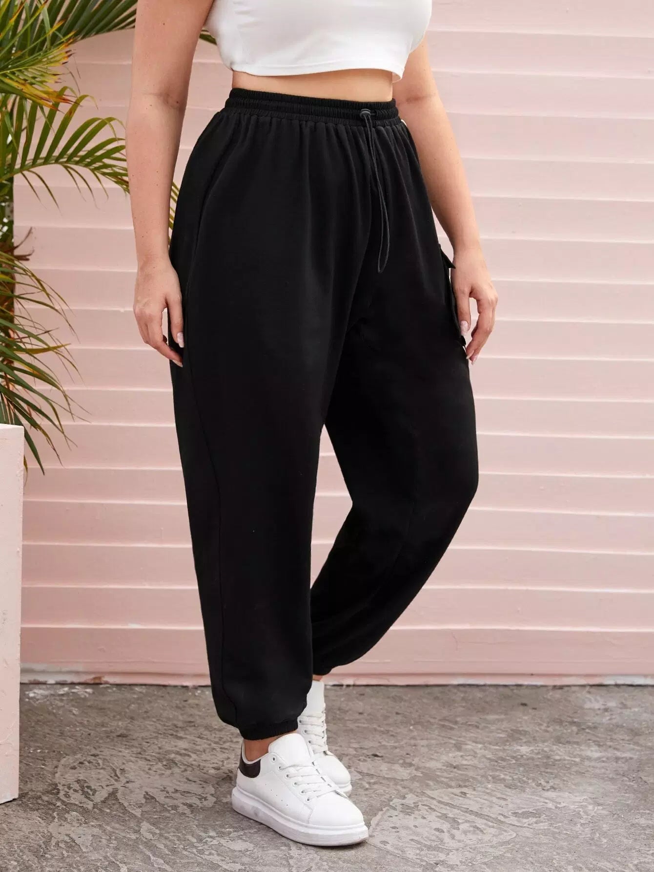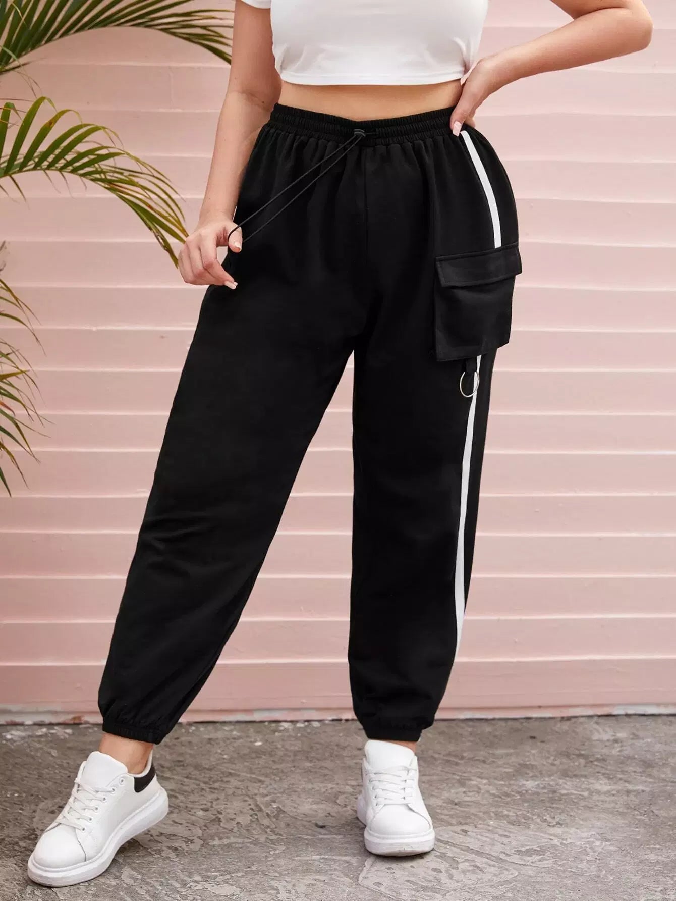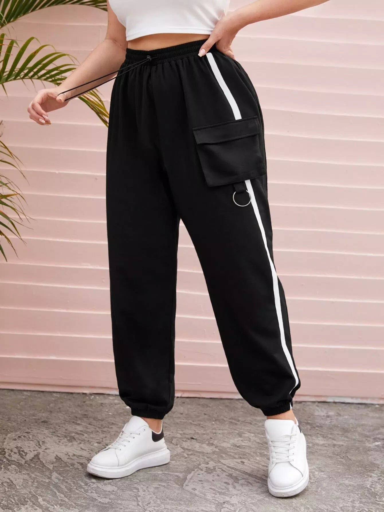 بنطلون رياضي مرقع بجيب جانبي بشريط بلس بلس بلس بلس