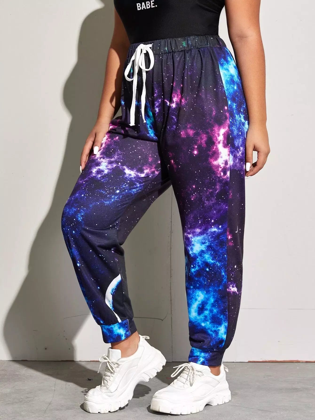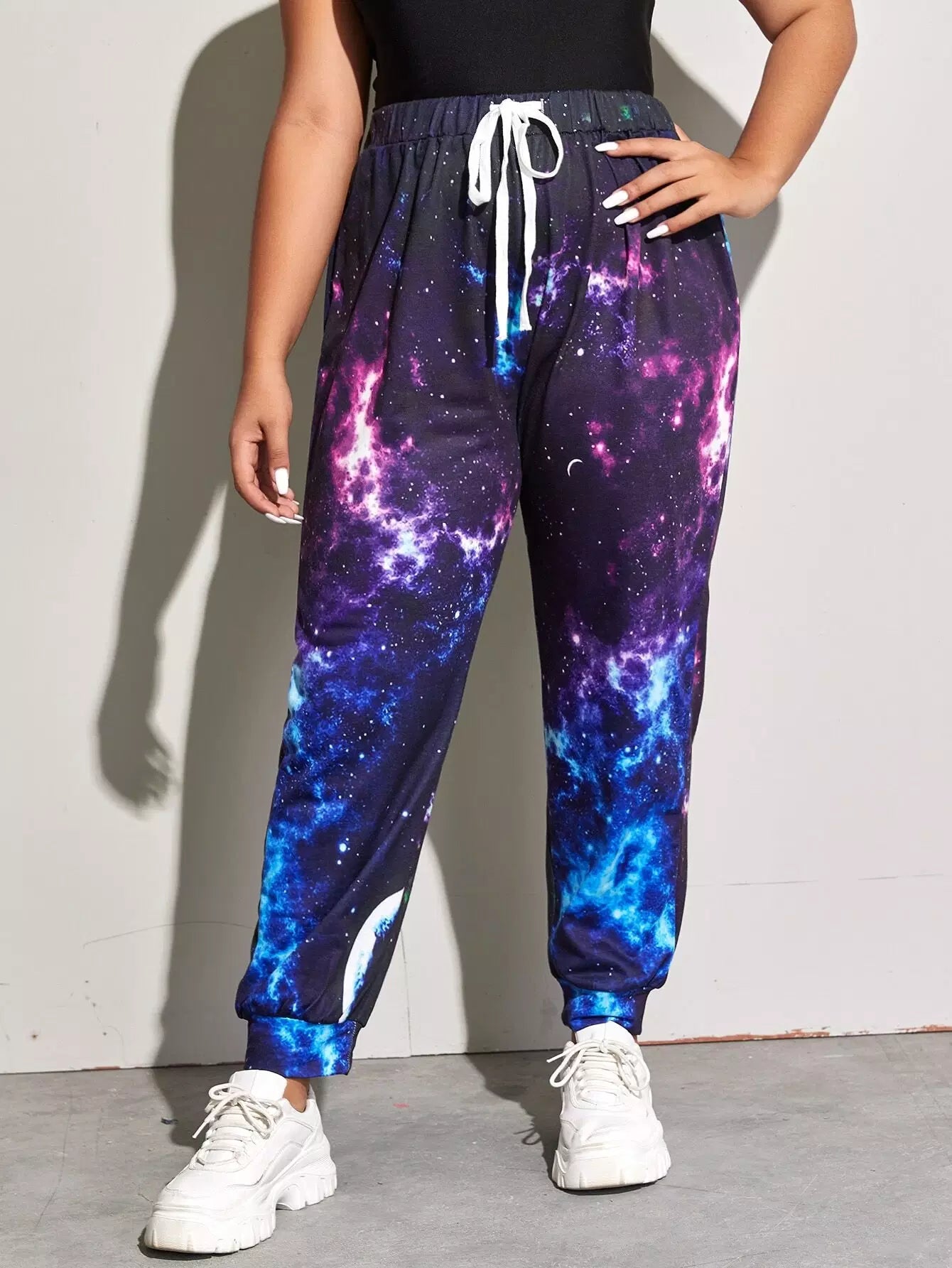 بنطال رياضي بطبعة مجرة برباط خصر مفتوح بلاس
