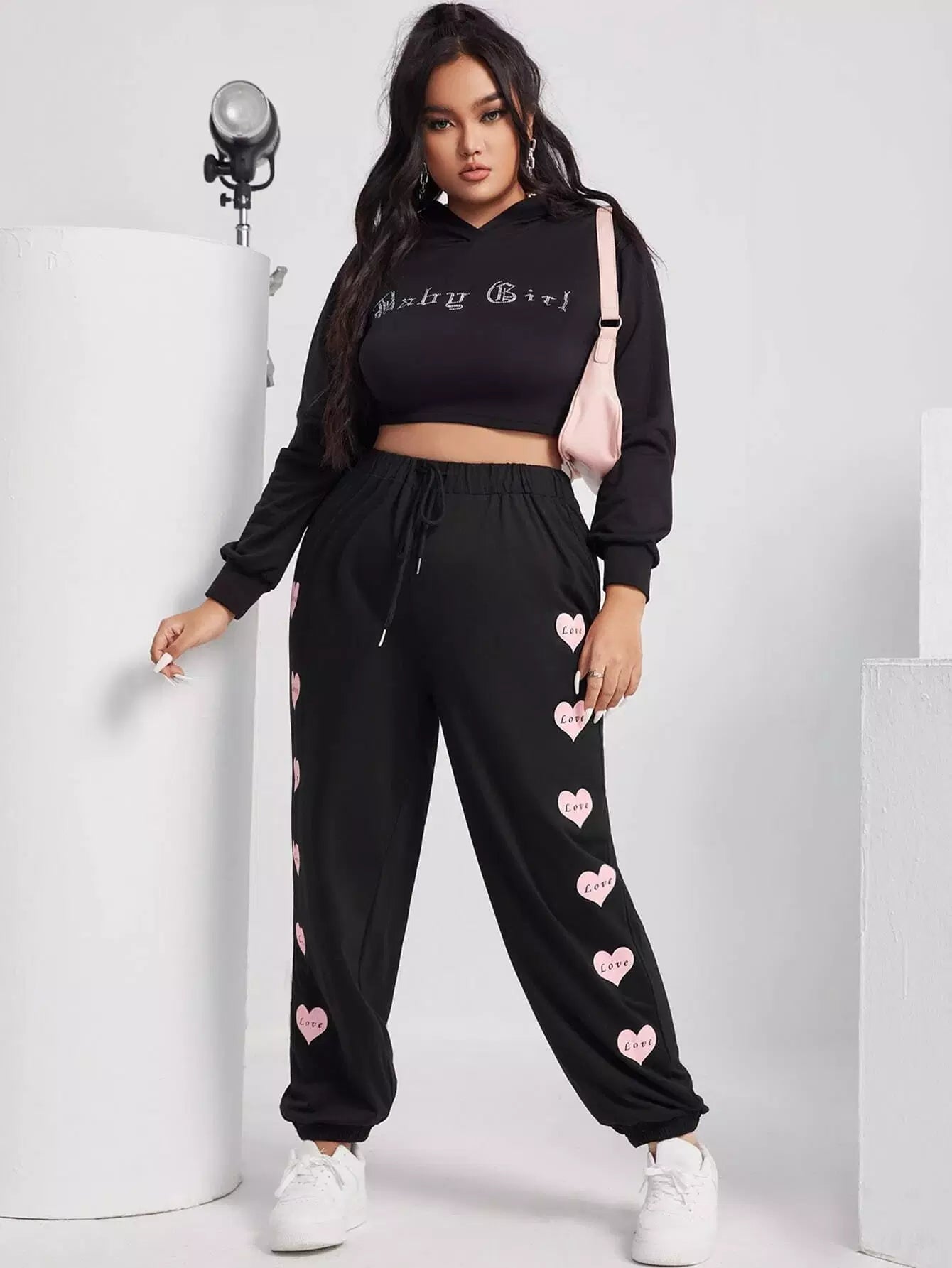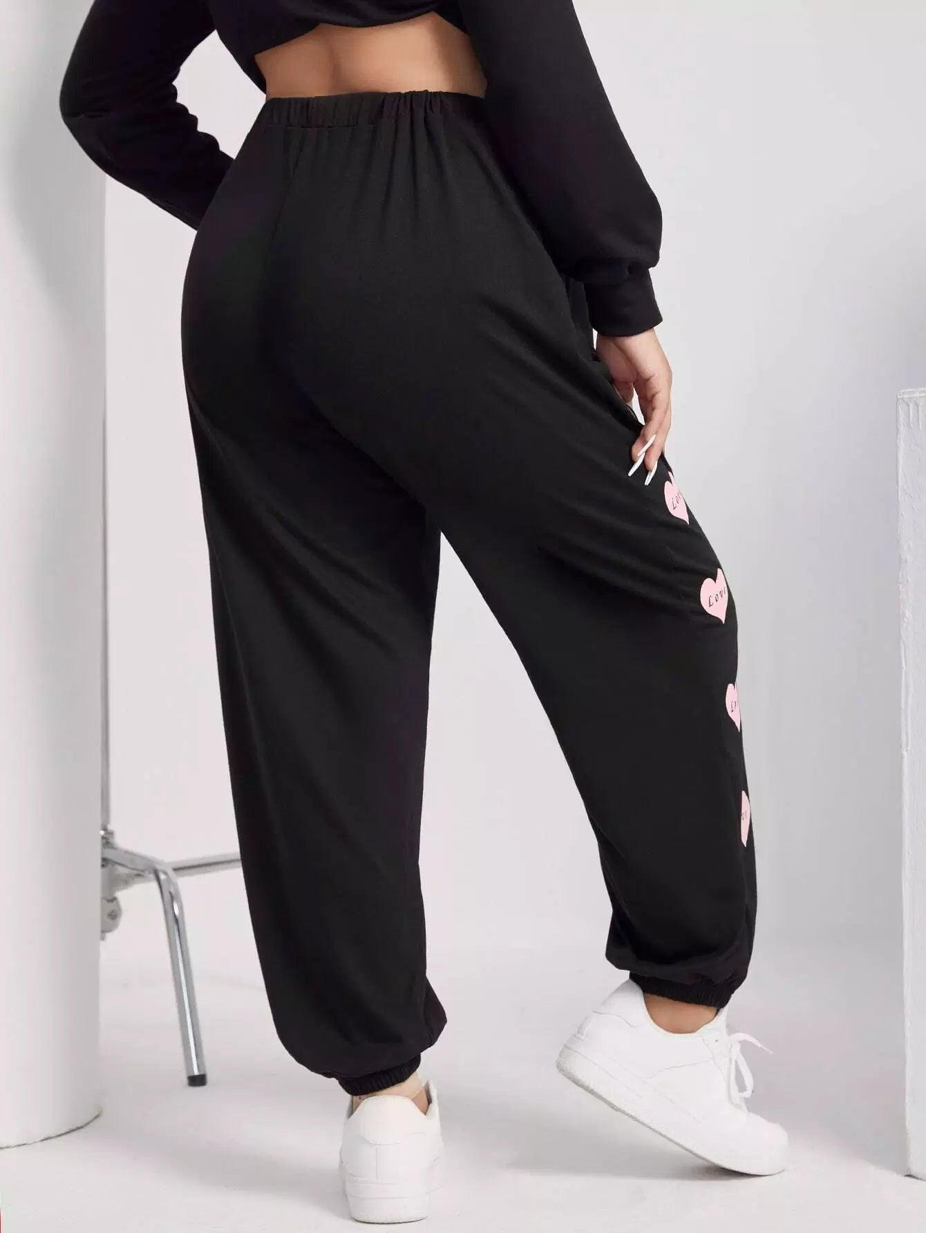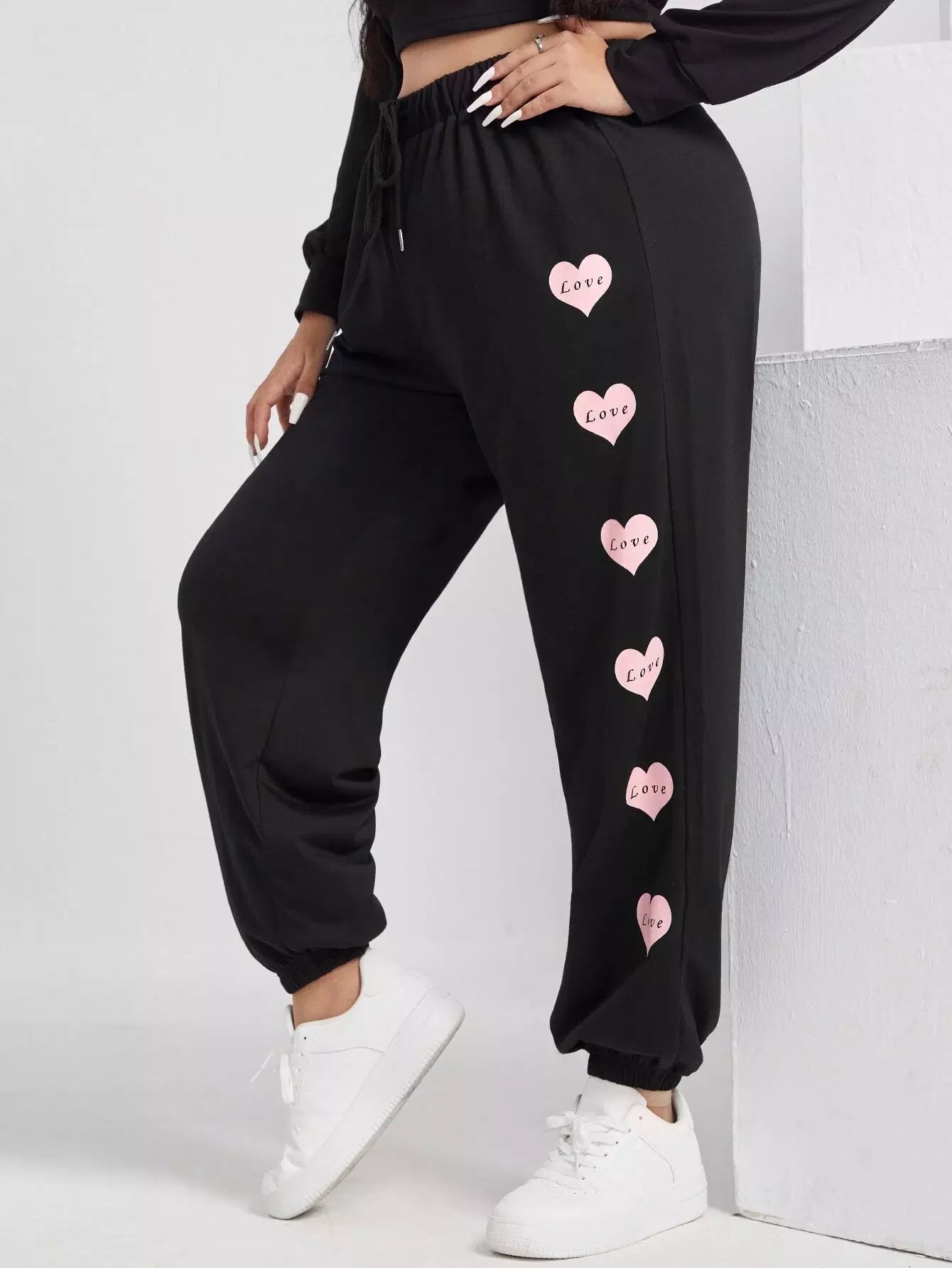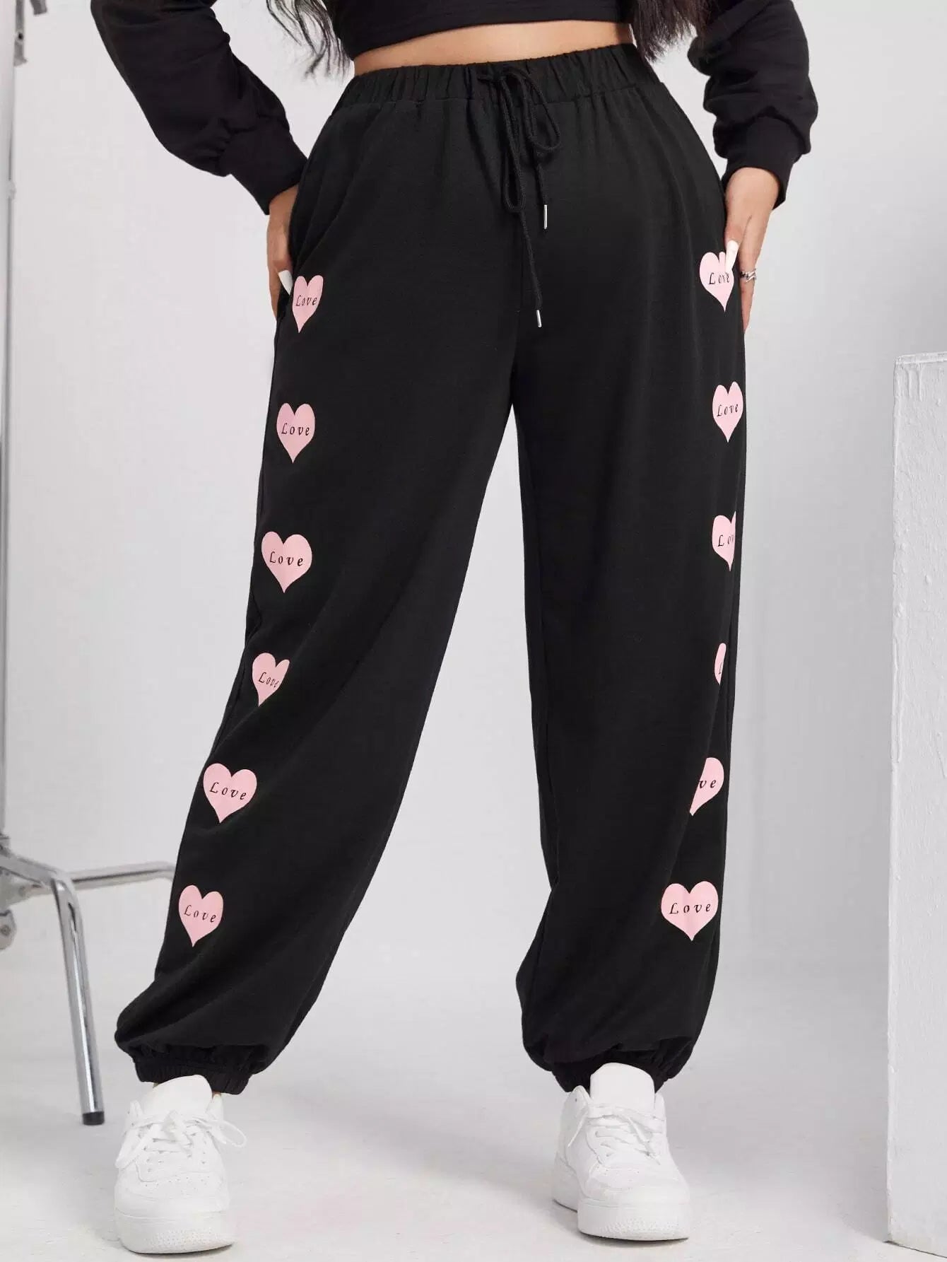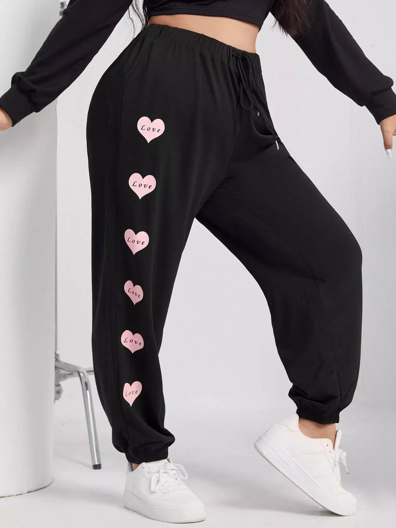 بنطال رياضي بطبعة قلب مطبوع على الخصر برباط خصر زائد