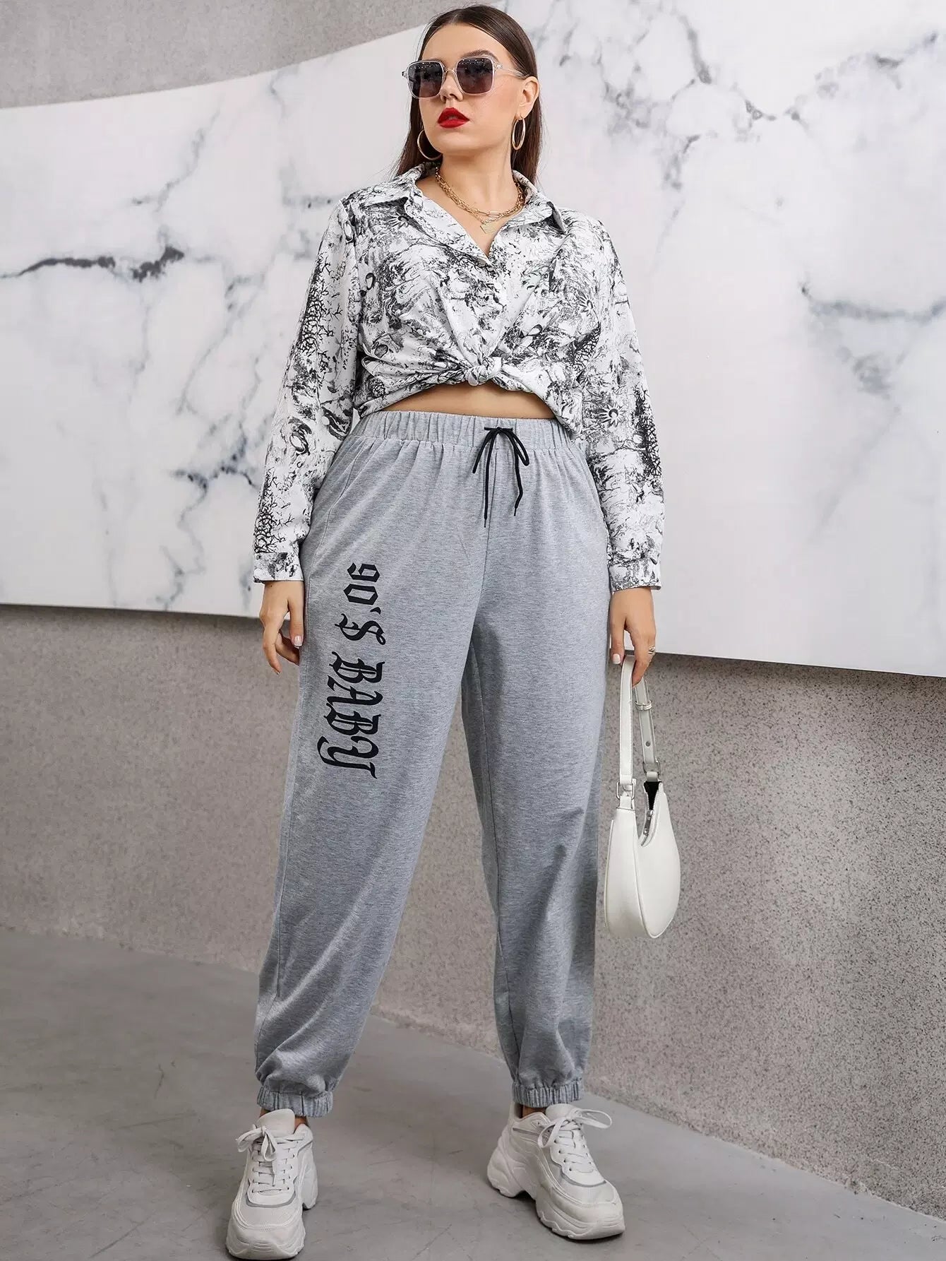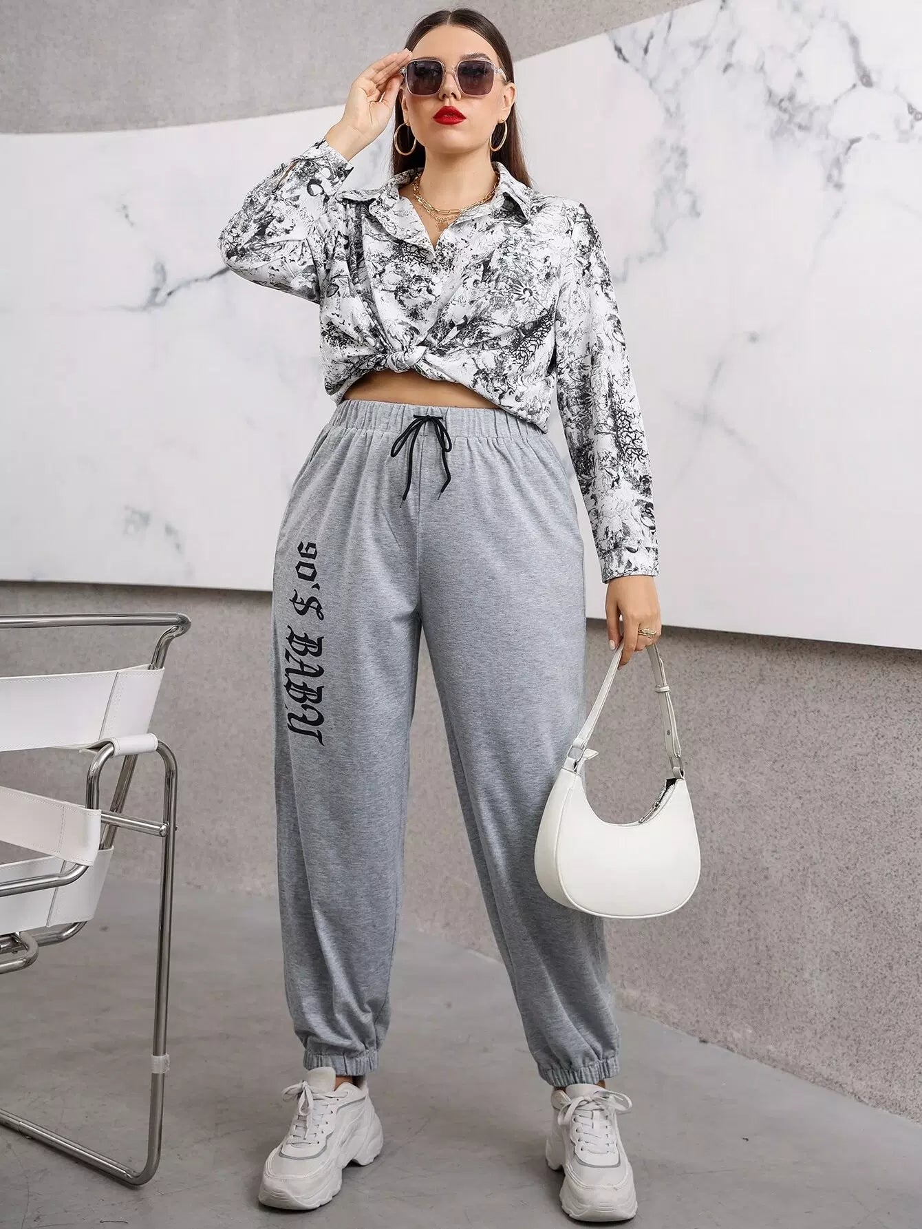 بنطال رياضي برباط خصر برسومات على شكل حرف زائد