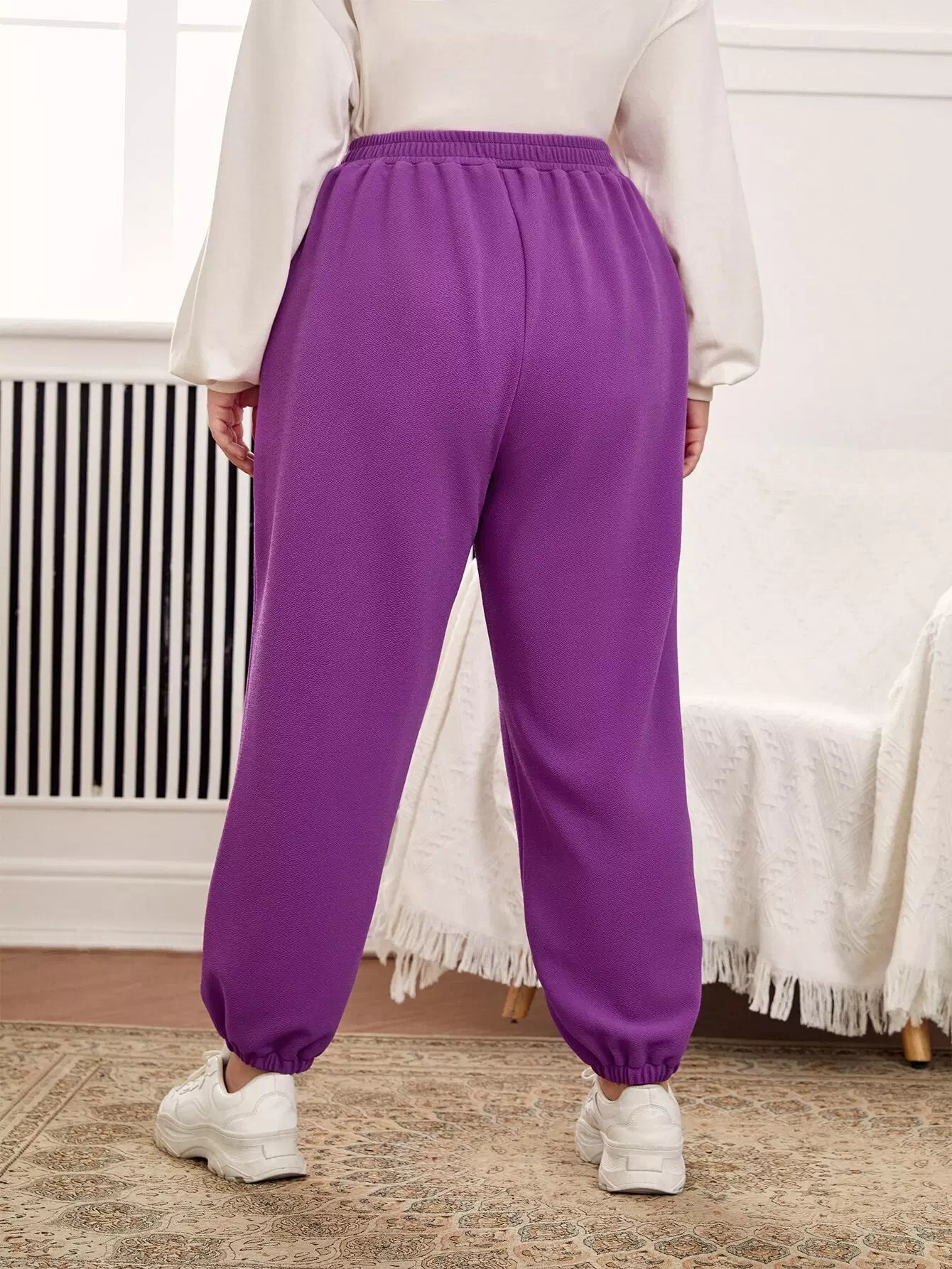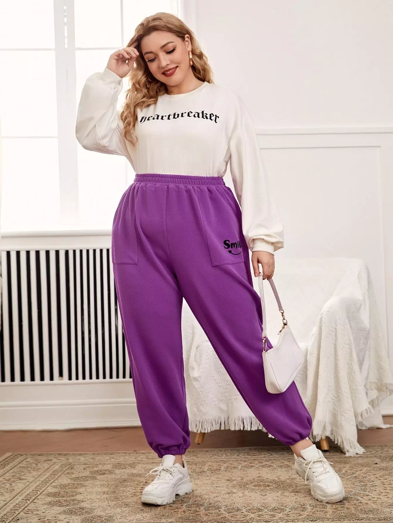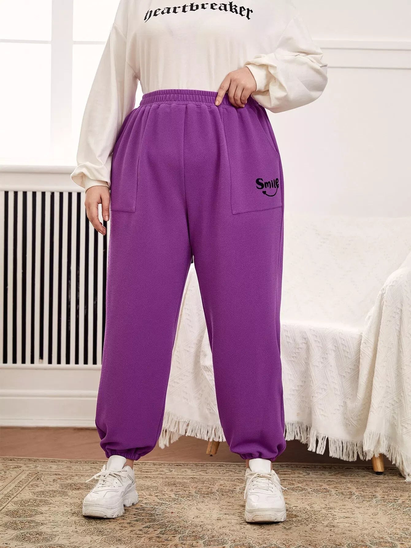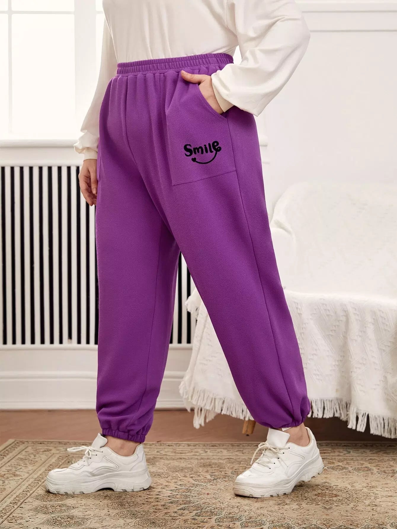 بنطلون رياضي بجيب مائل برسومات حروف زائد