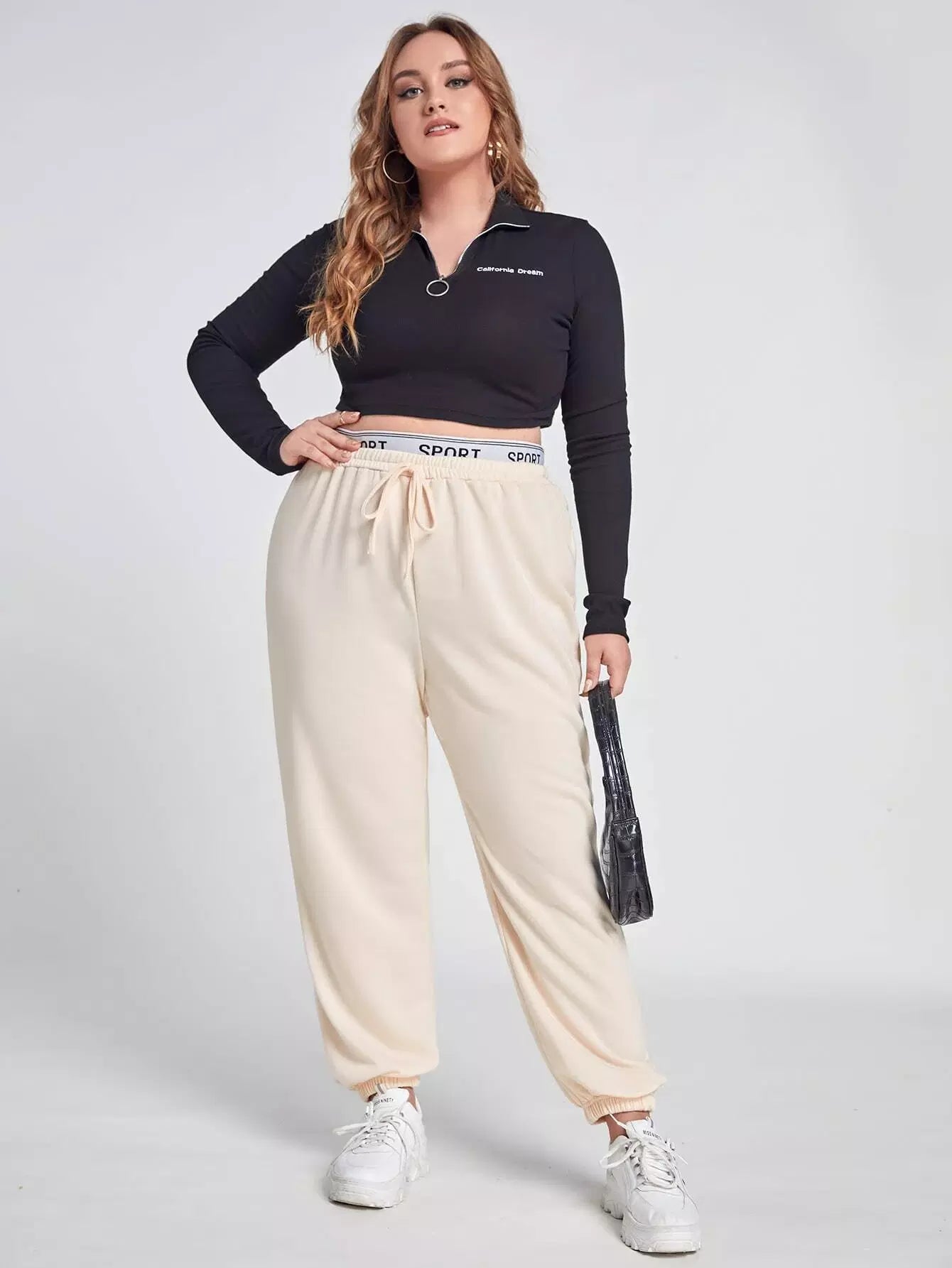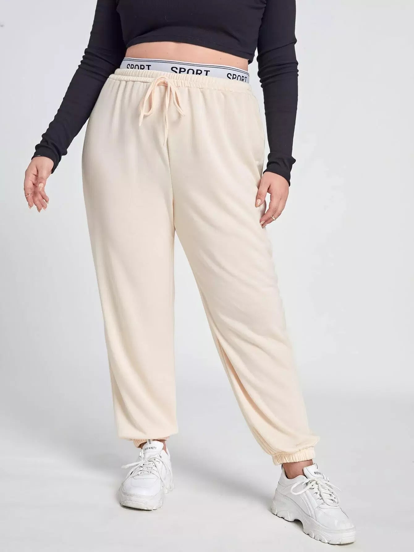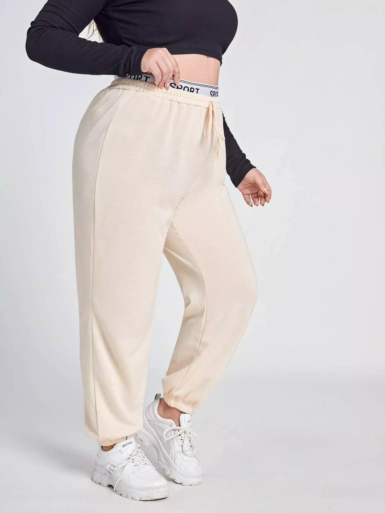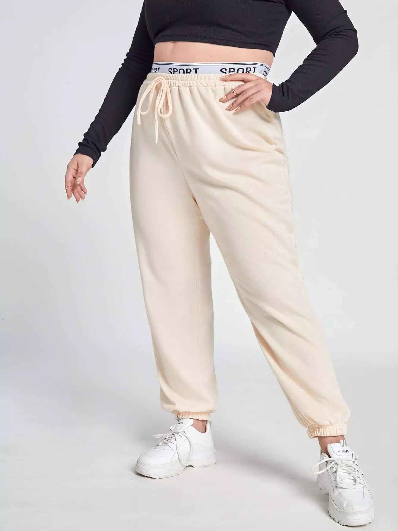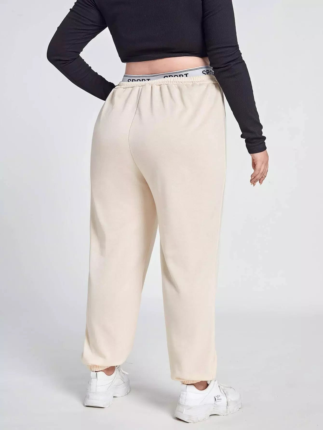 بنطال رياضي بخصر مطبوع عليه حروف زائد برباط خصر مطبوع