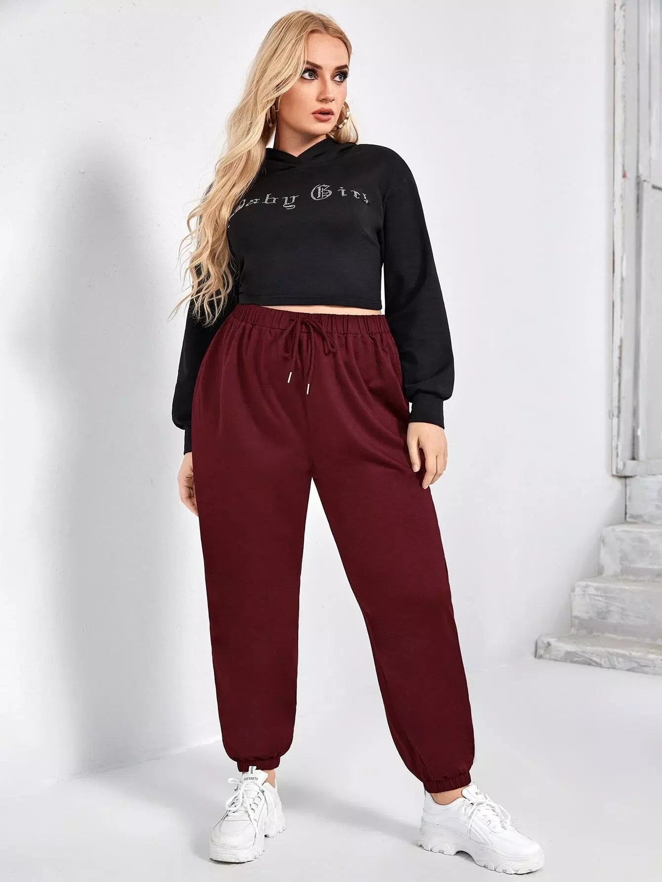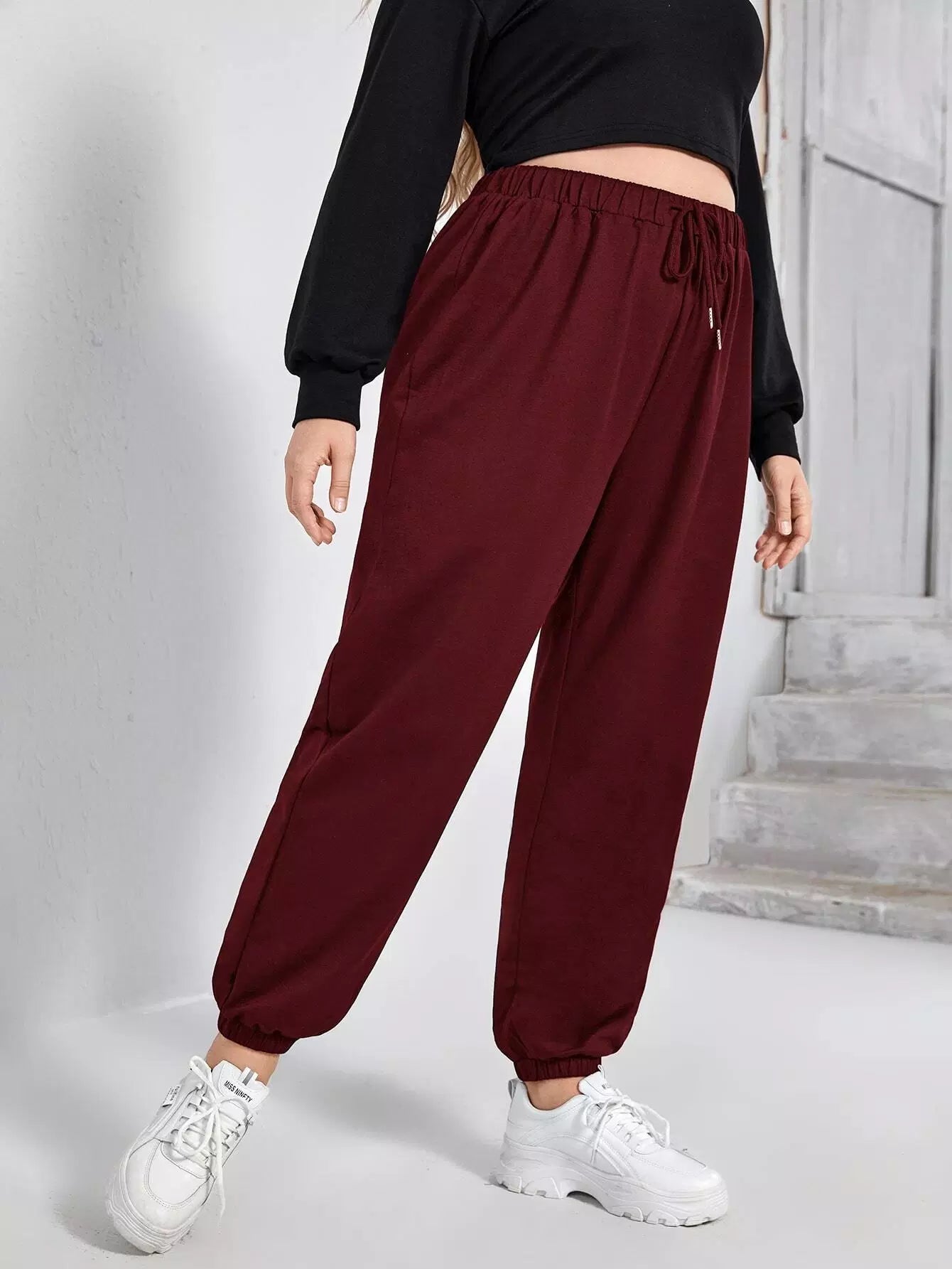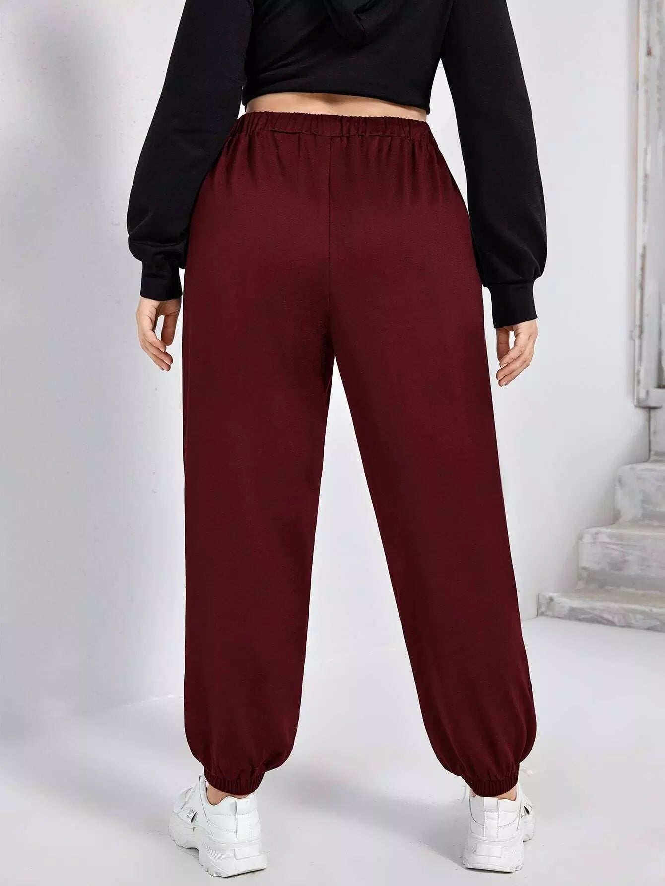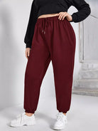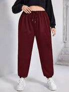بنطال رياضي ضيق الخصر برباط خصر سادة بلس