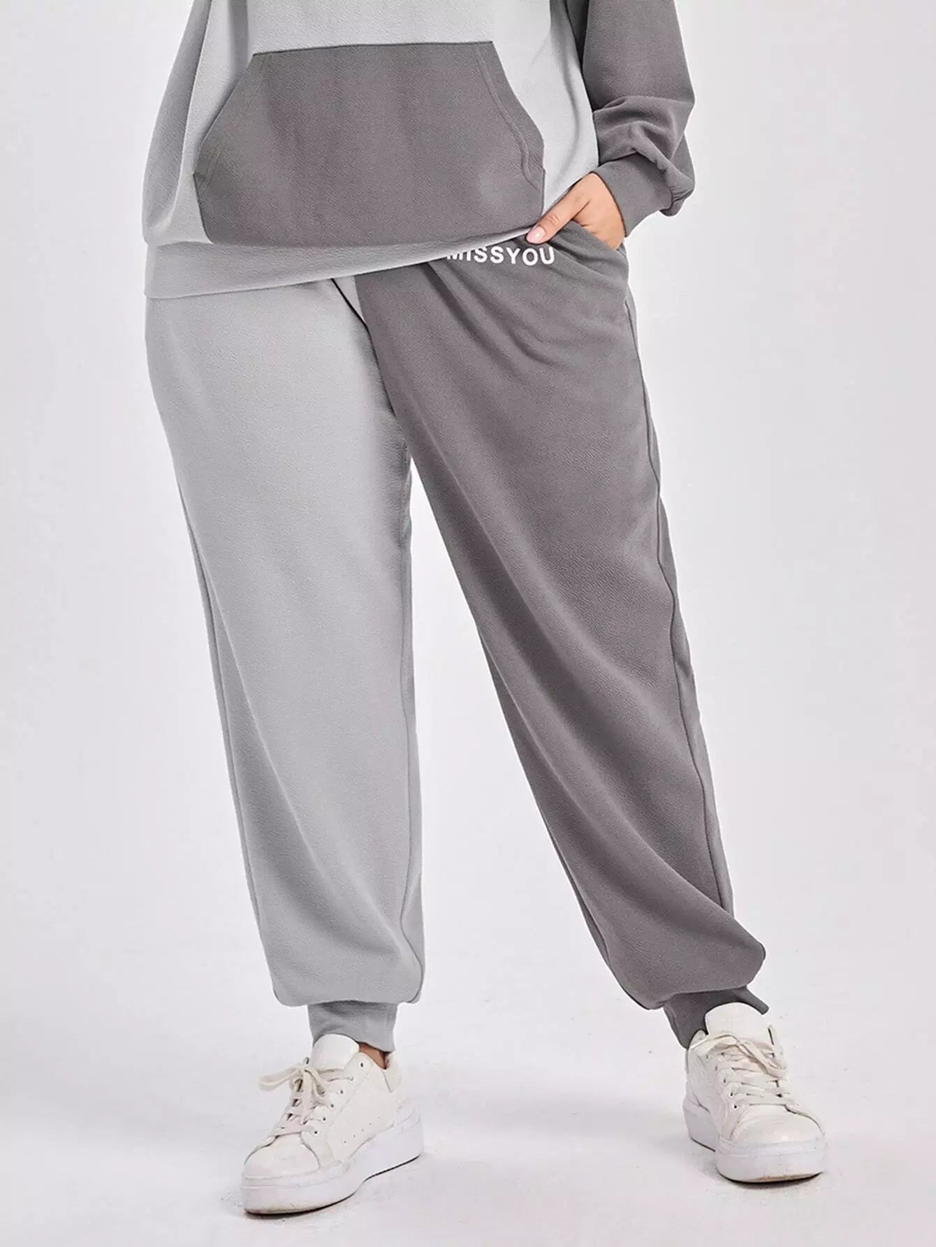 Plus Two Tone Letter Graphic Sweatpants