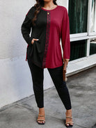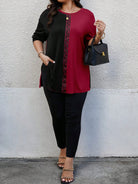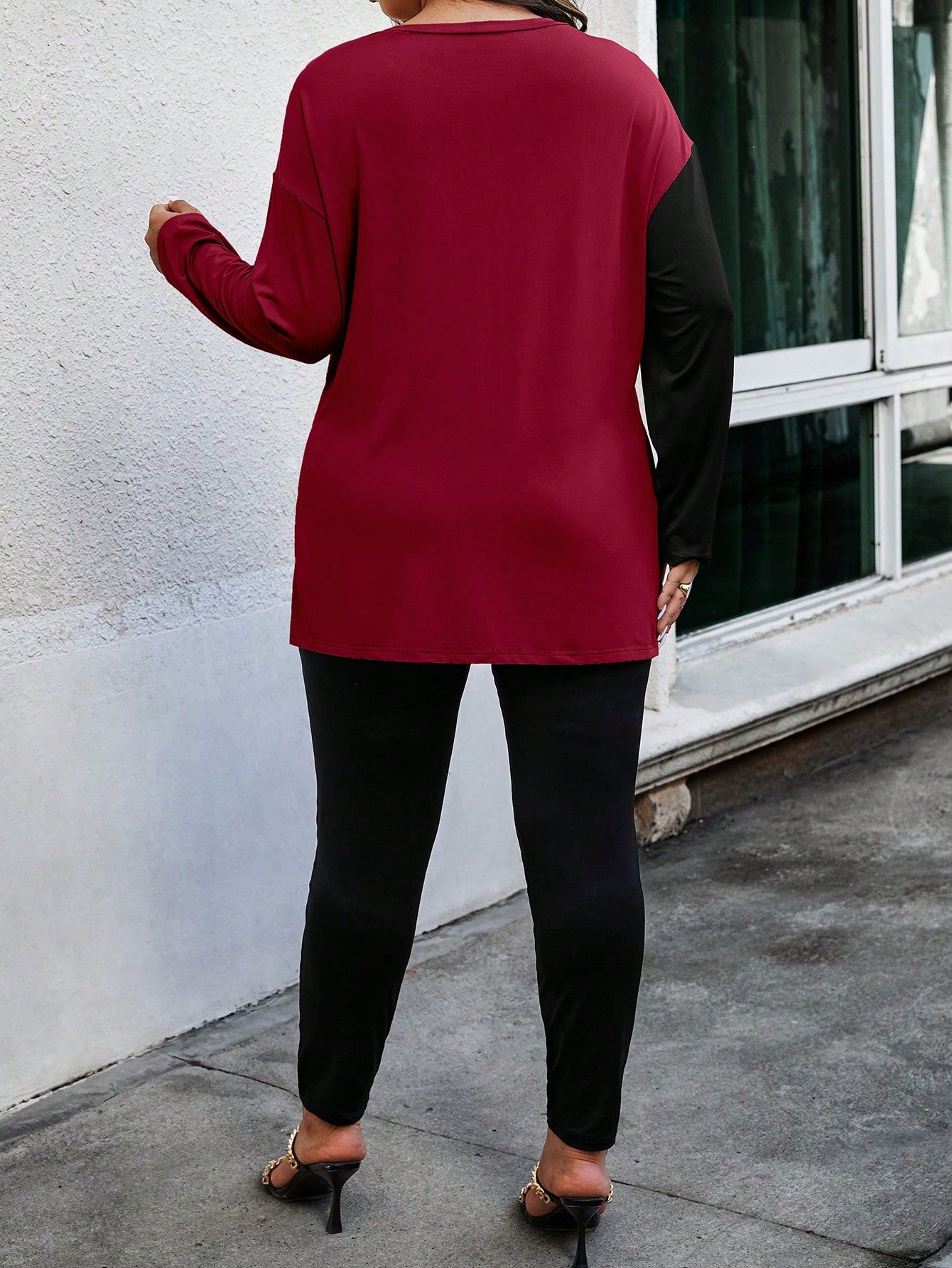 إيمري روز - تي شيرت وبنطلون كاجوال للنساء بأكمام طويلة وياقة دائرية وطبعة هندسية عشوائية مقاس كبير - قطعتين