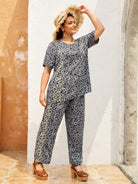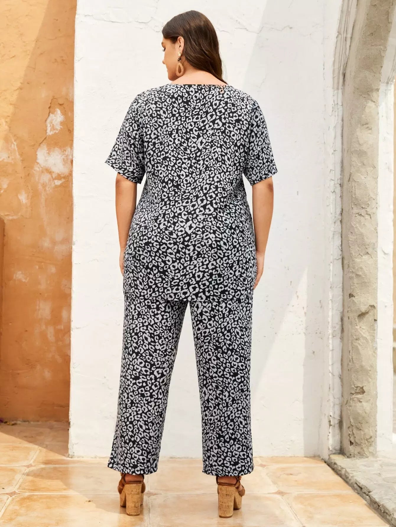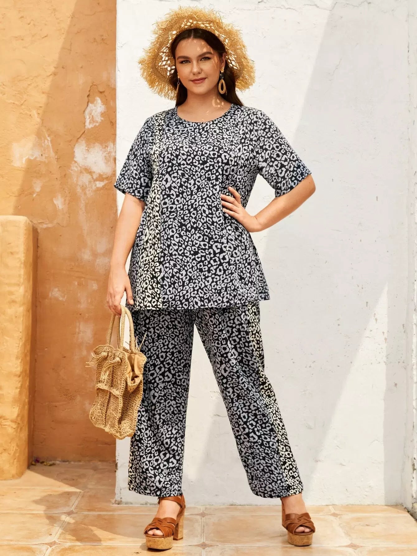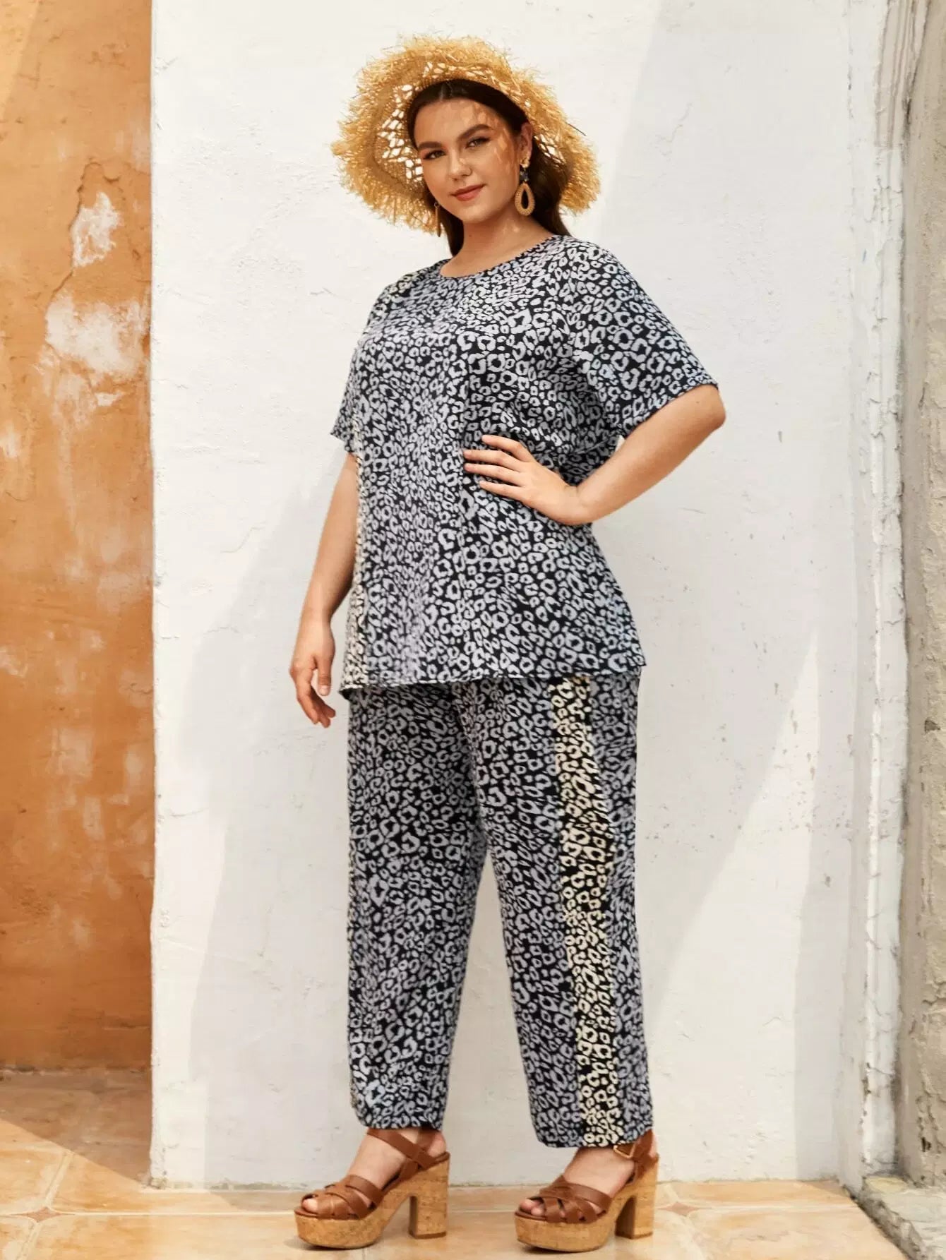 بلوزة وبنطلون مطبوع عليها بالكامل