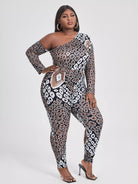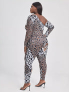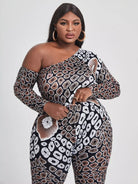 بلوزة برقبة غير متماثلة مطبوع عليها طبعة زائد وبنطال ضيق