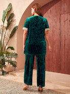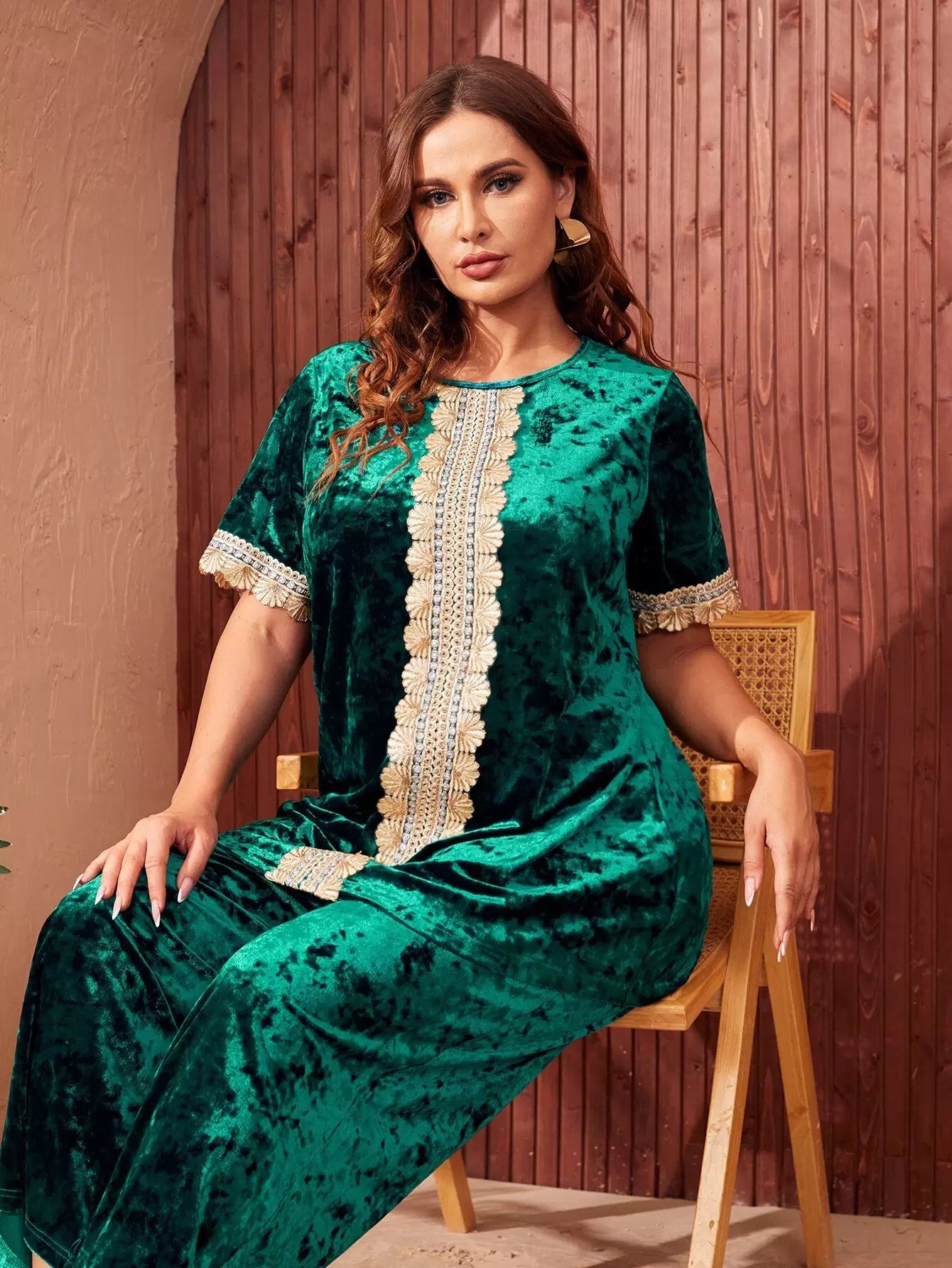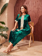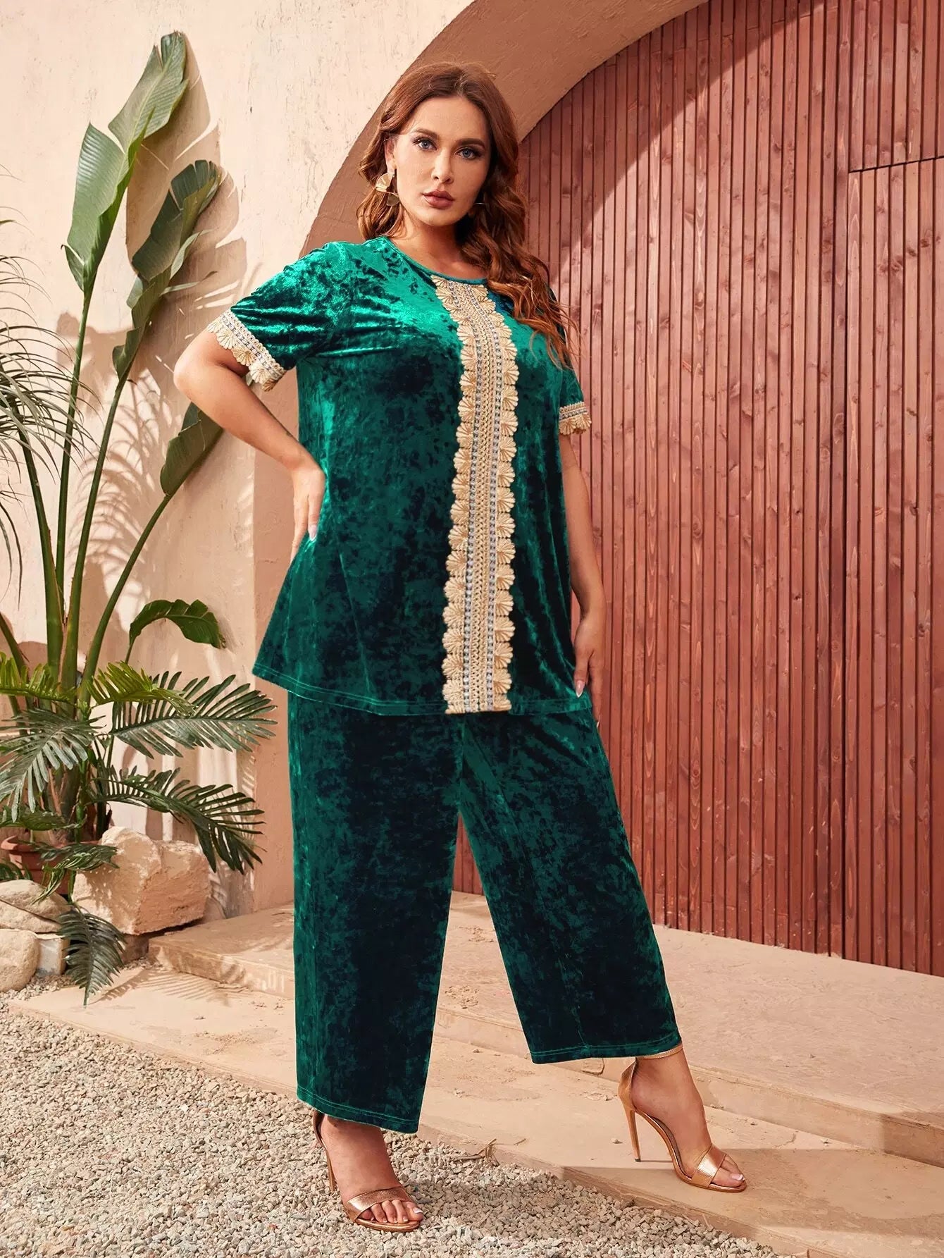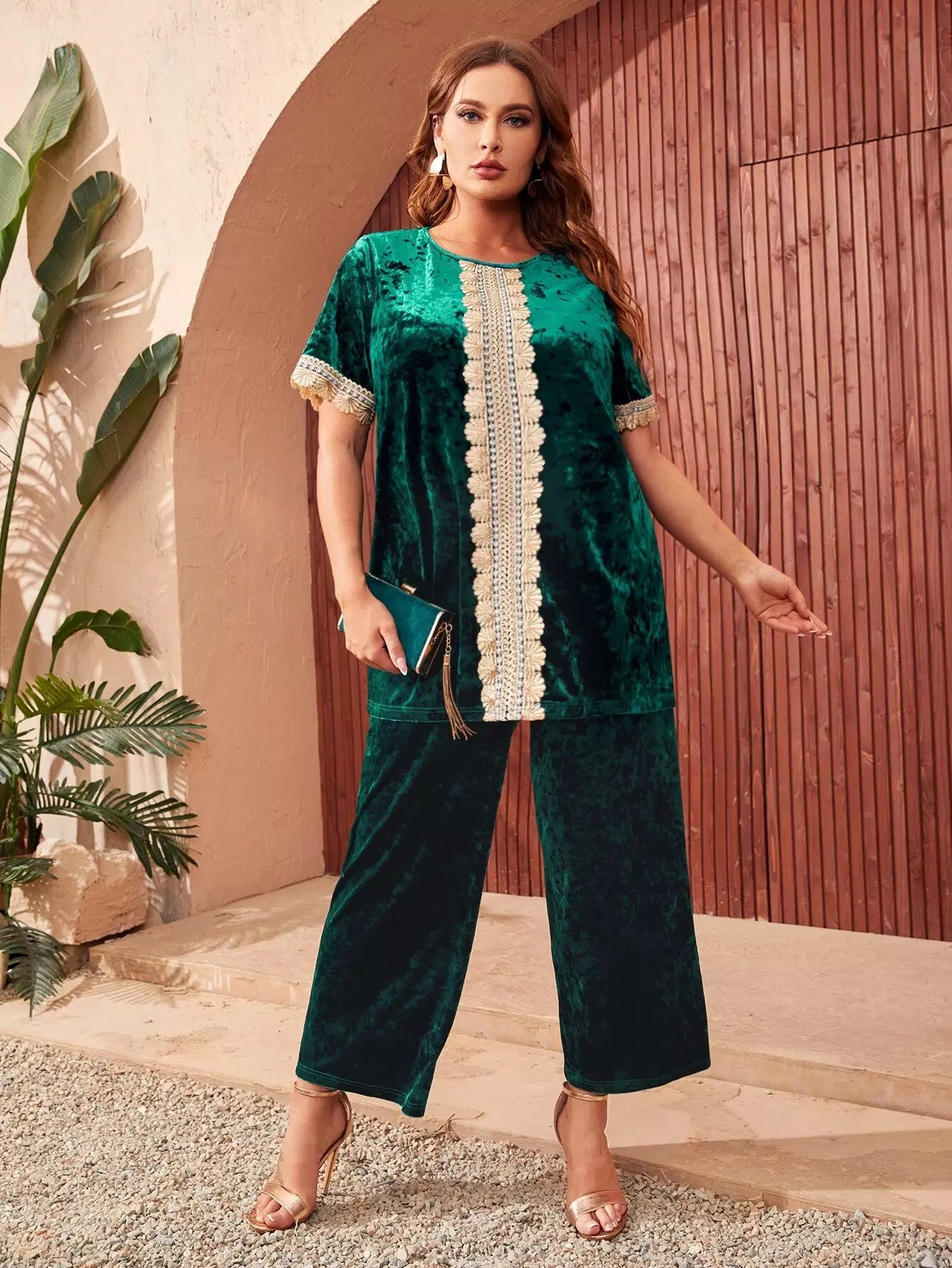 بلوزة وبنطلون مخملي من الدانتيل المزين بالدانتيل