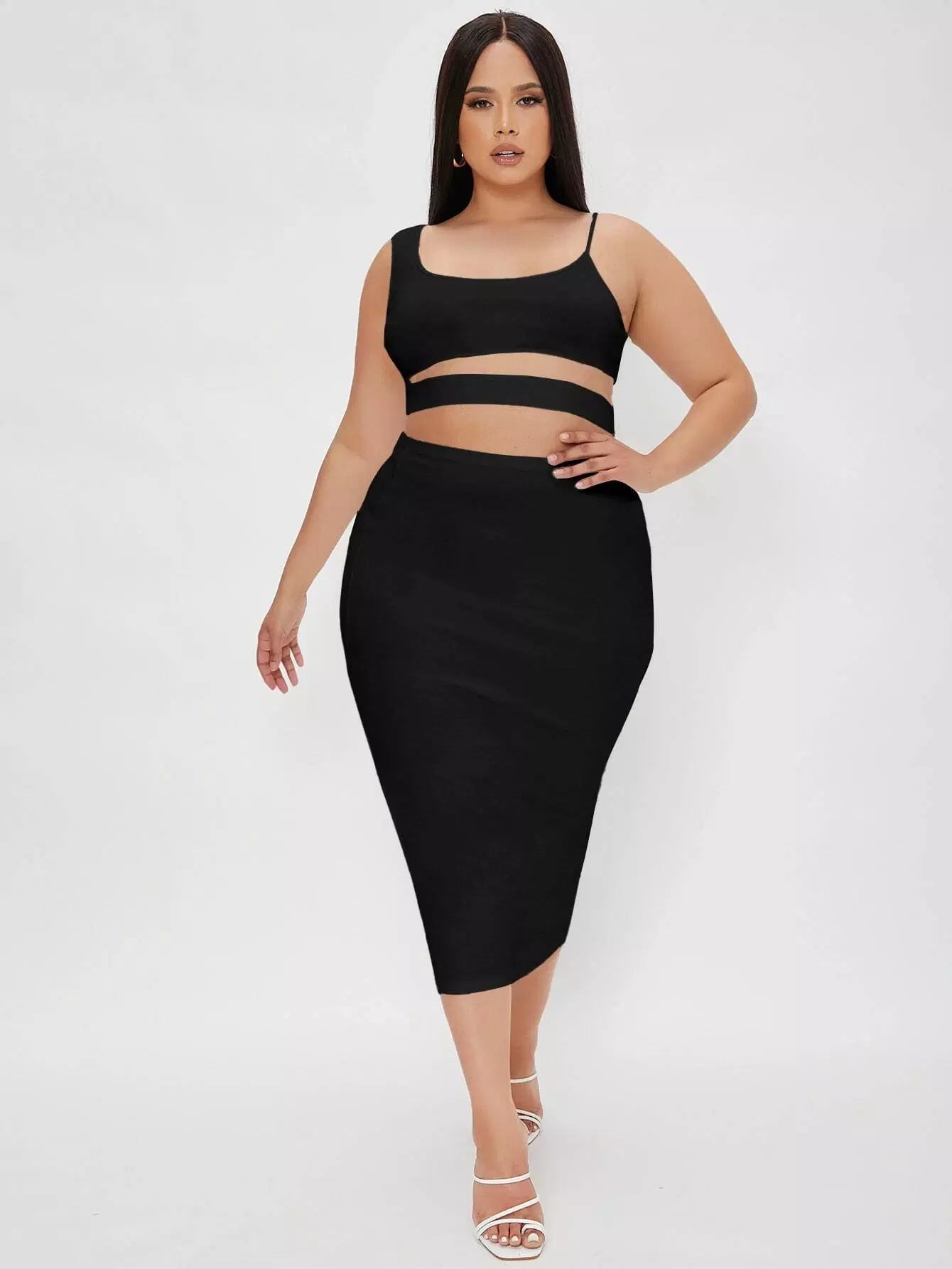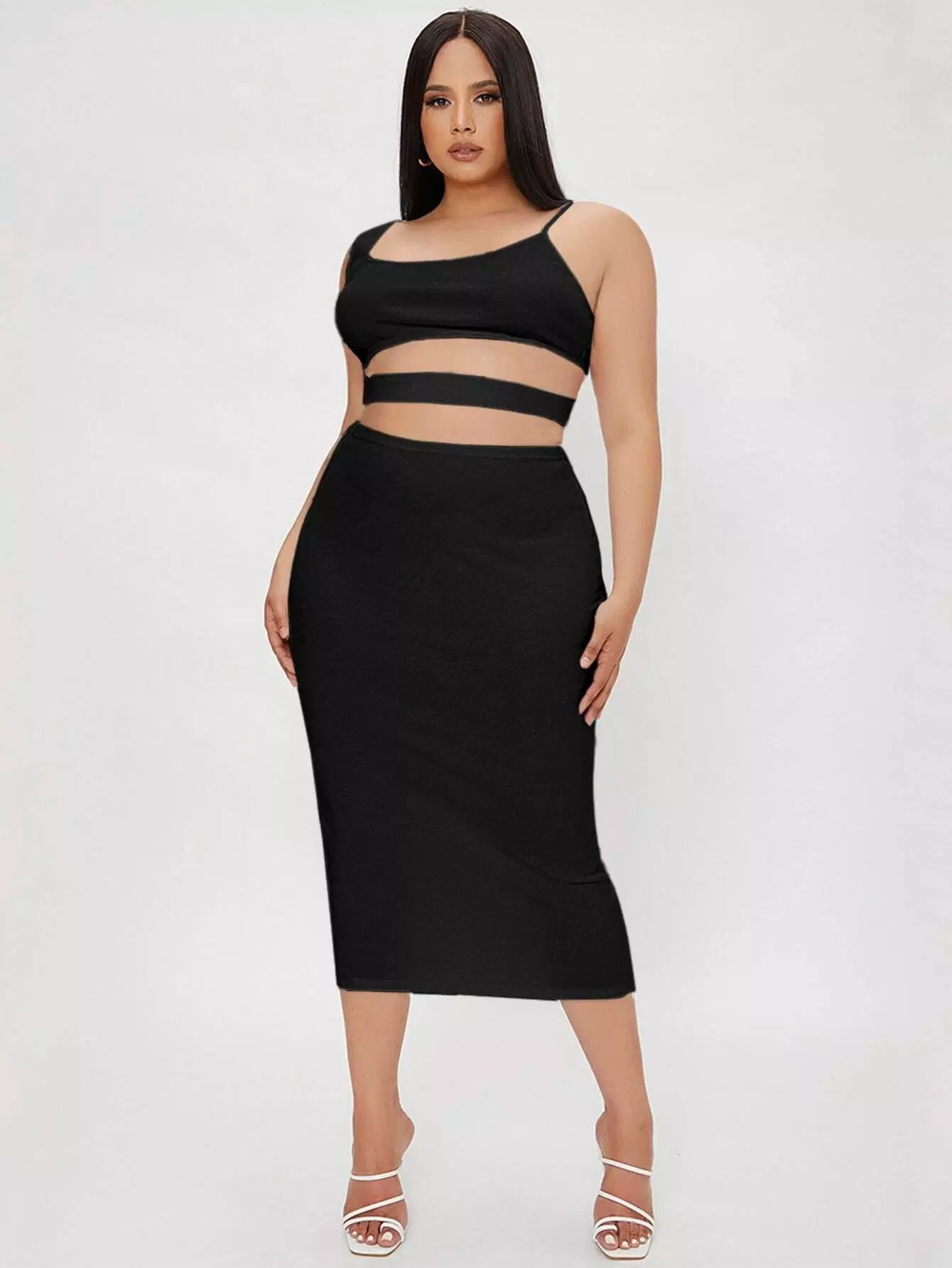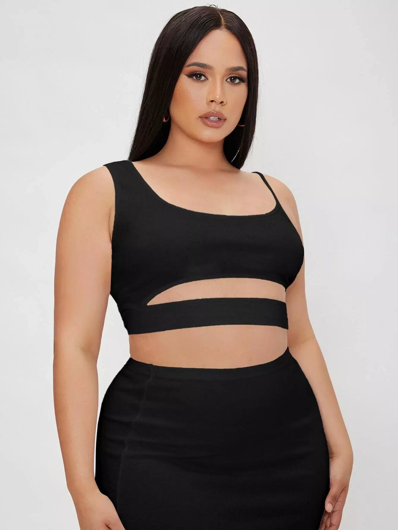بلوزة قصيرة برقبة غير متناسقة مع تنورة قصيرة