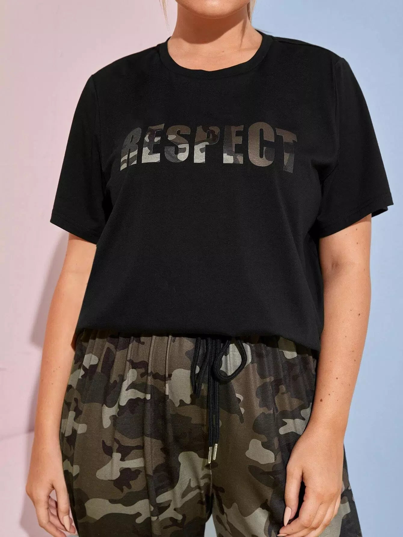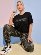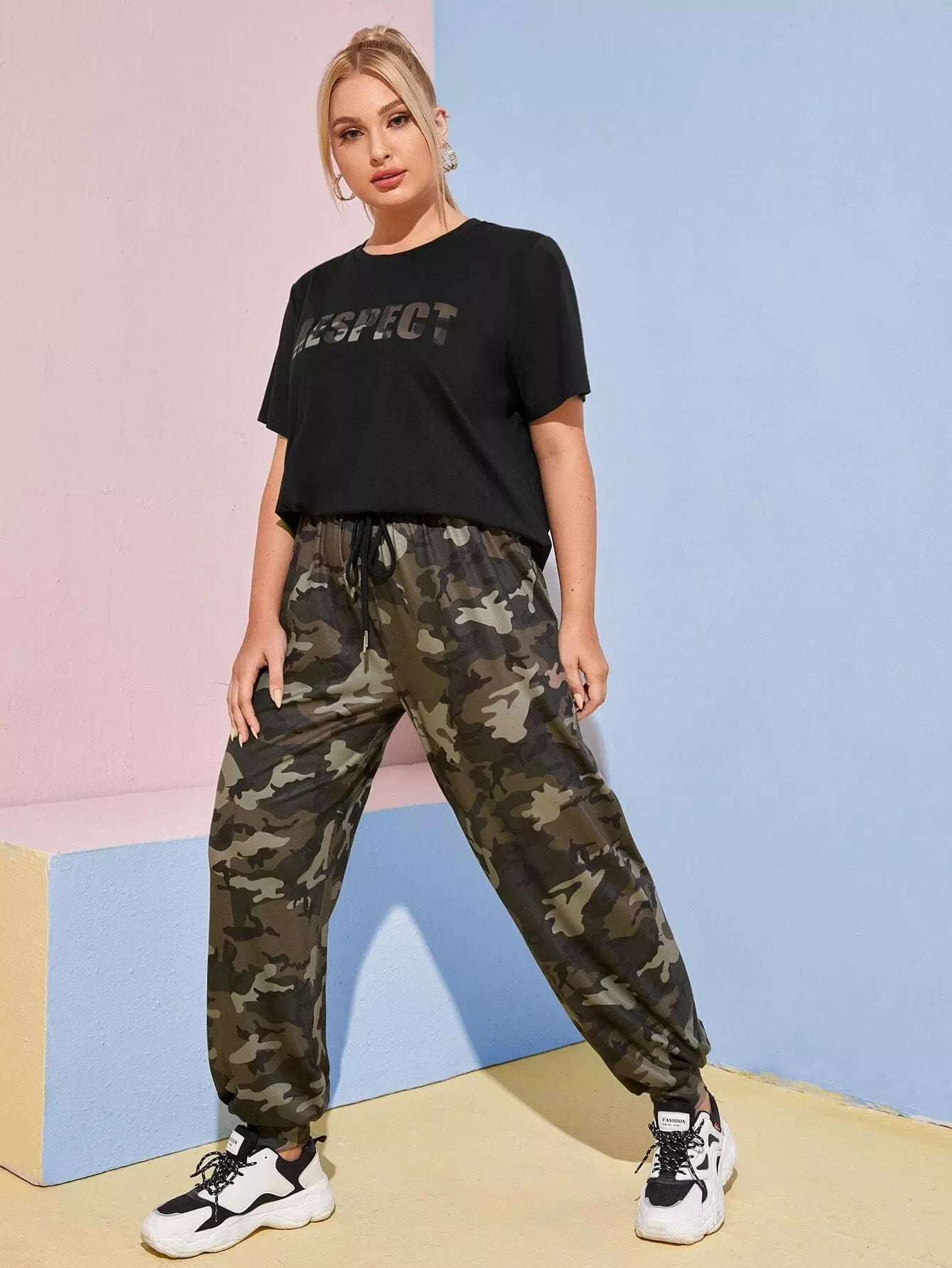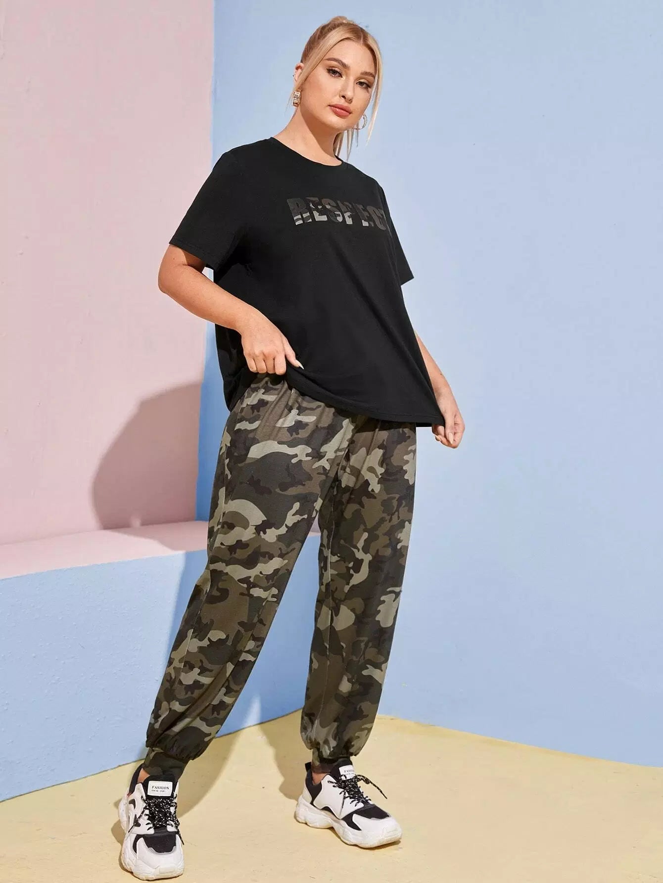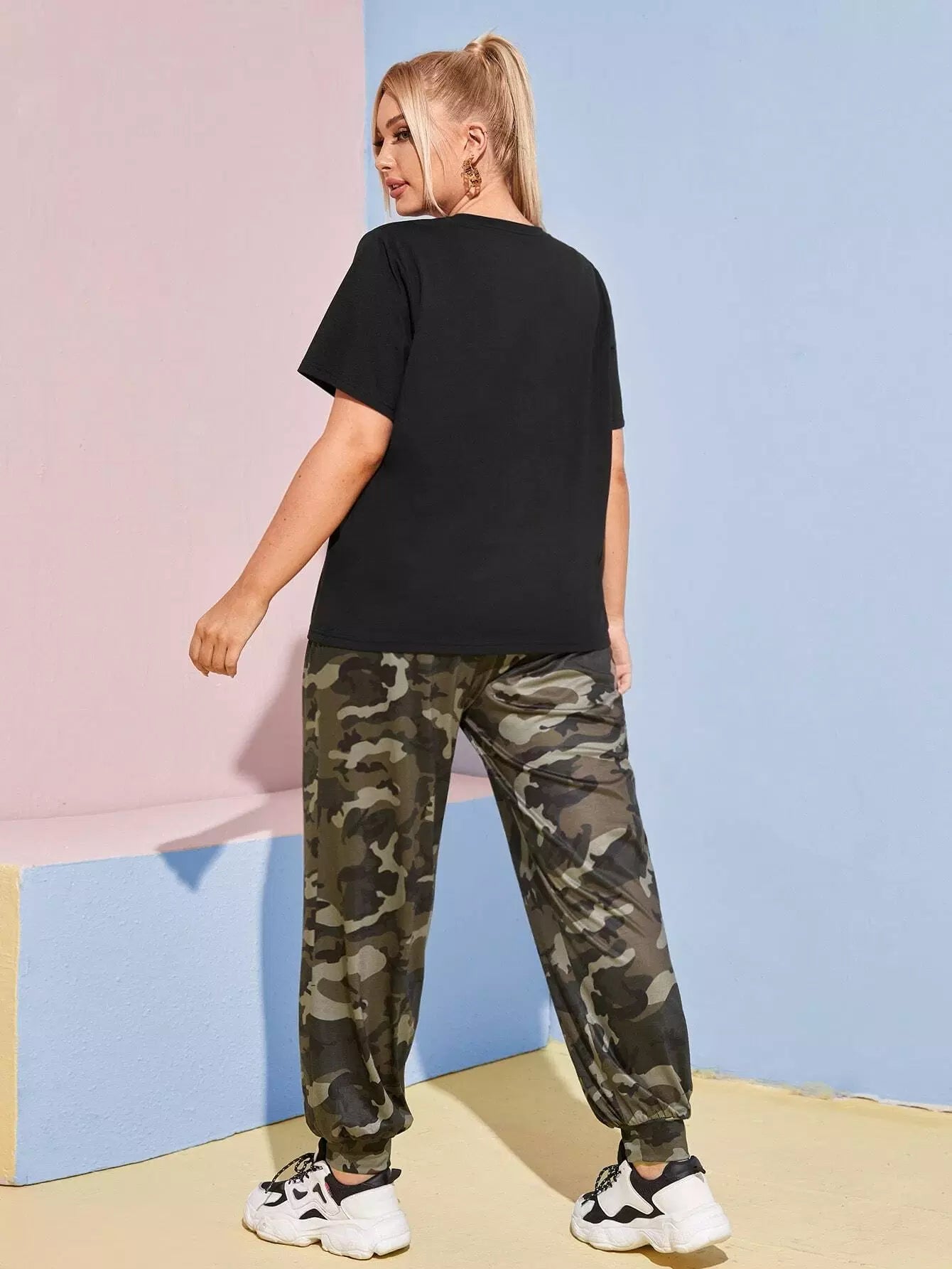 طقم تي شيرت وبنطلون رياضي برسومات حروف مموهة بلس