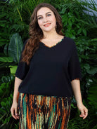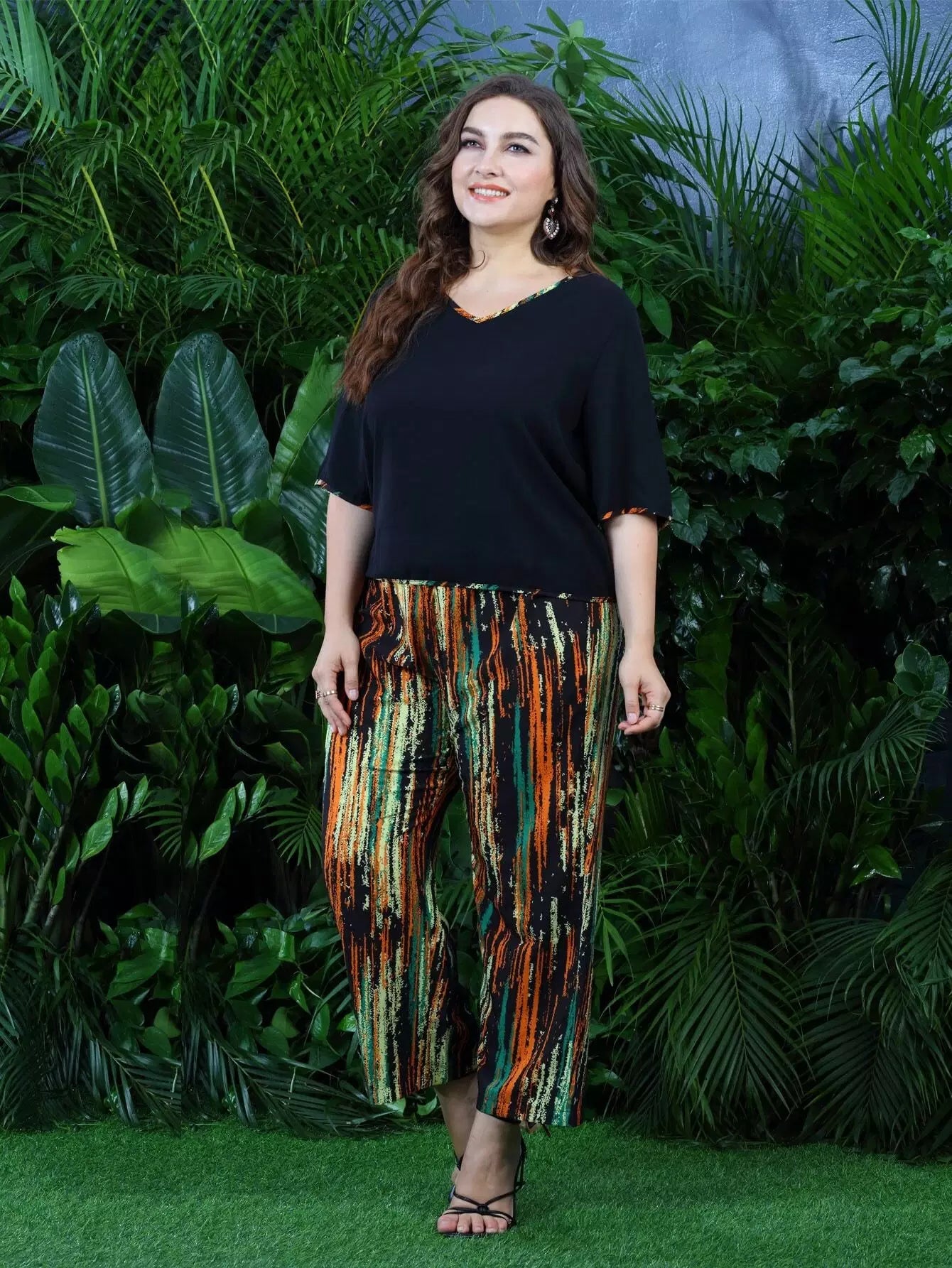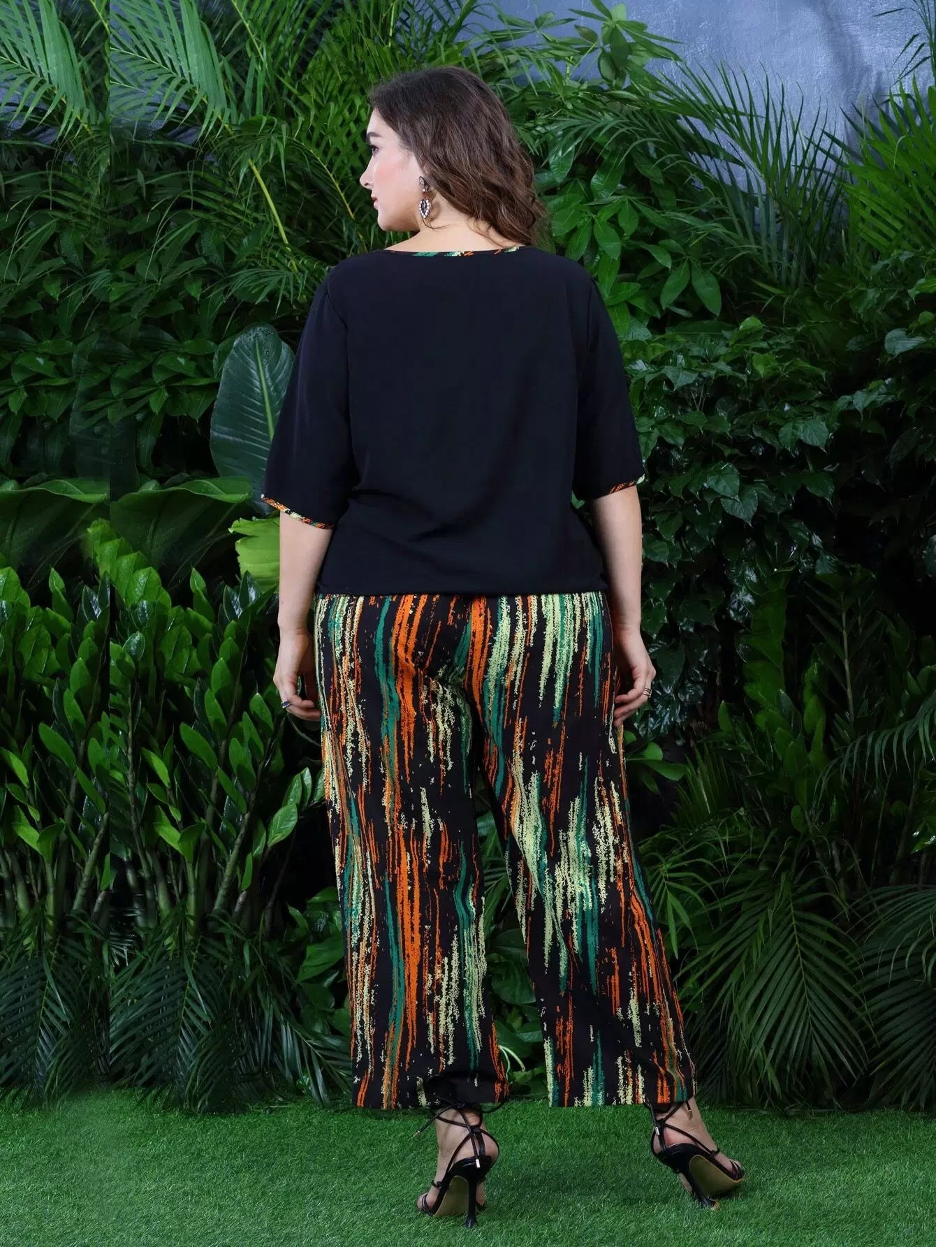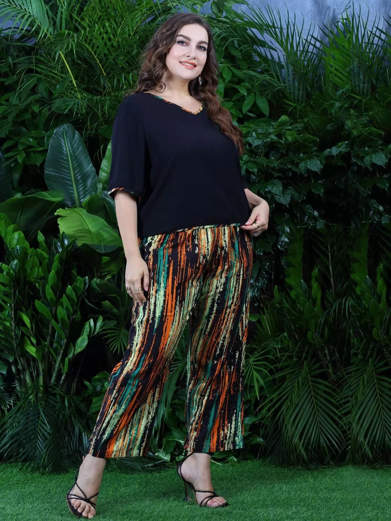 بلوزة بلوزة بلون مغلفة بلون مغاير مع بنطلون غرافيتي