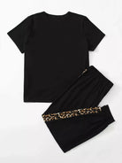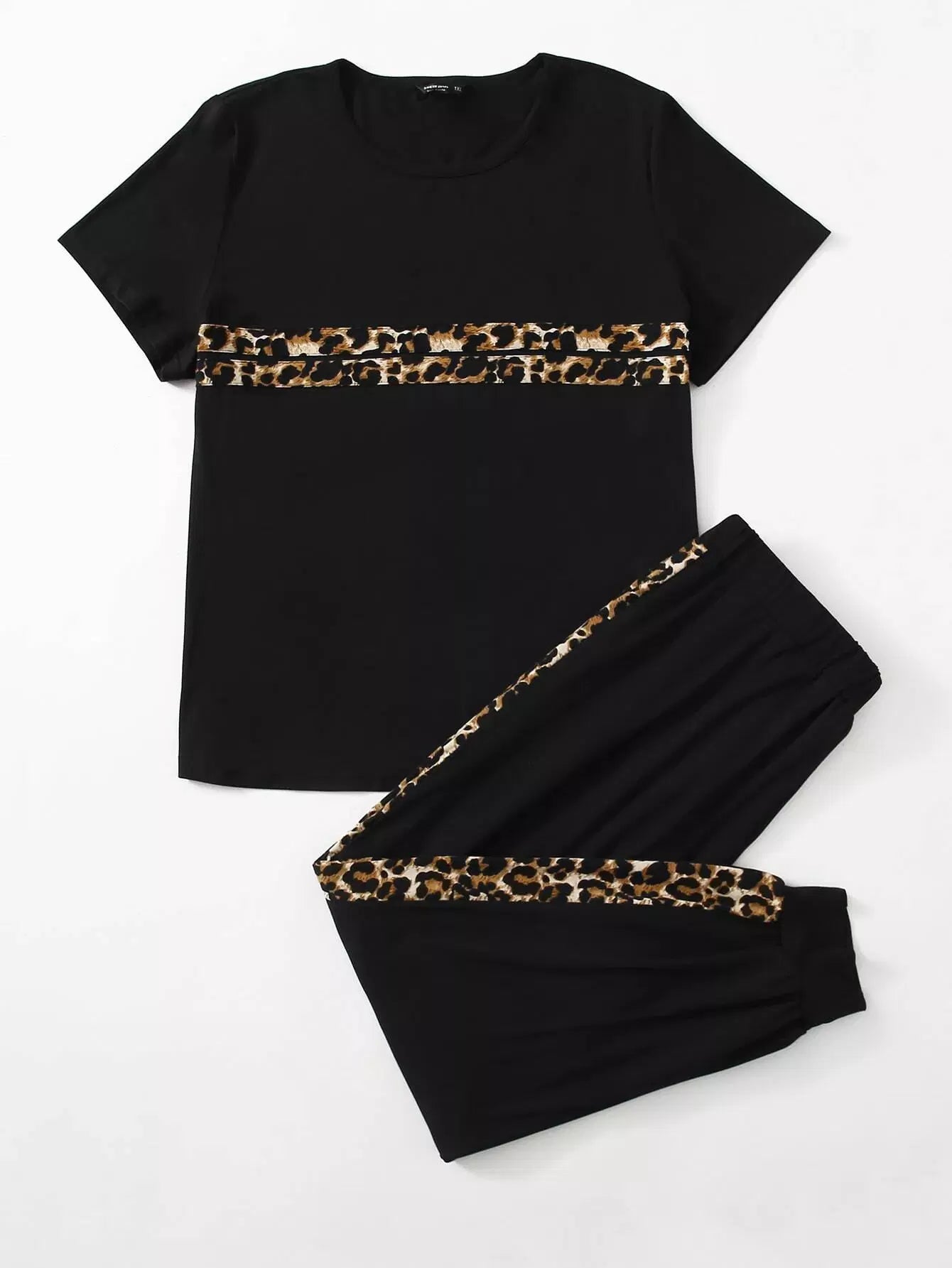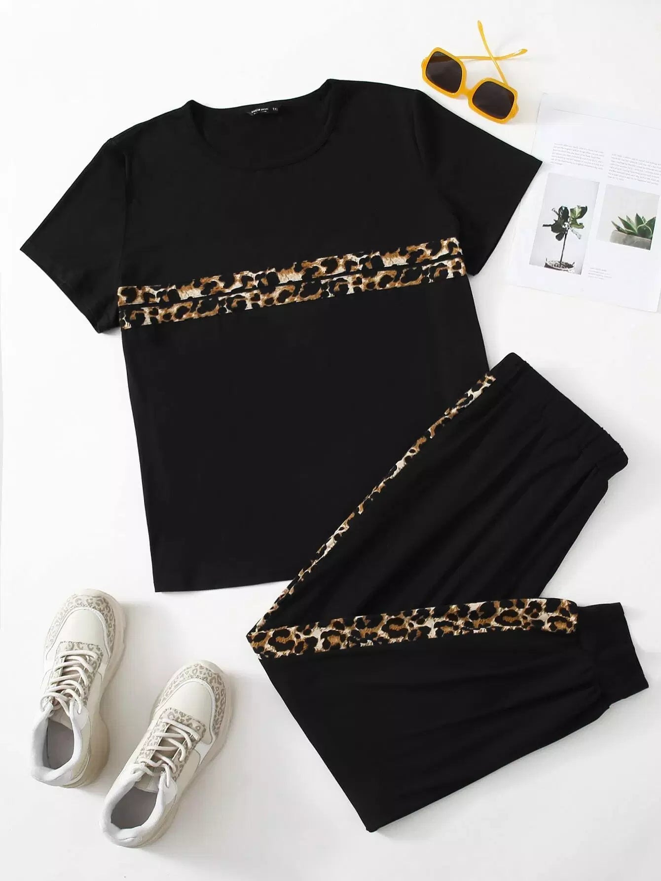 تي شيرت بلس بلون متباين بلون النمر مع بنطال رياضي