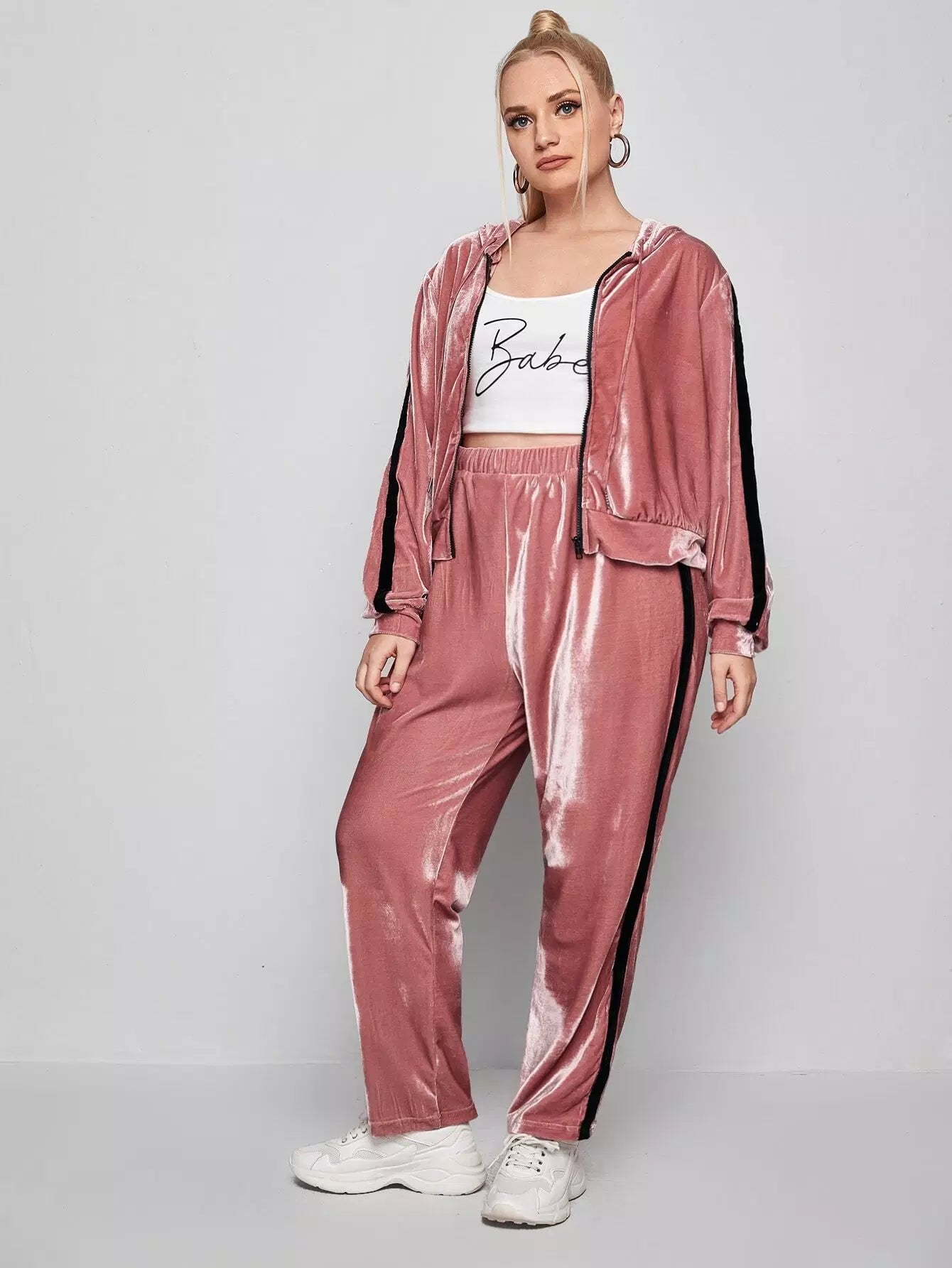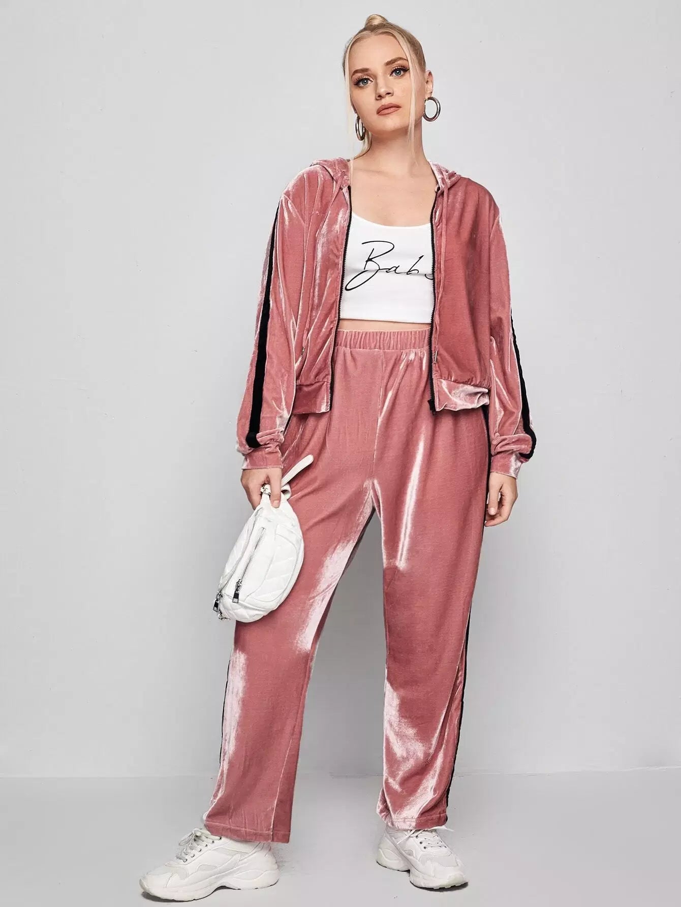 طقم جاكيت وبنطلون مخملي بلون مغاير بلون مغاير