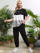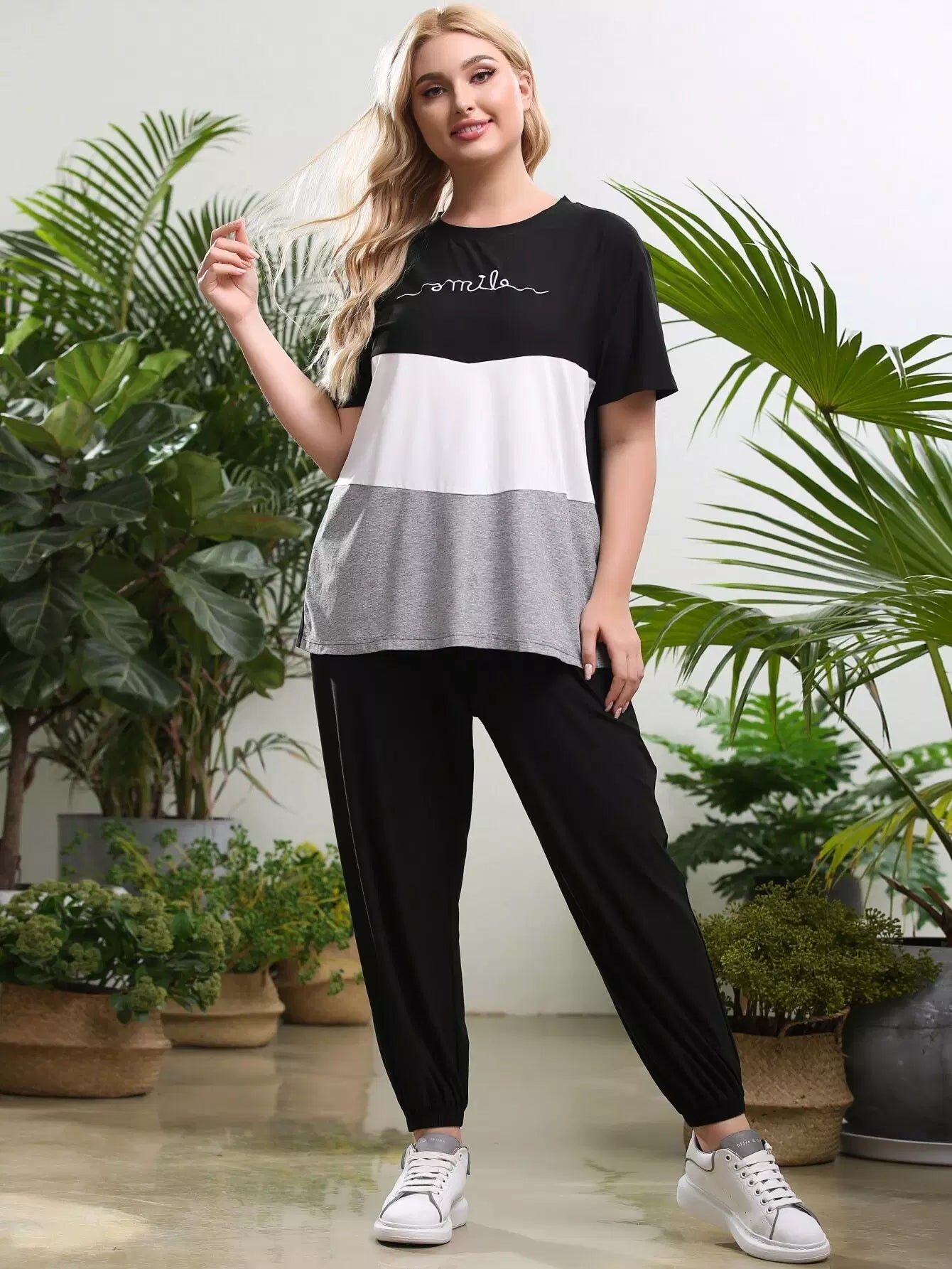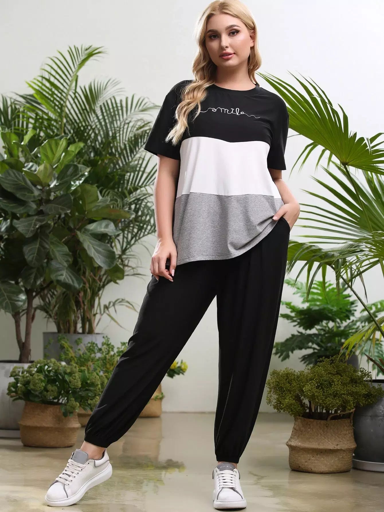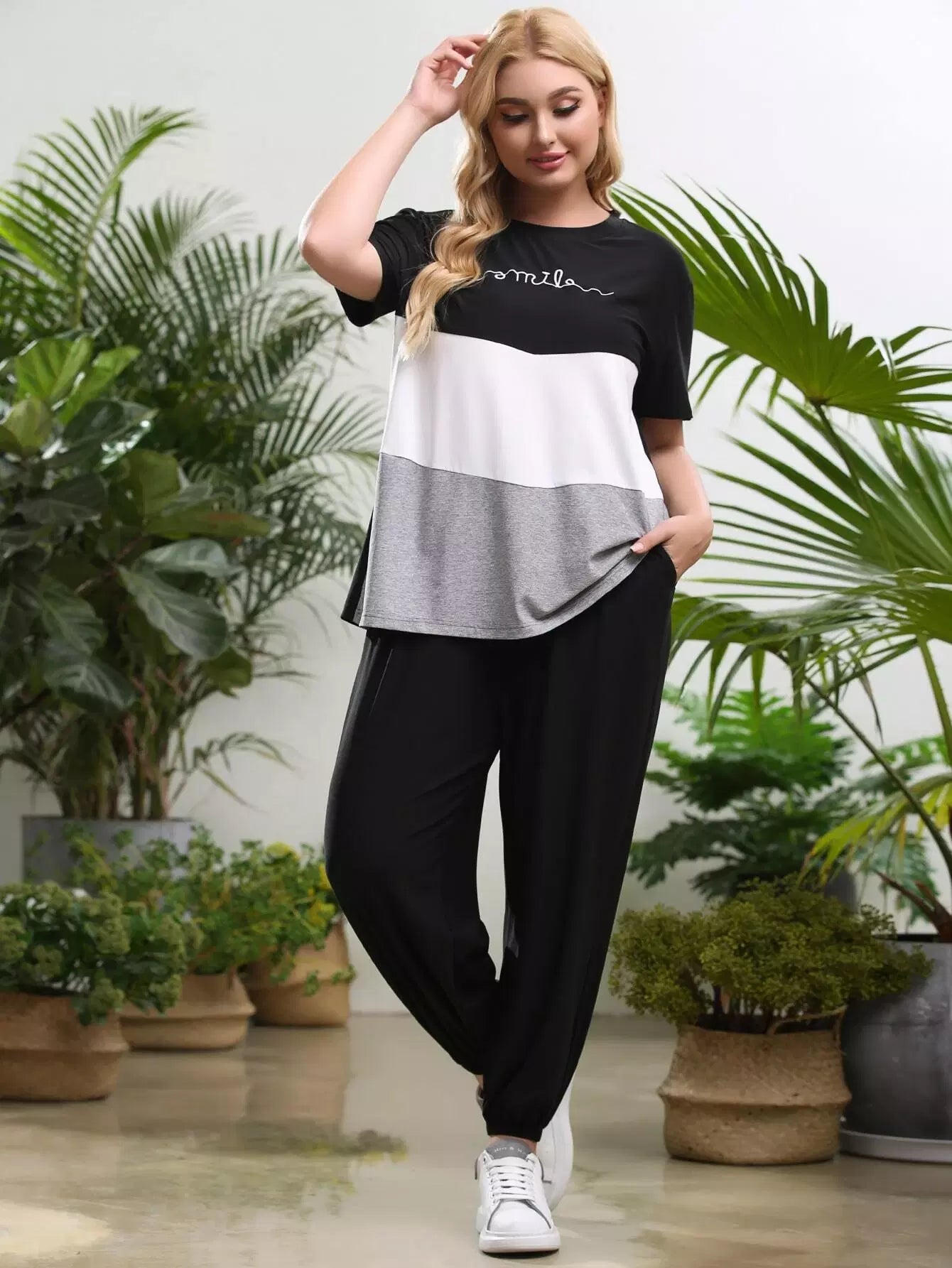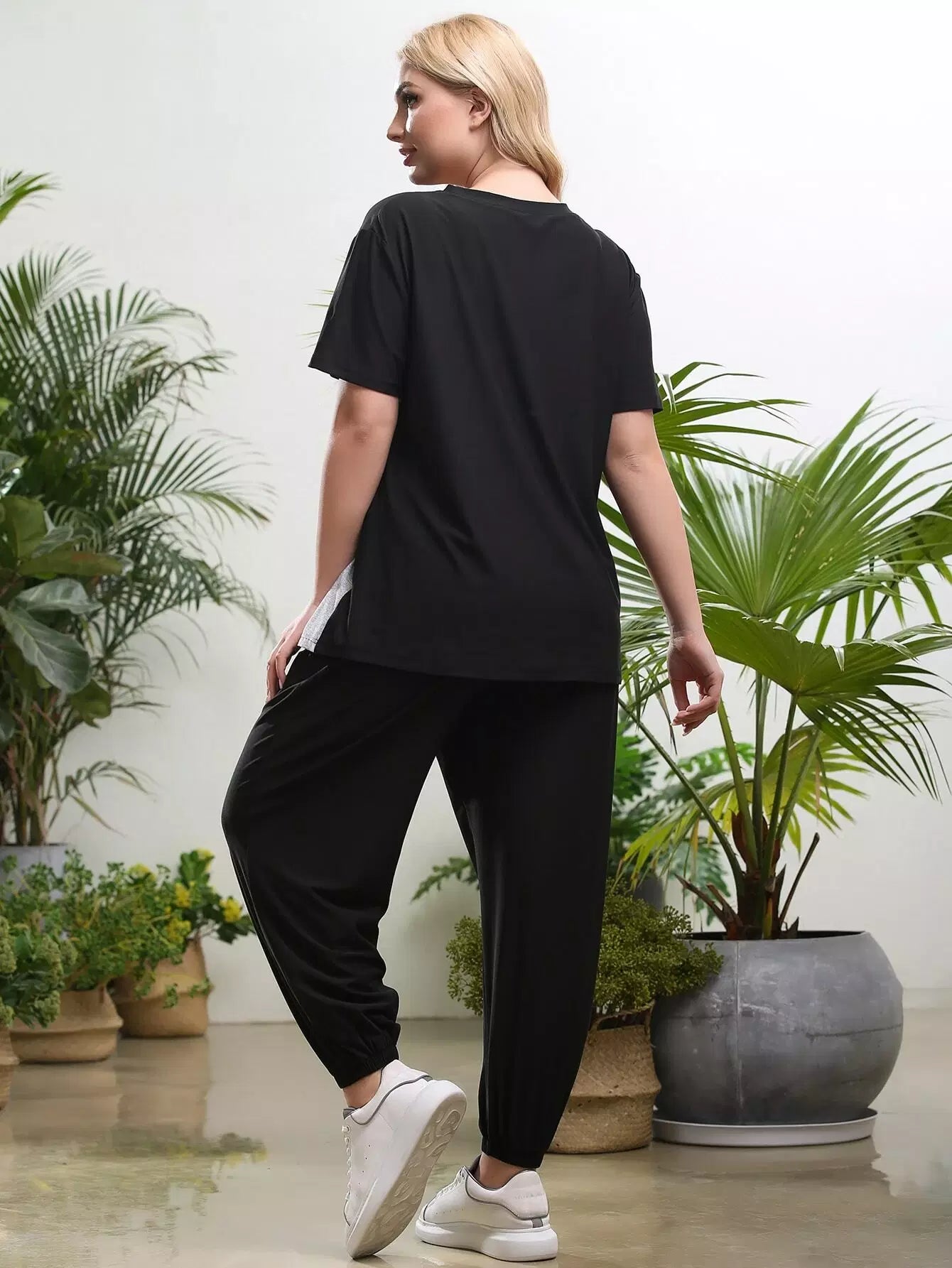 تي شيرت وبنطال رياضي برسومات حروف زائد قص وخياطة زائد