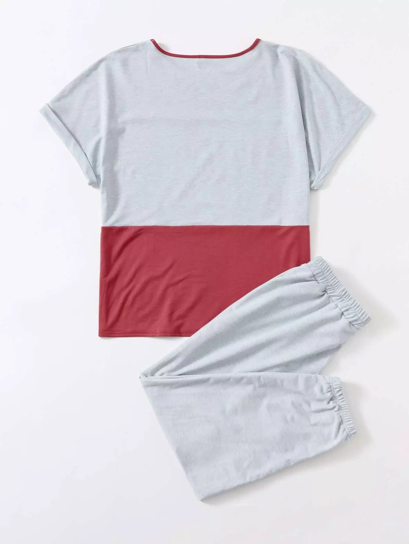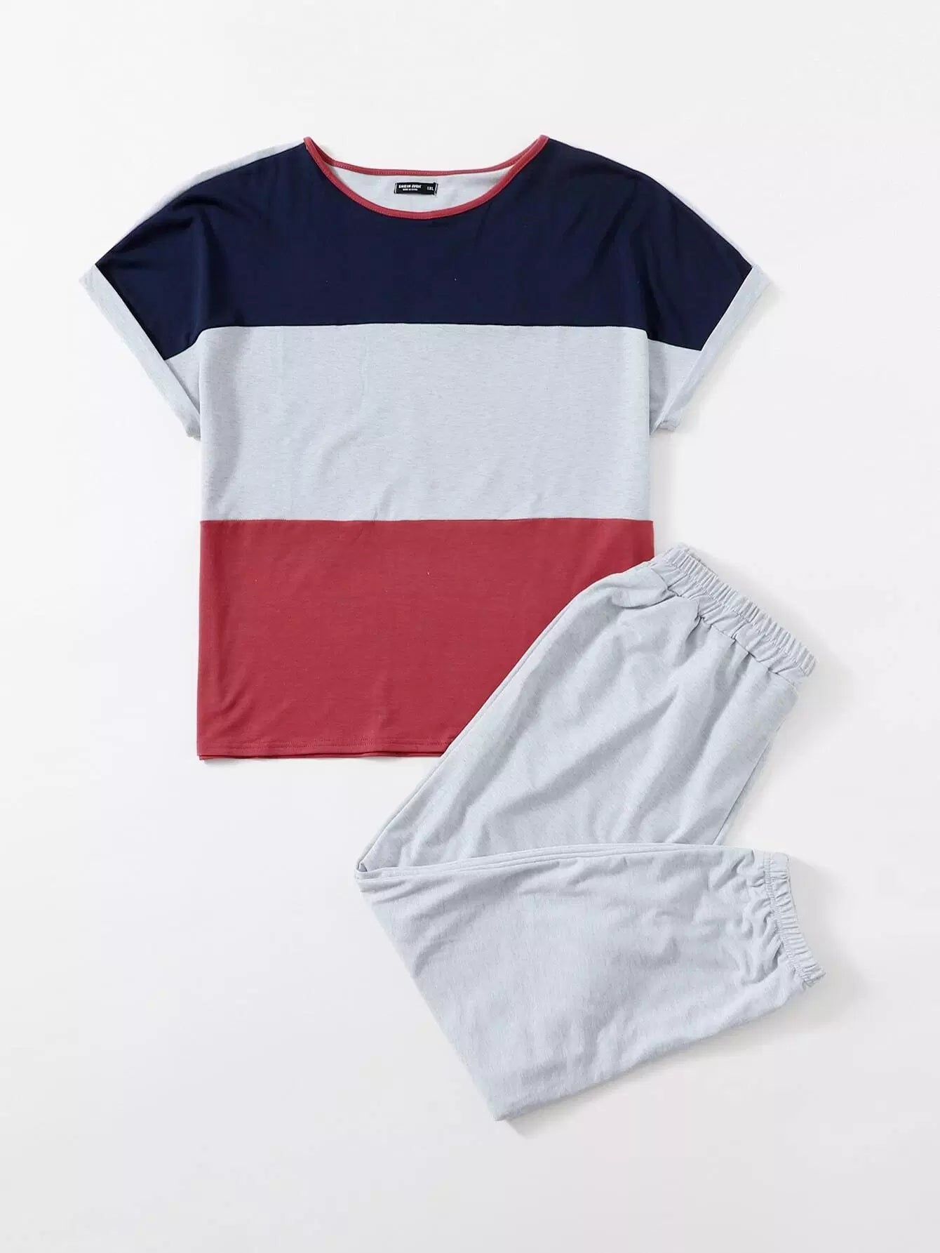 تي شيرت بقص وخياطة بلس مع بنطال رياضي