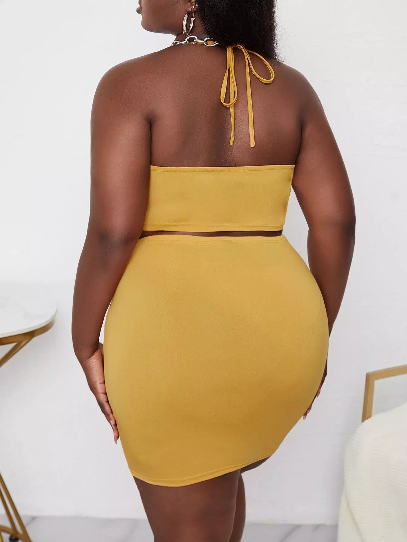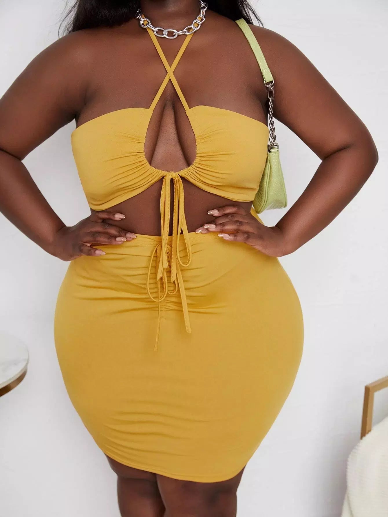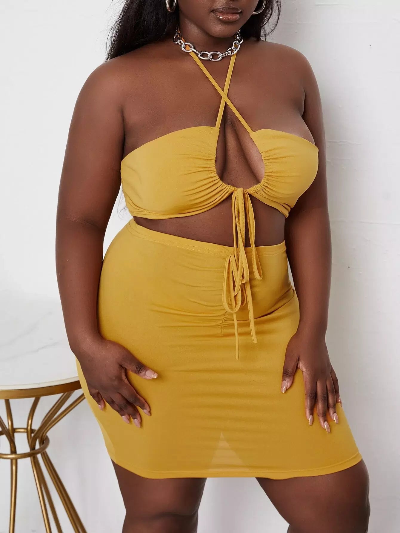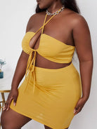 بلوزة برباط مقصوصة من الأعلى برباط مفتوح من أعلى وتنورة بوديكون