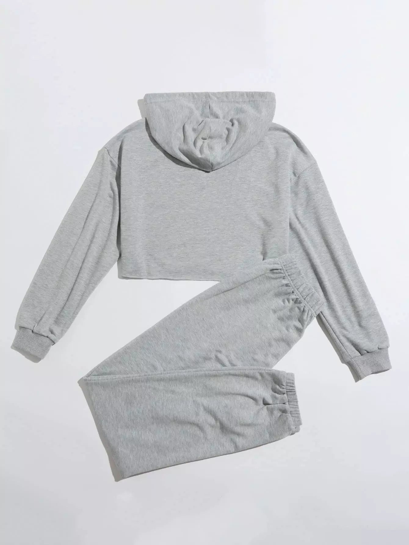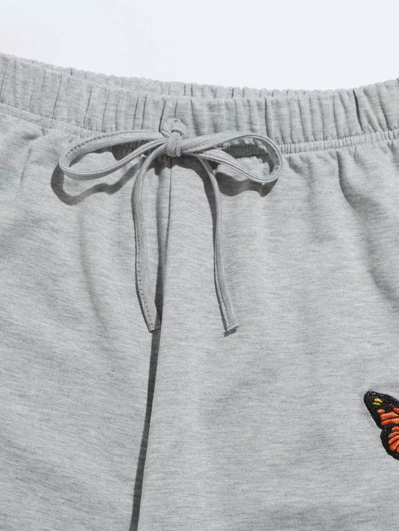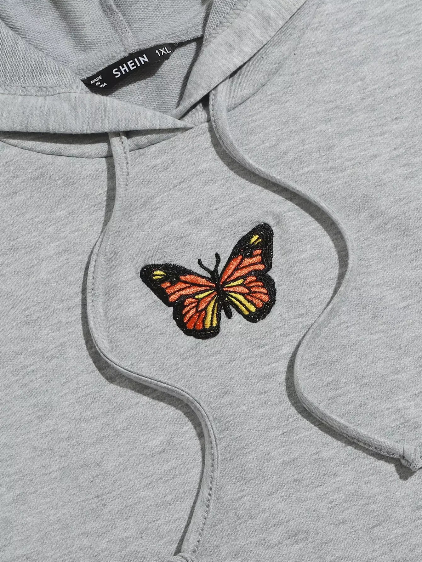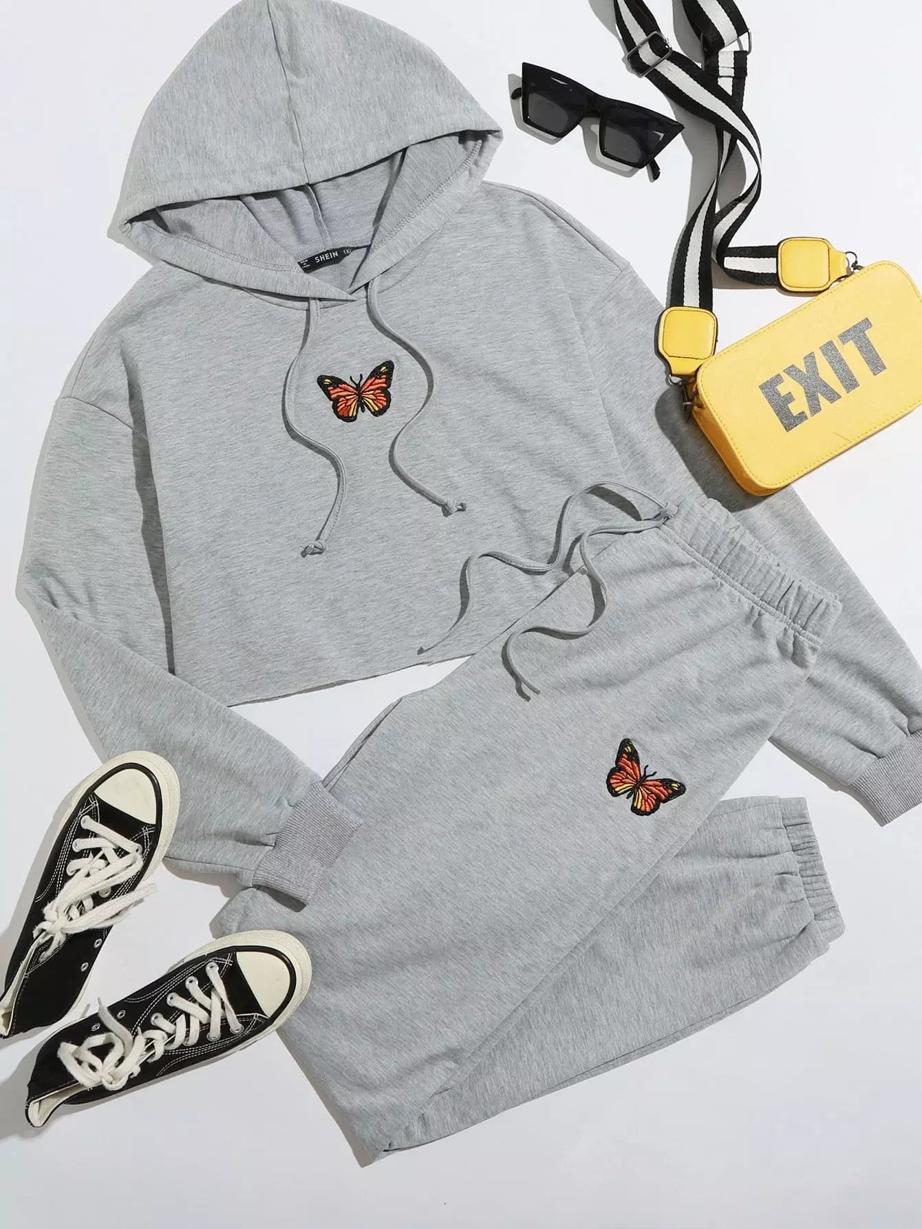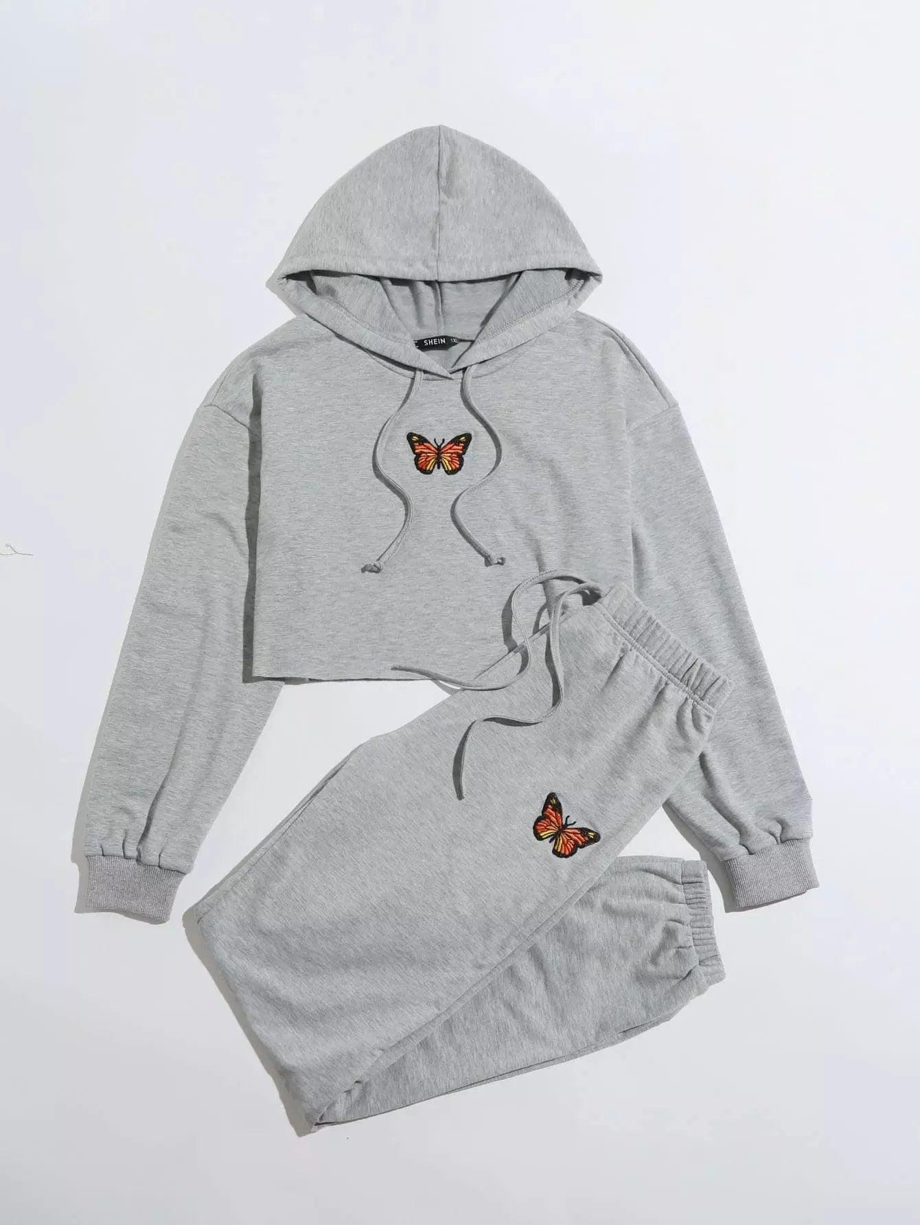 طقم هودي برباط مطرز على شكل فراشة مع بنطال رياضي