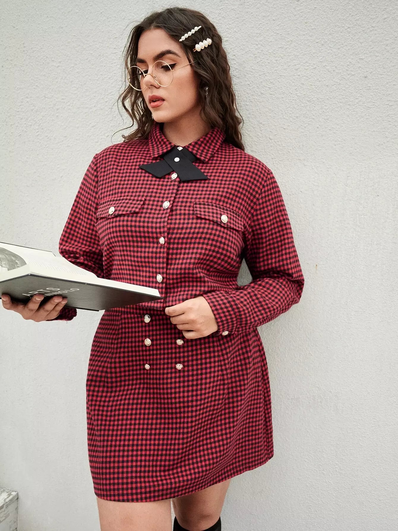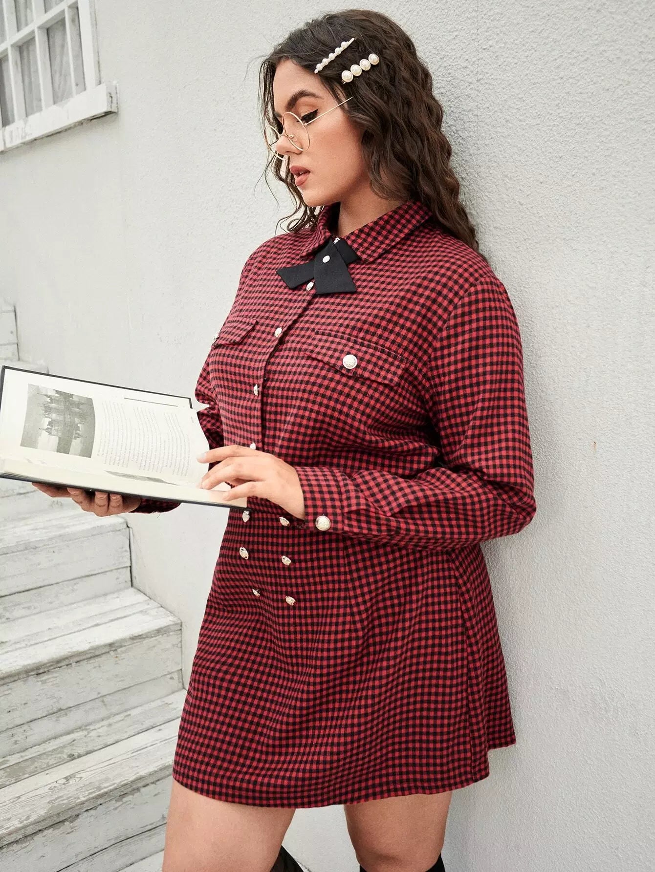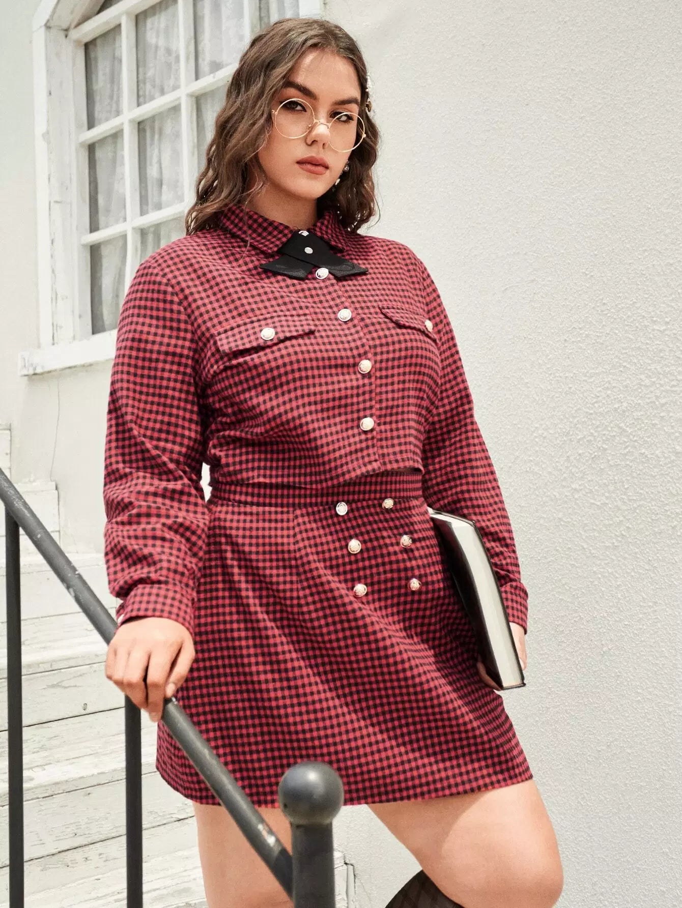 بلوزة وتنورة قصيرة بطبعة قماش قطني مزينة بطبعة قماش قطني زائد