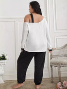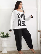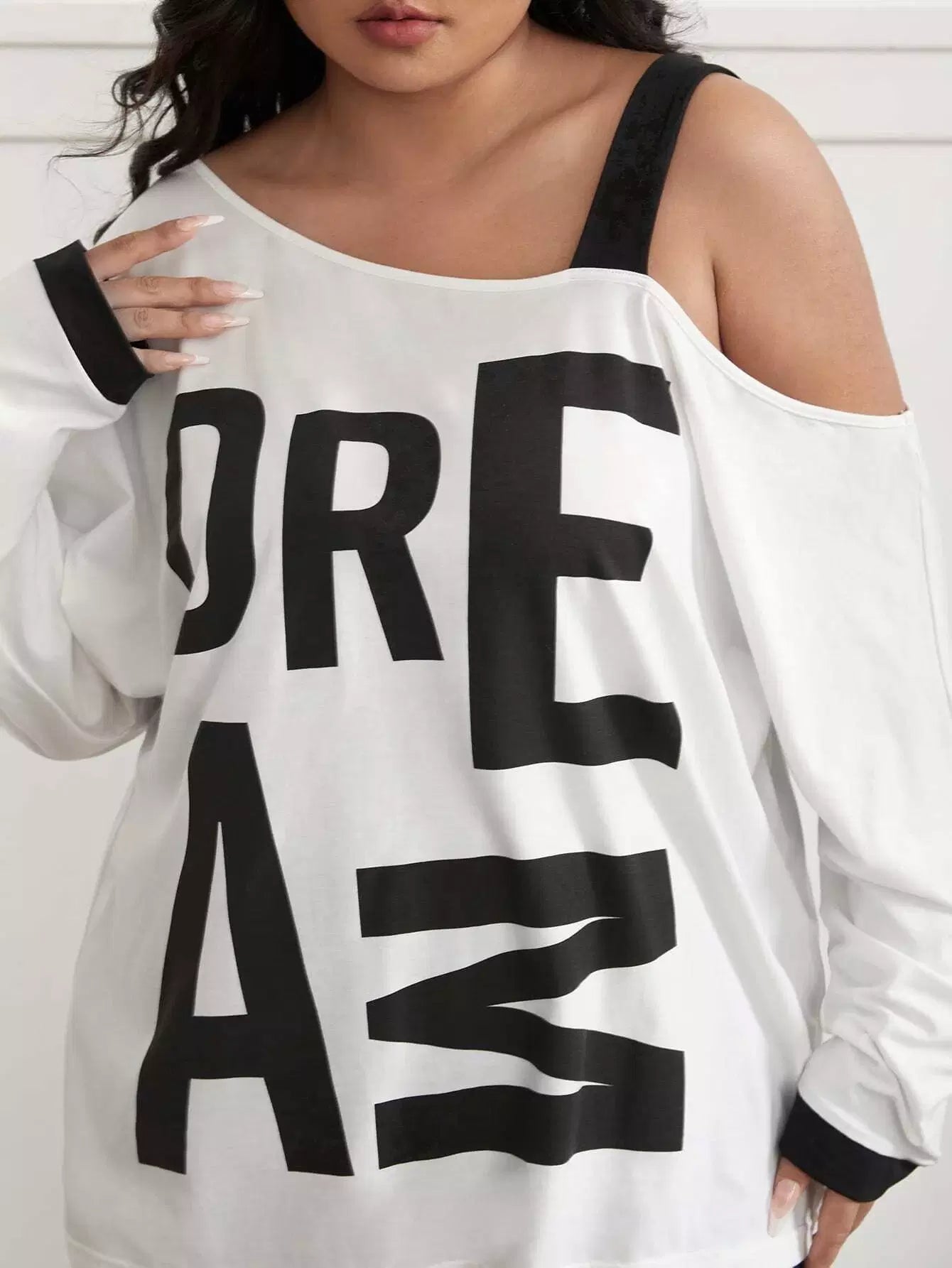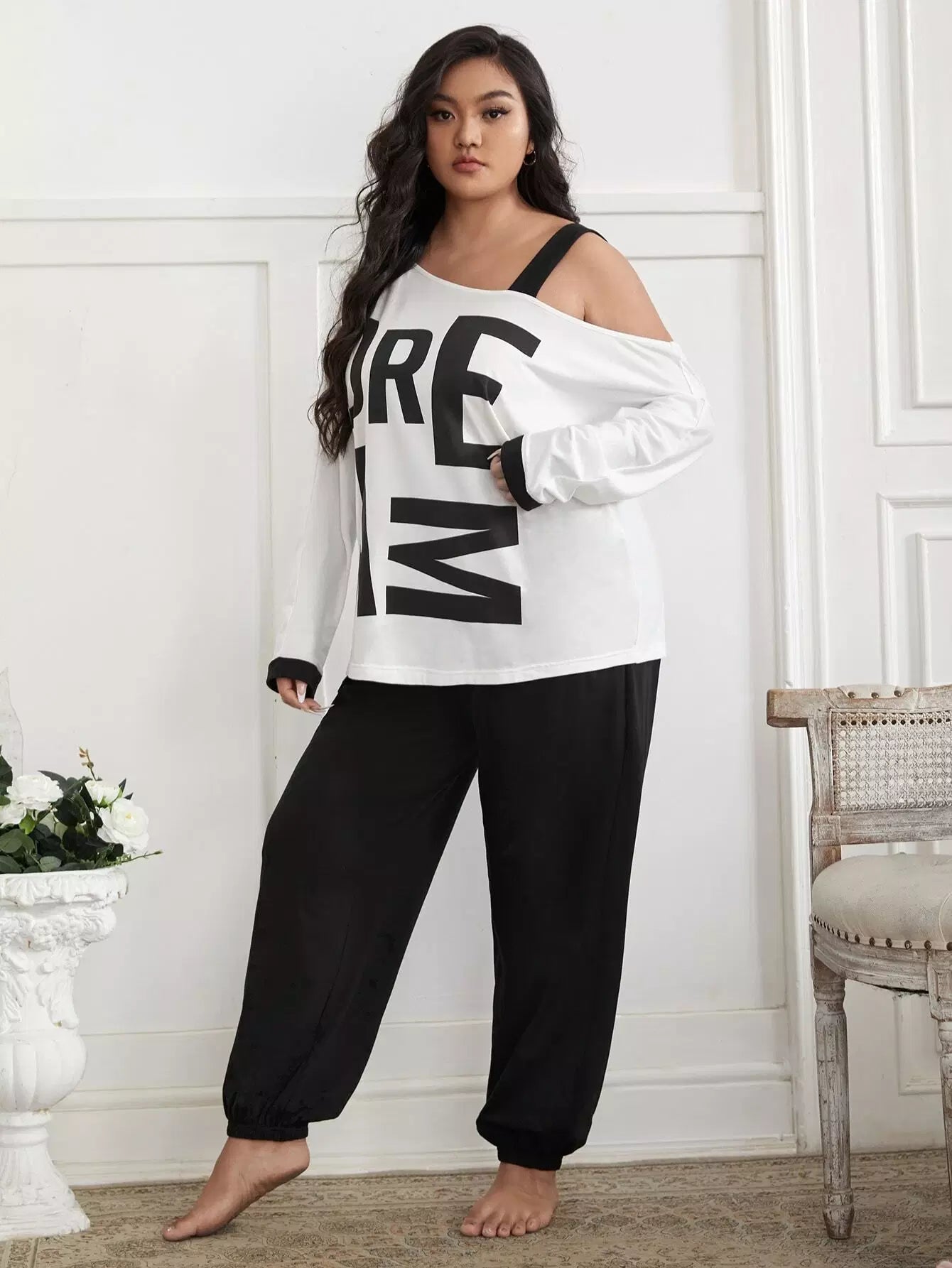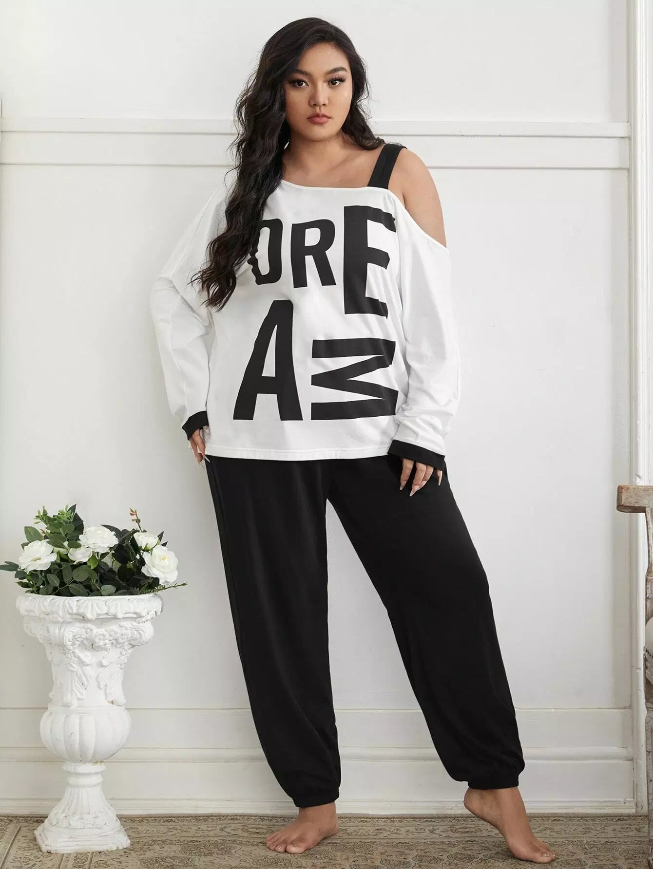 بلوزة بياقة غير متناسقة برسومات حروف زائد وبنطال رياضي