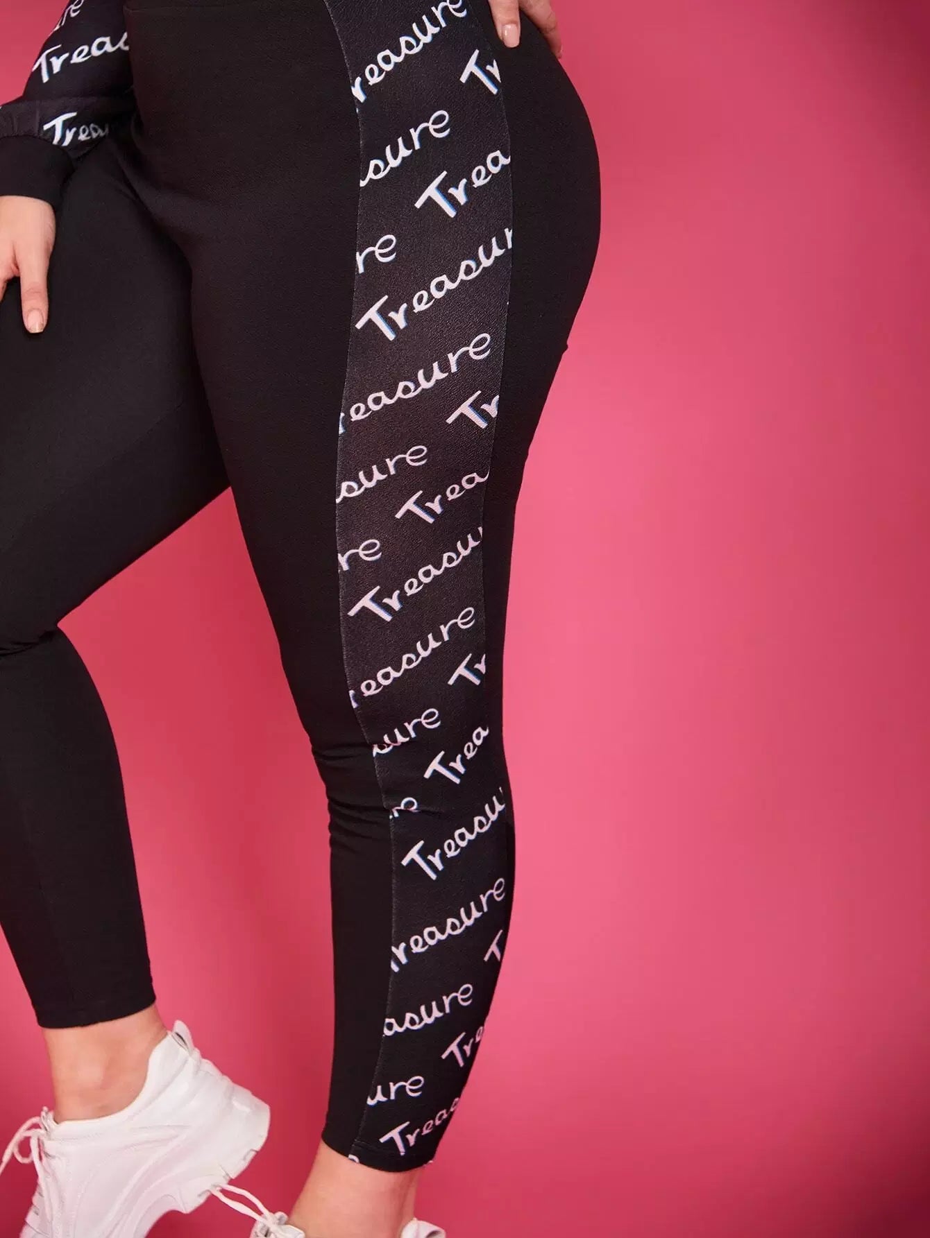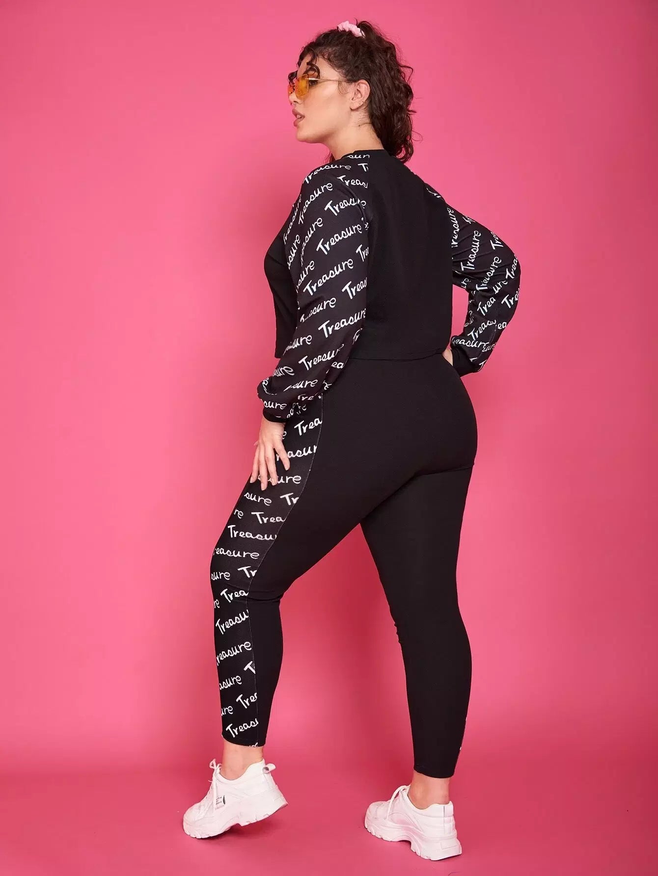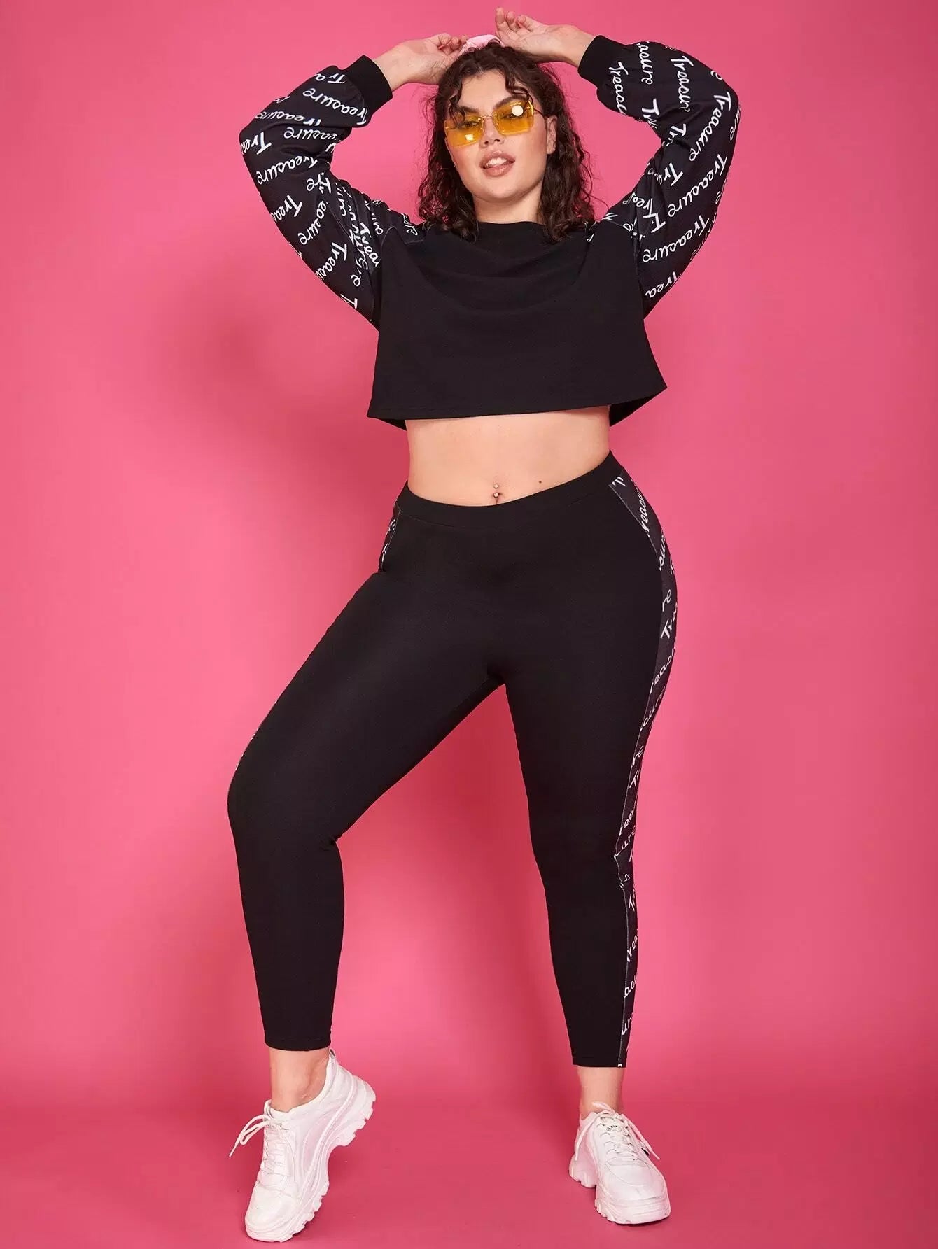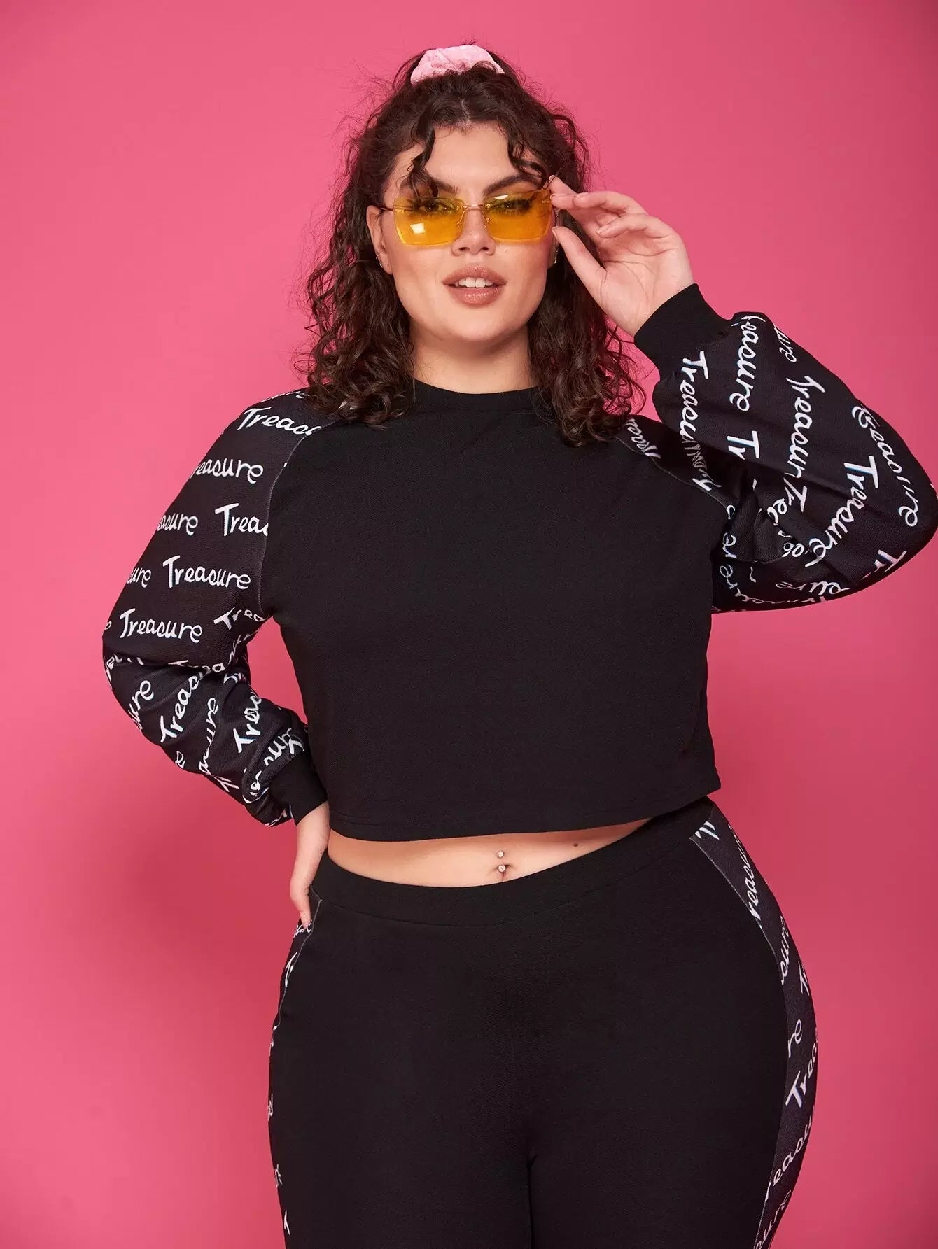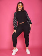 تي شيرت قصير بأكمام راجلان برسومات حروف زائد وبنطال ضيق