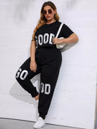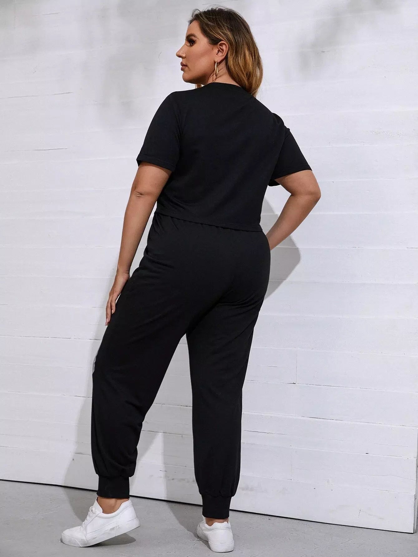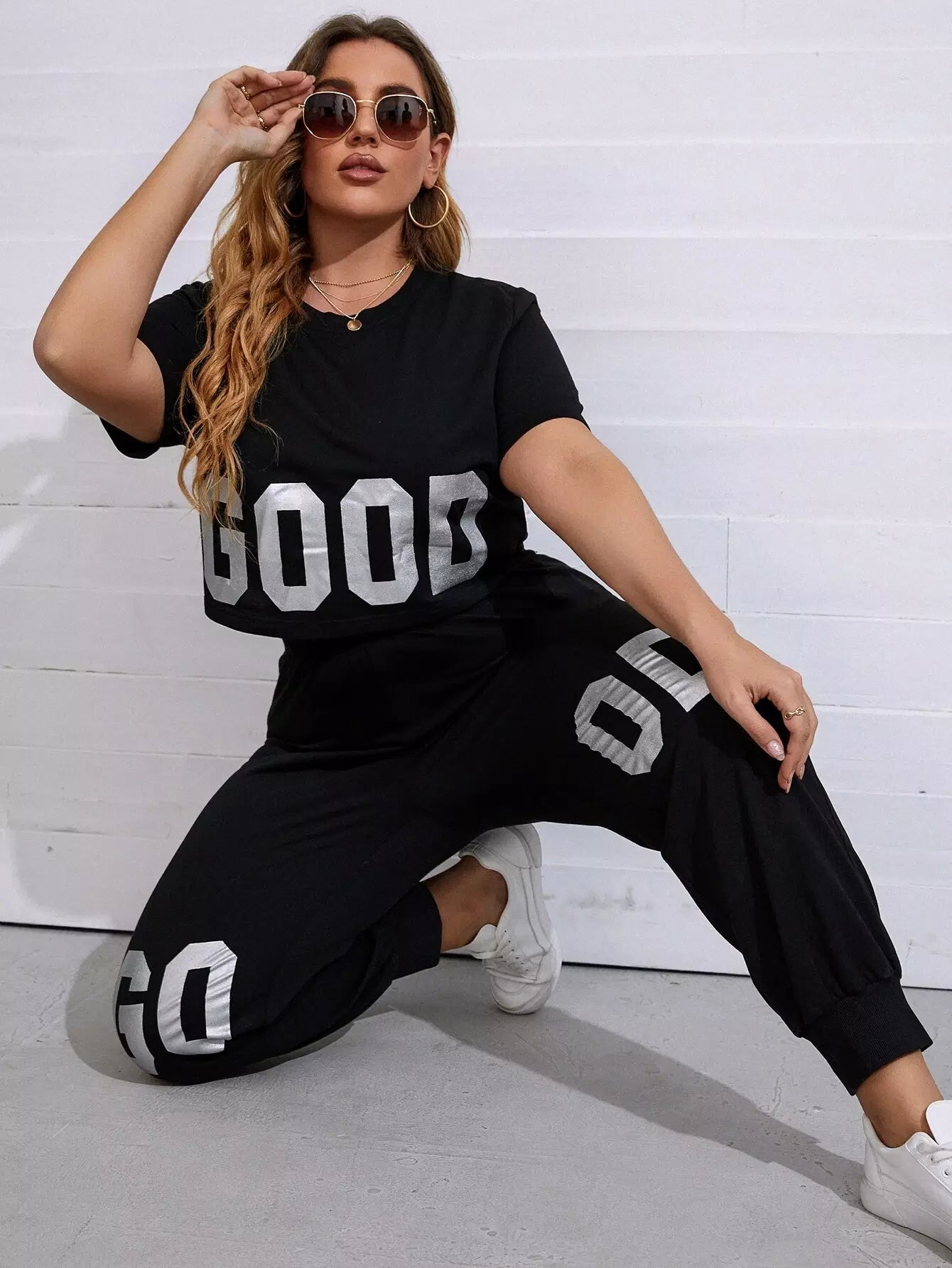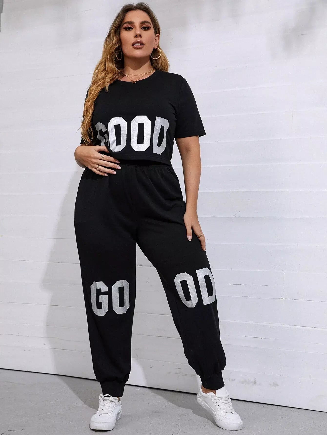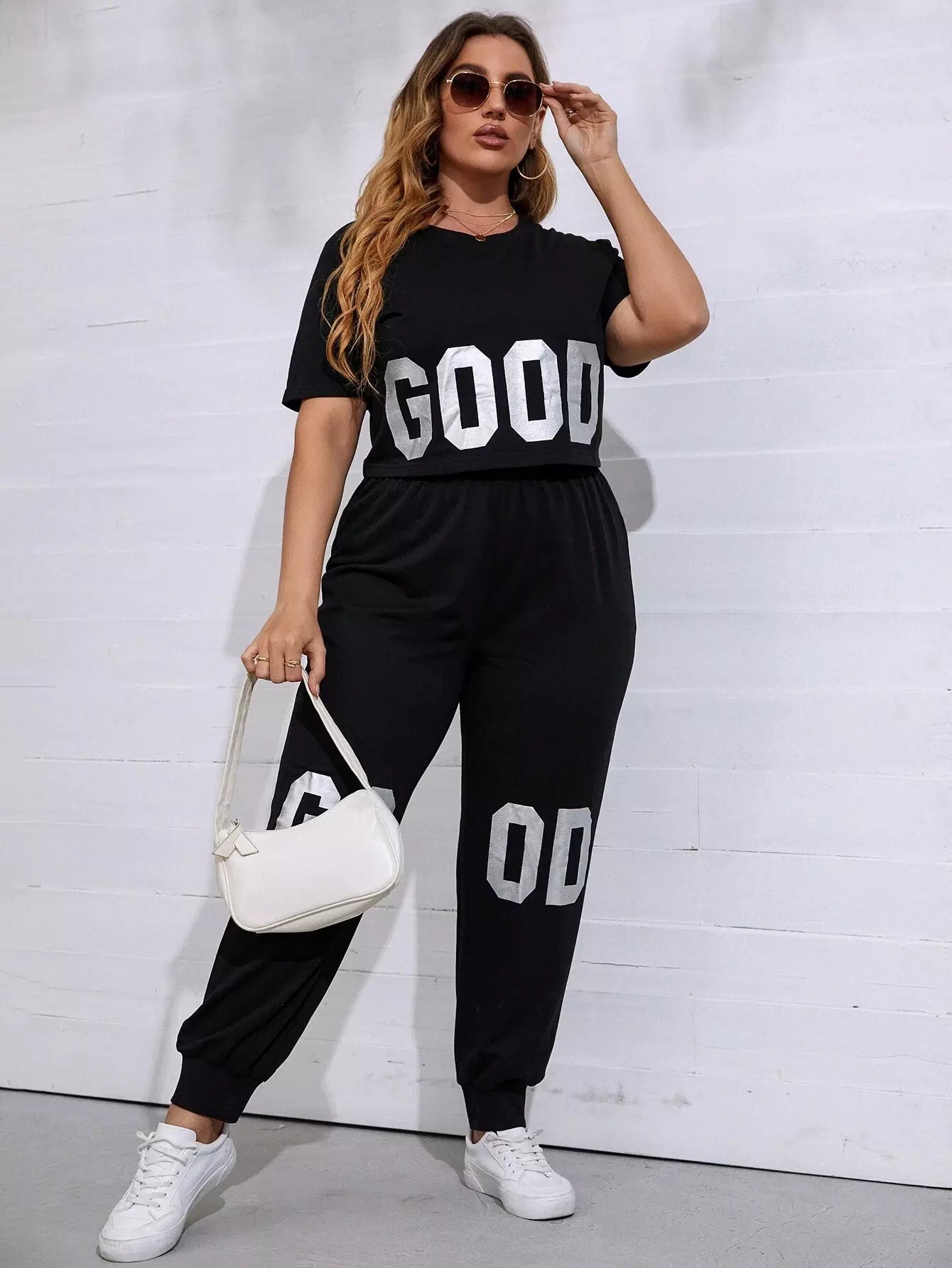 تي شيرت وبنطال رياضي برسومات حروف زائد