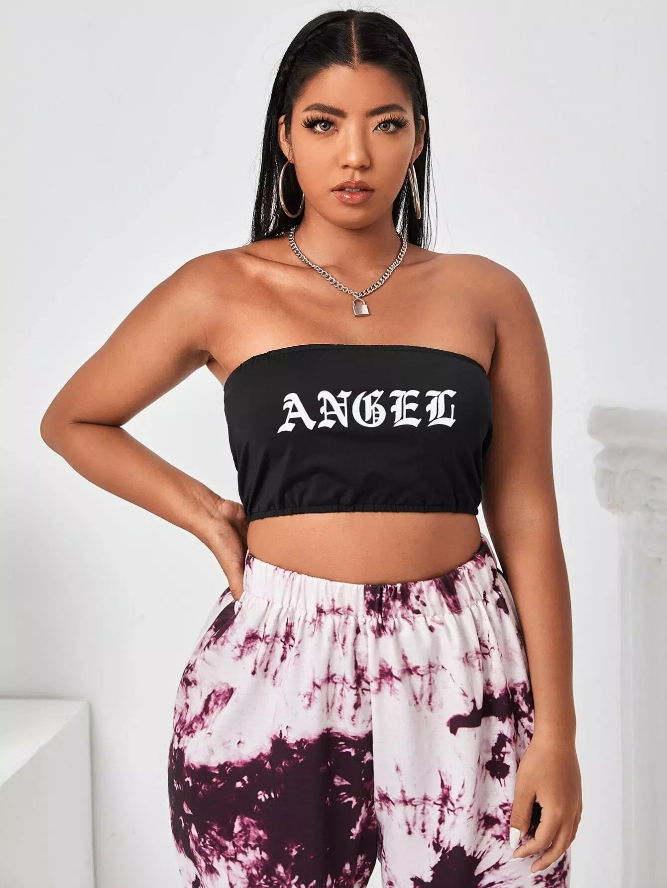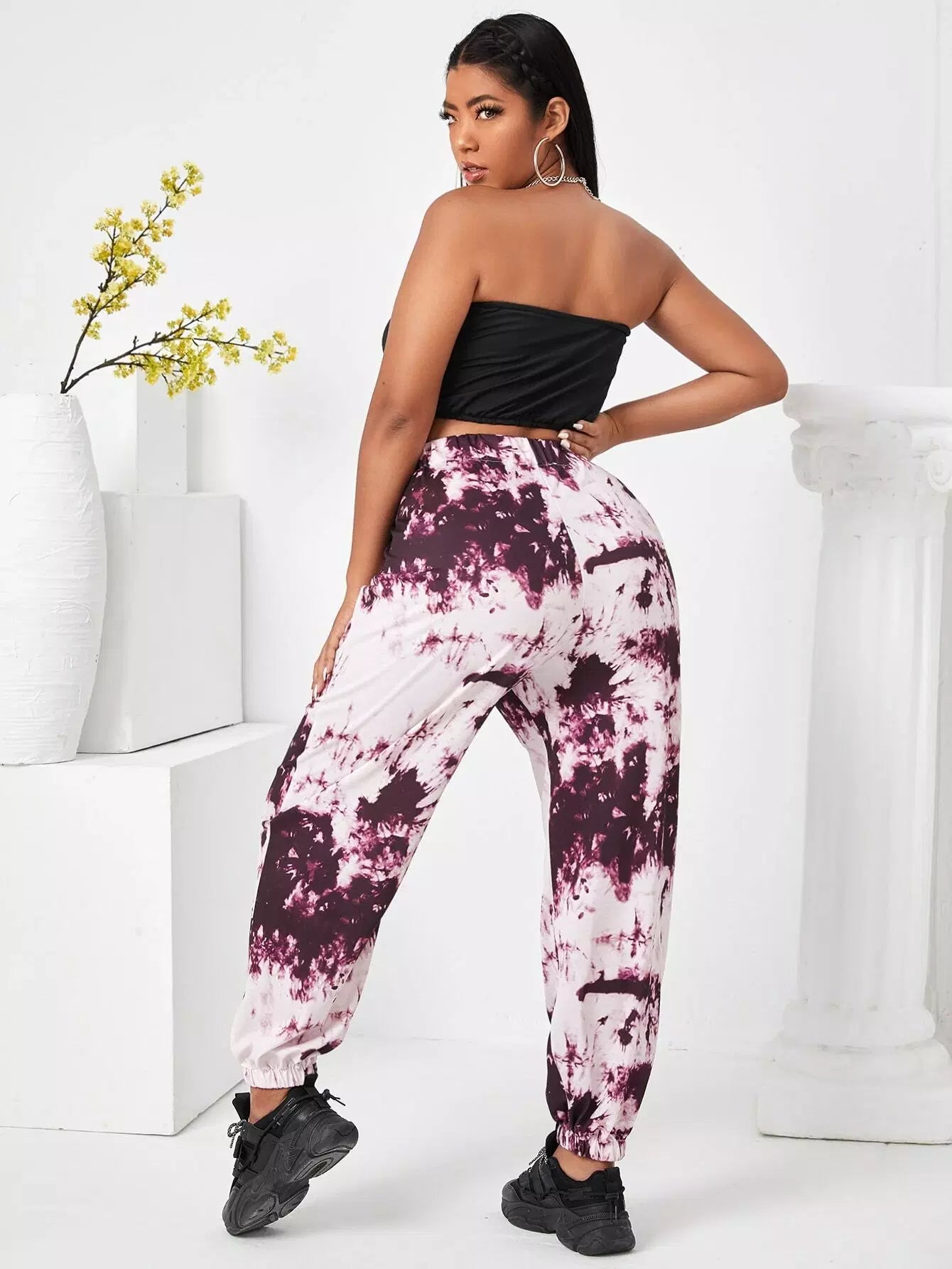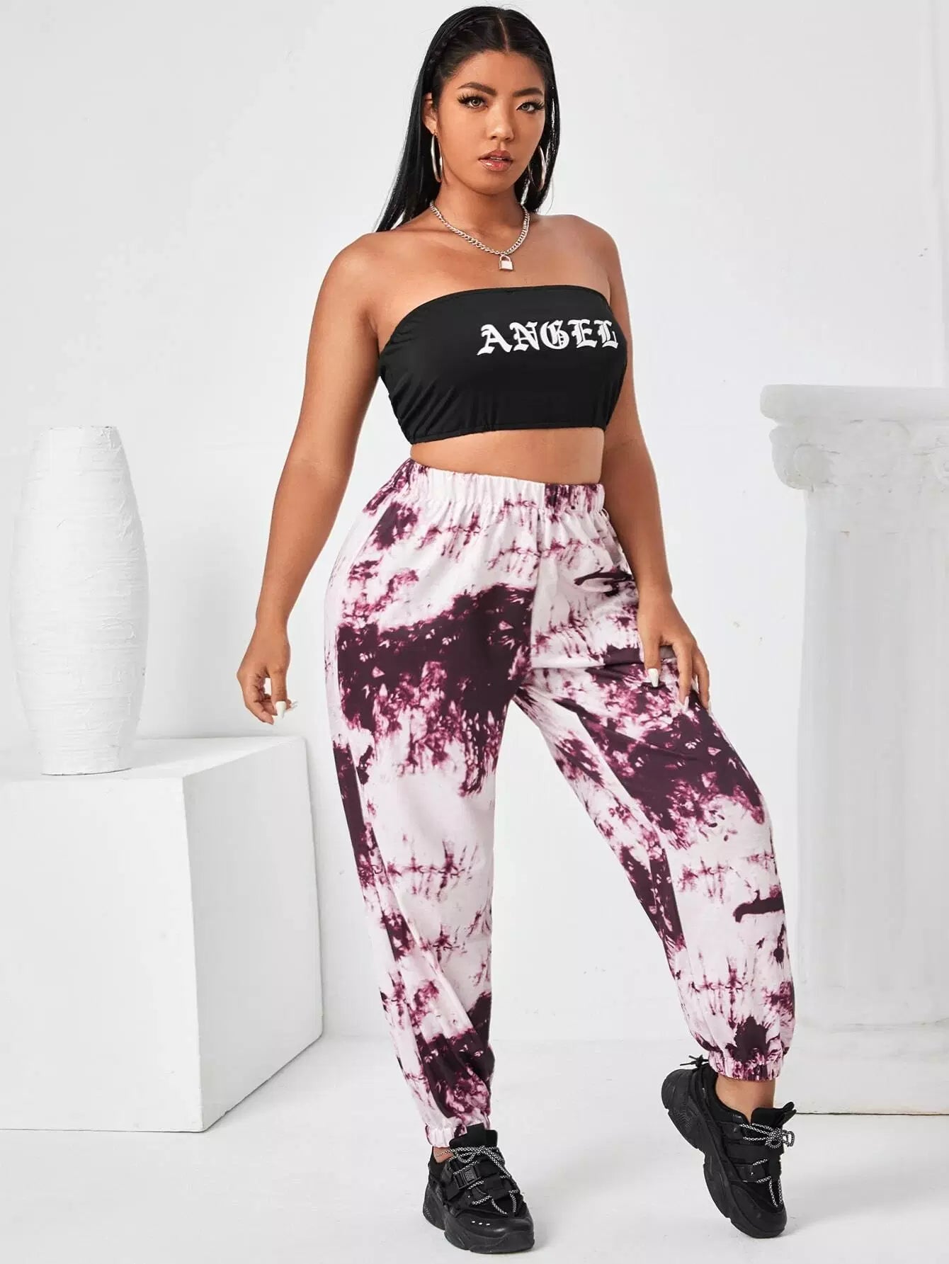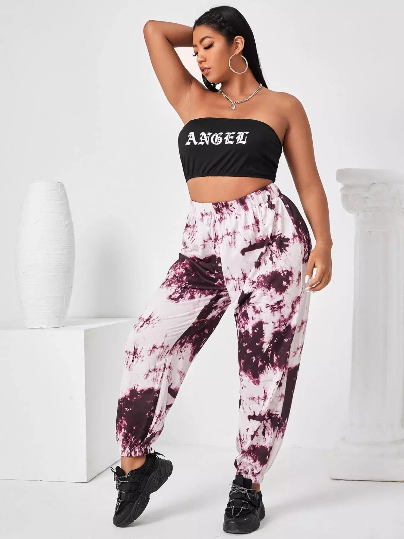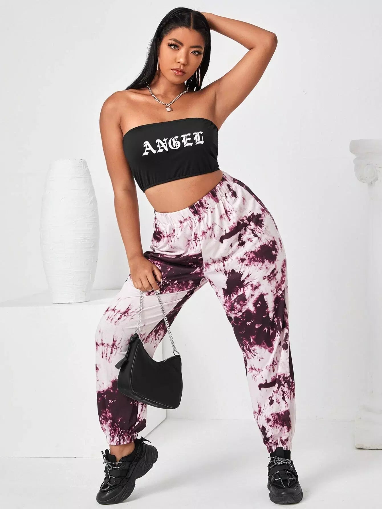 بلوزة أنبوبي برسومات حروف زائد وبنطال رياضي مصبوغ بربطة عنق