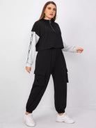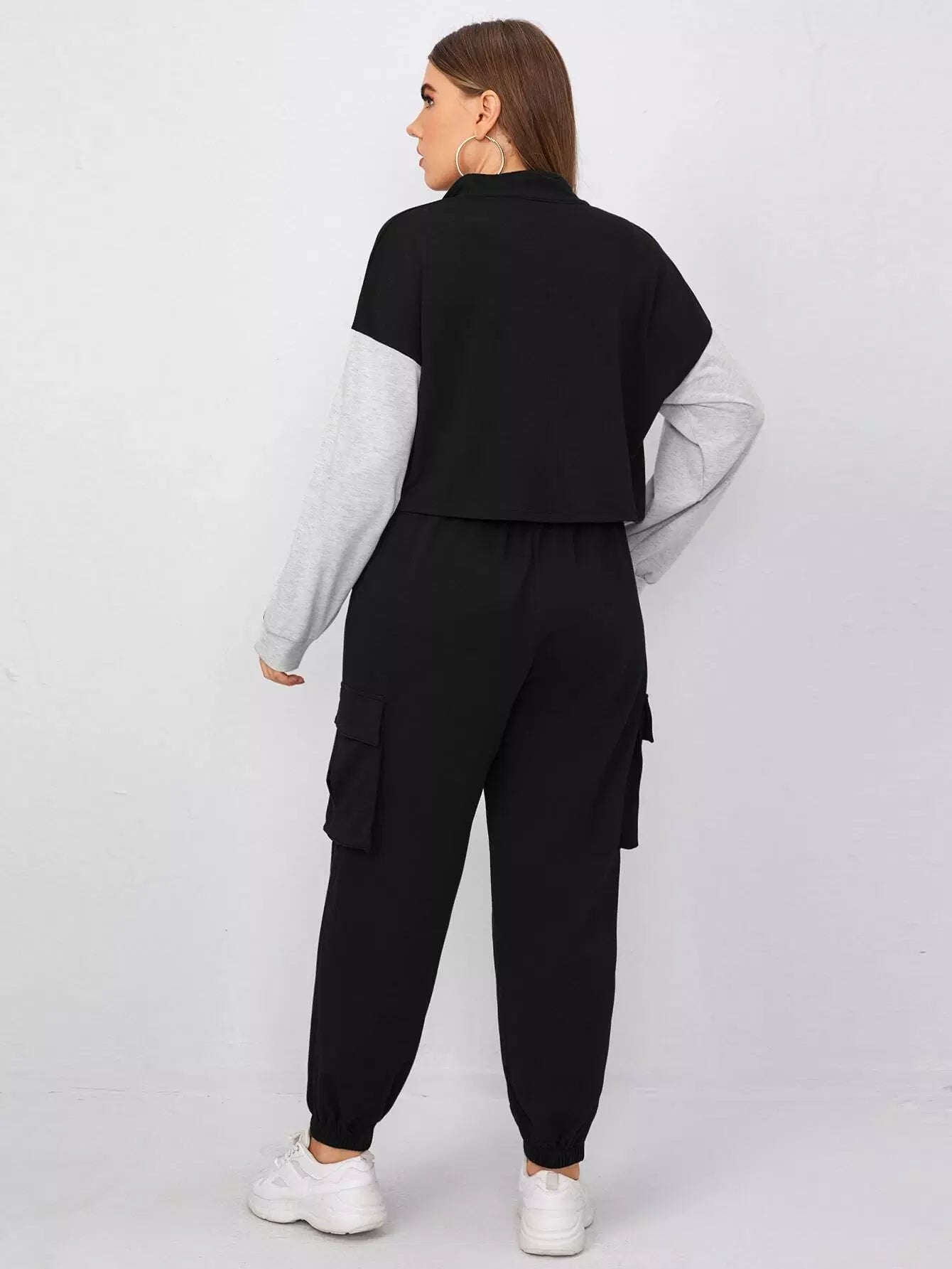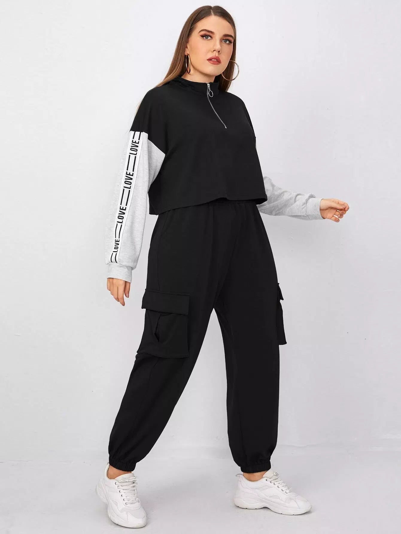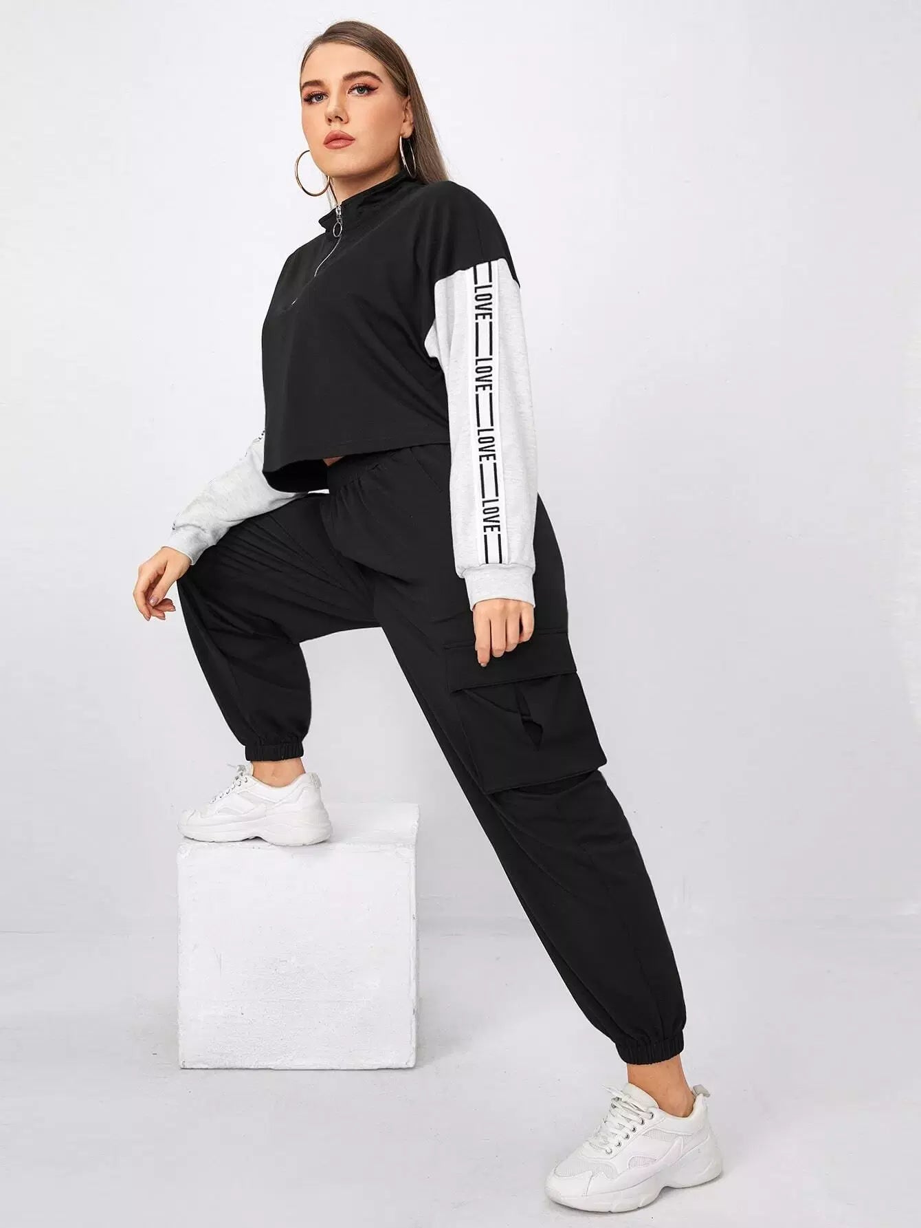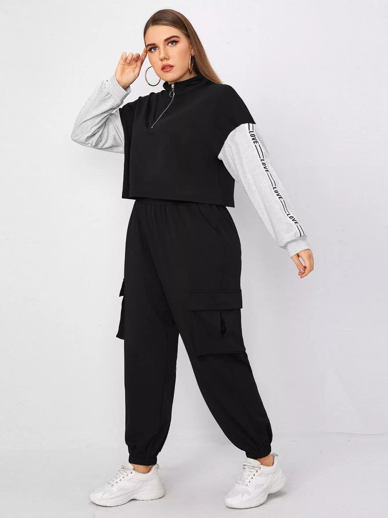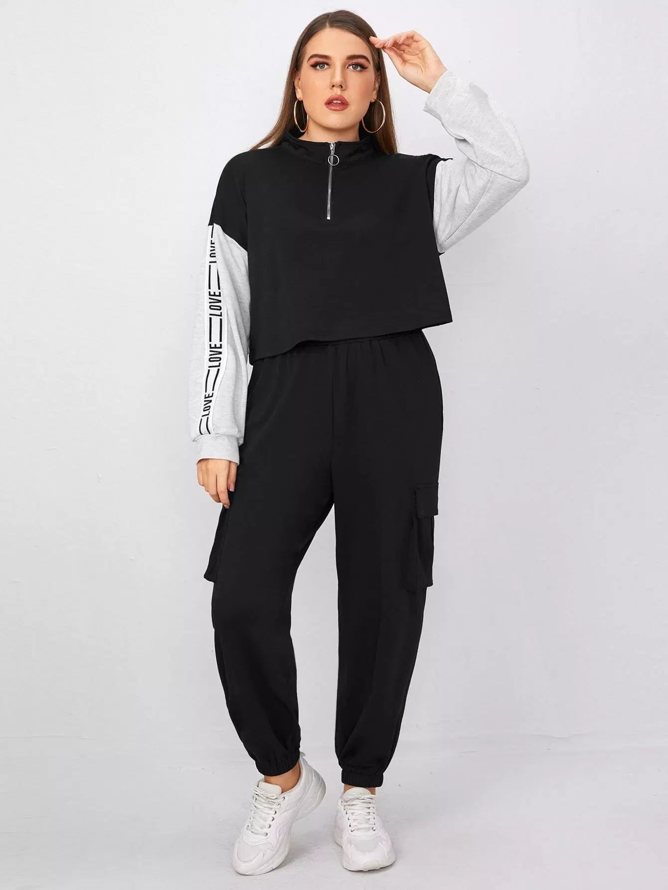 بلس سويت شيرت وبنطال رياضي بنصف سحاب بشريط لاصق بحروف زائد