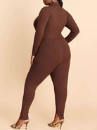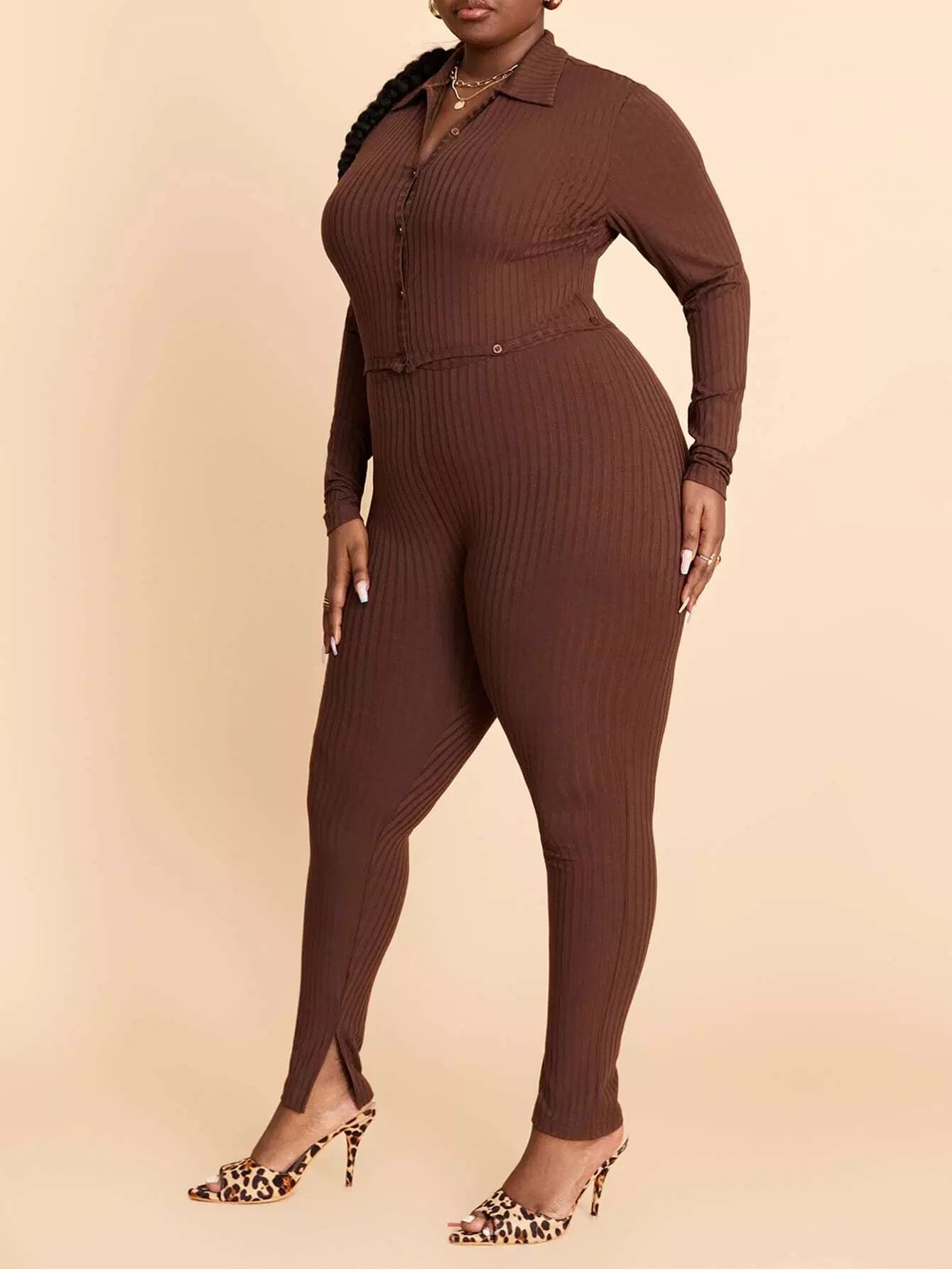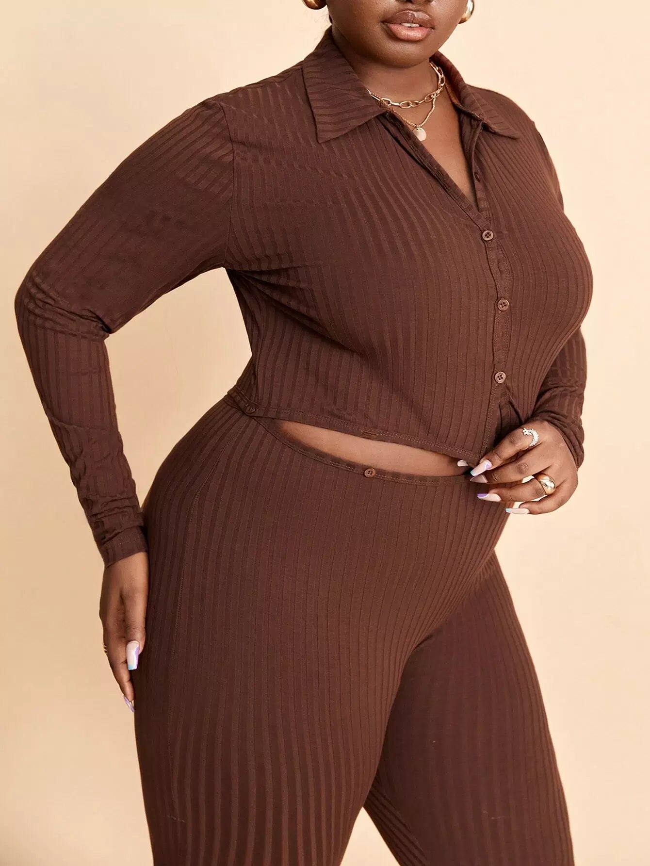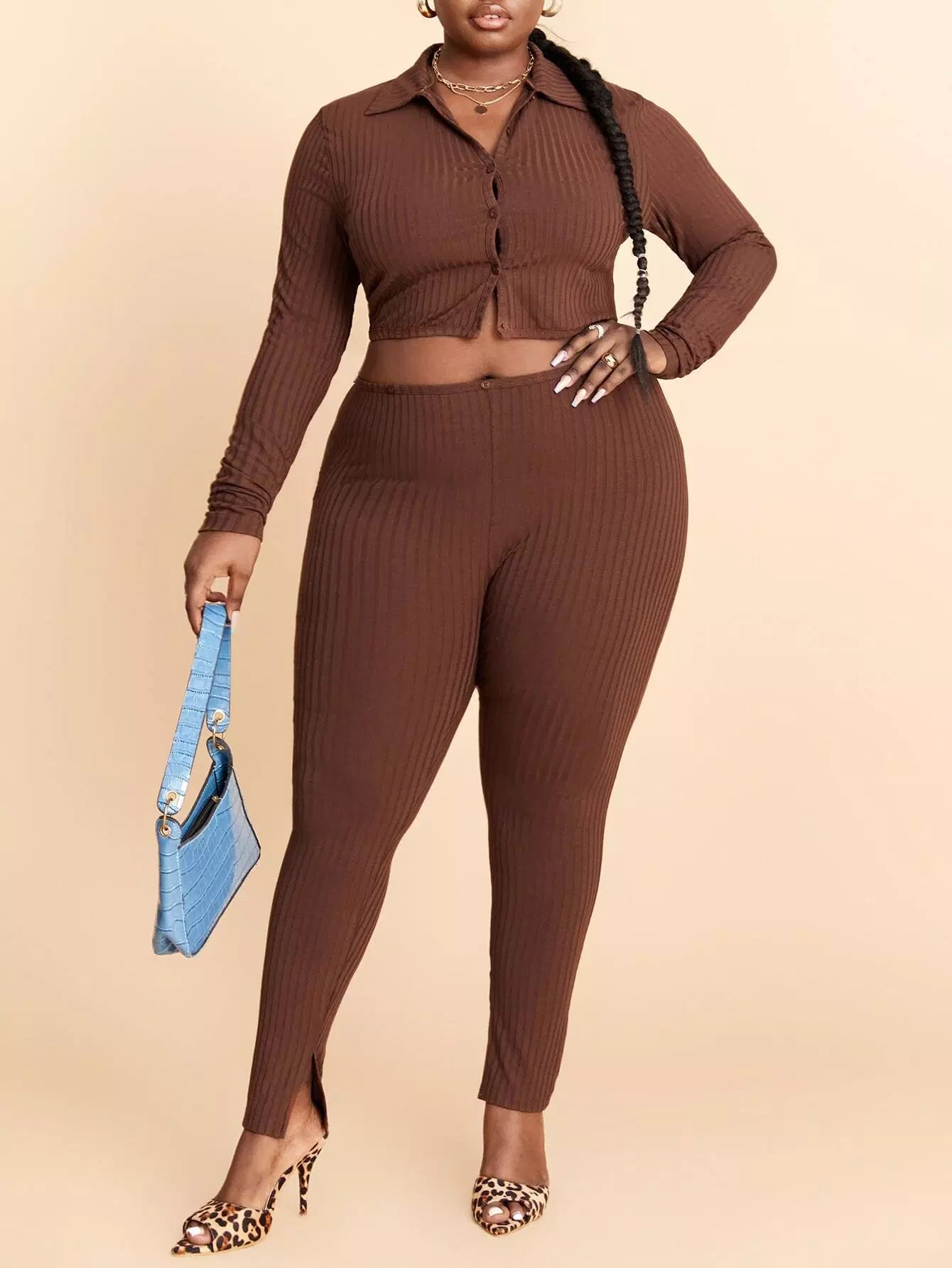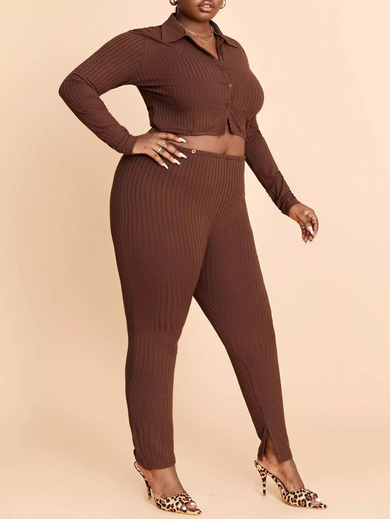 بلوزة قصيرة بأزرار أمامية مضلعة مضلعة بأزرار مضلعة وسروال ضيق ضيق مقسم