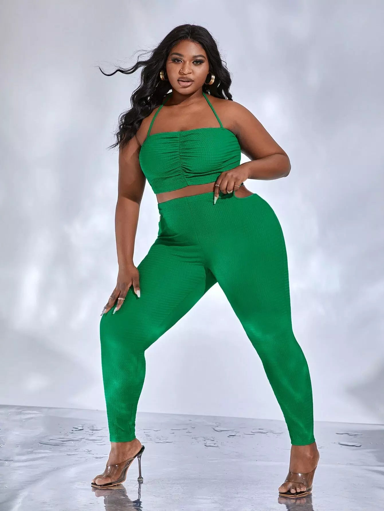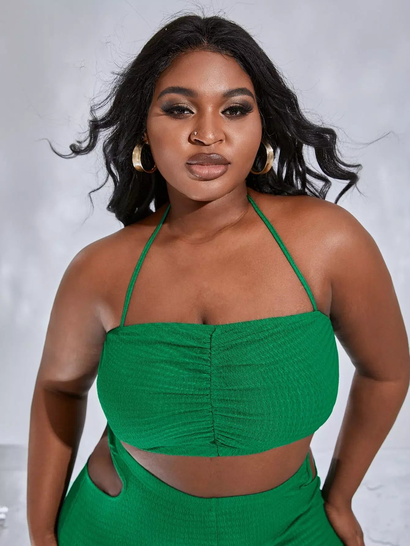 بلوزة بفتحة رسن مكشكشة مكشكشة وبلوزة ضيقة بفتحة رسن قصيرة
