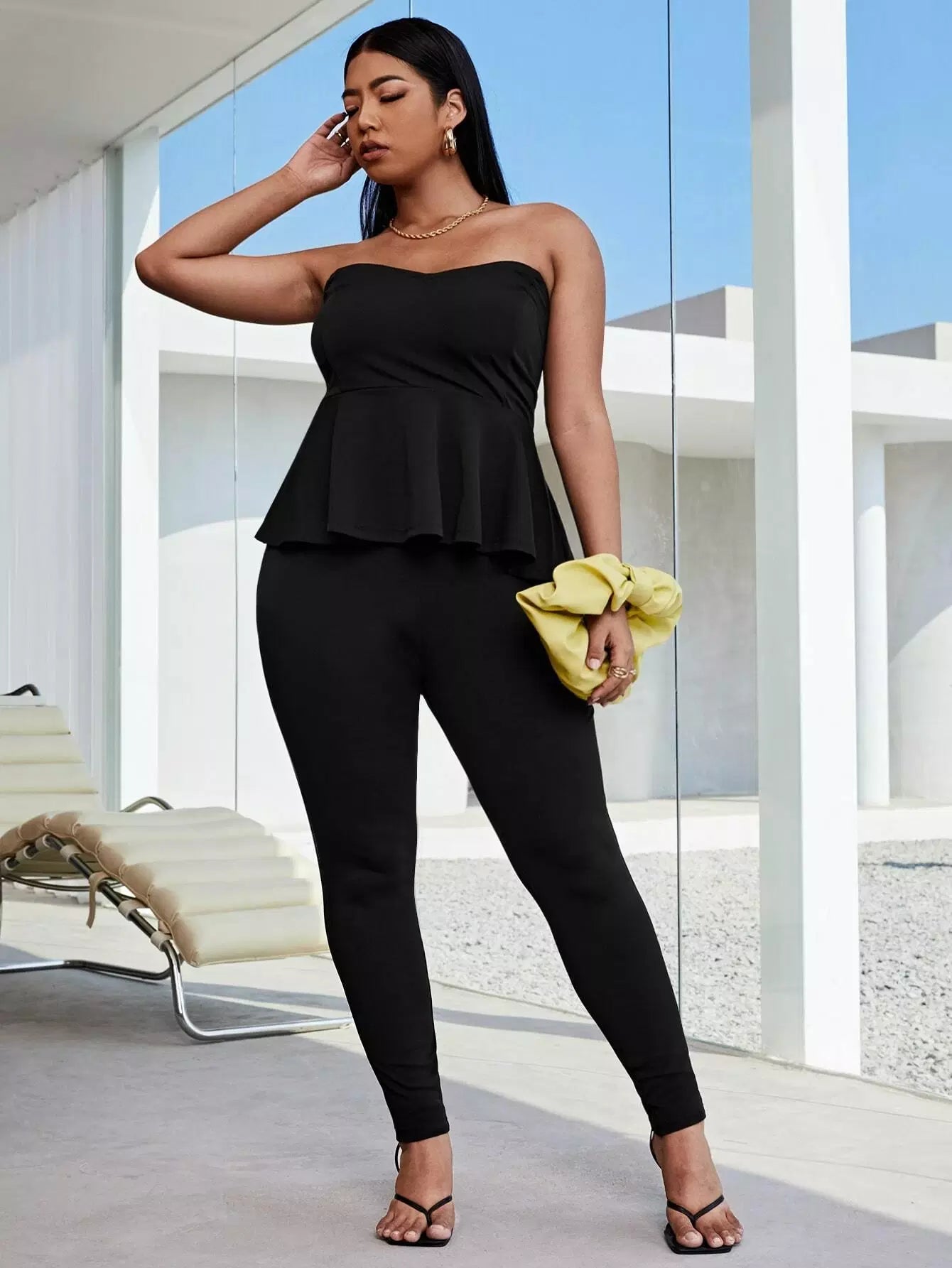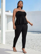 نحيف - مقاس كبير مجموعة توب وطماق بحاشية مكشكشة