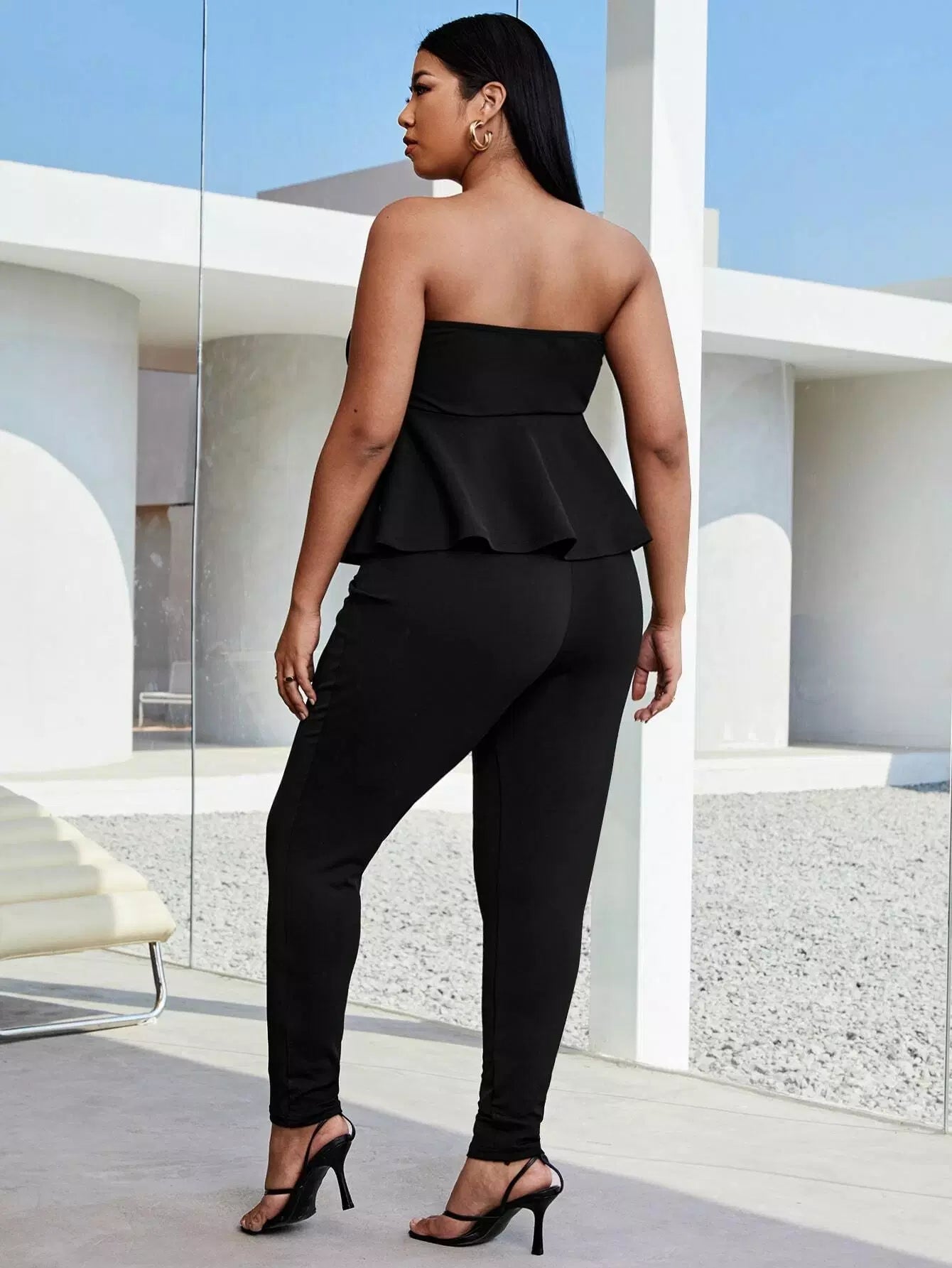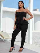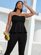 طقم بلوزة بحافة مكشكشة مكشكشة وطقم بنطال ضيق