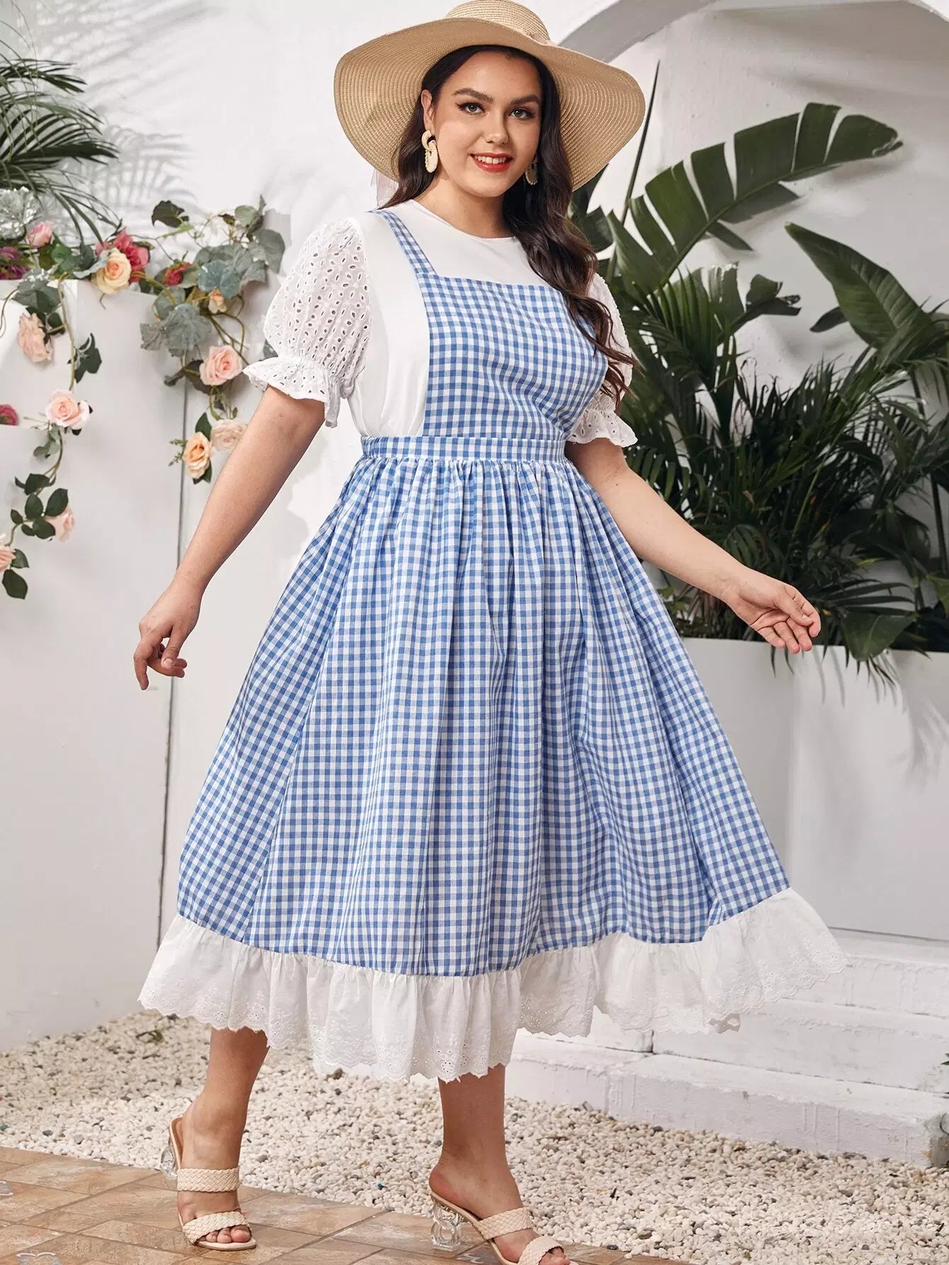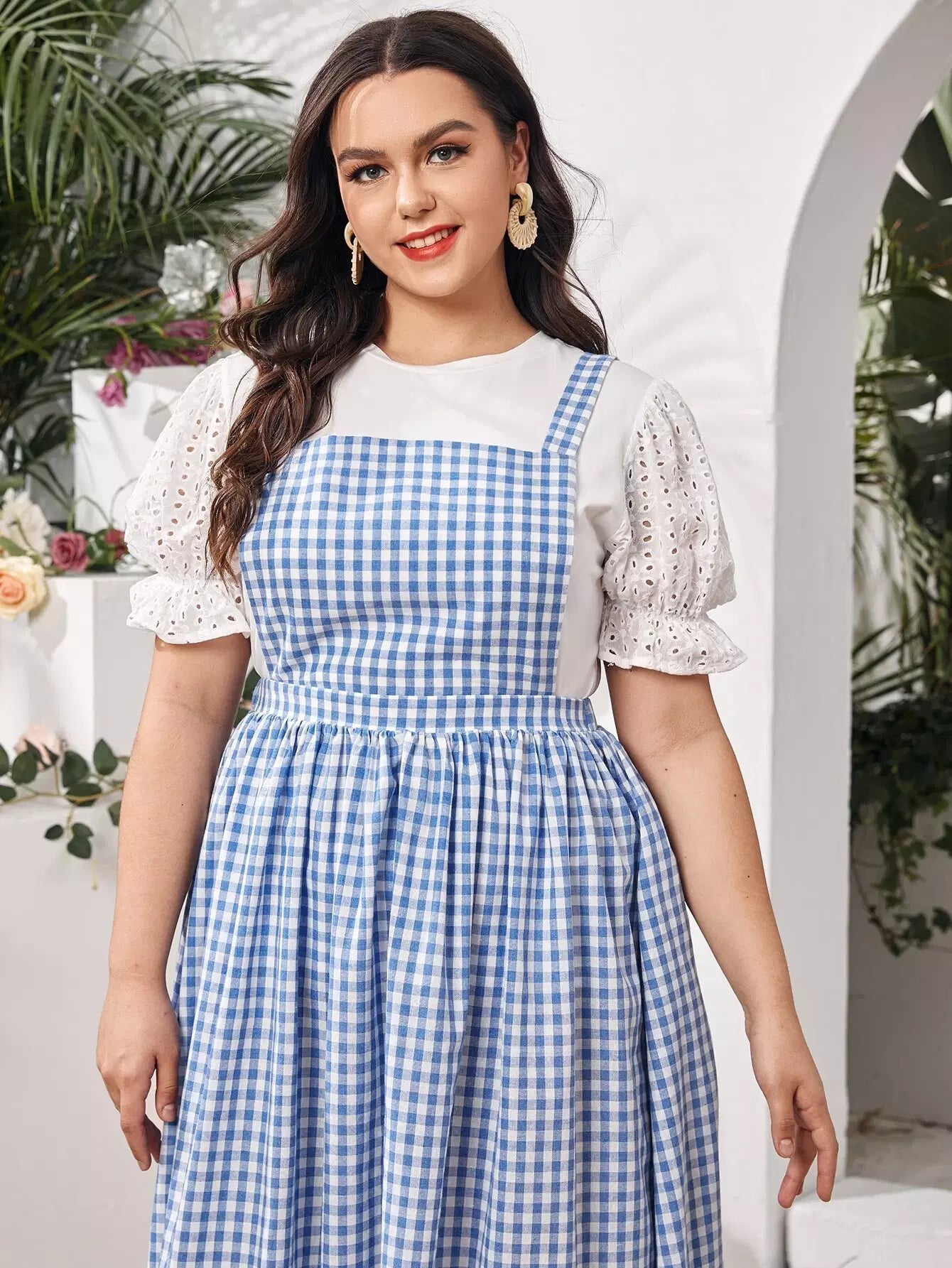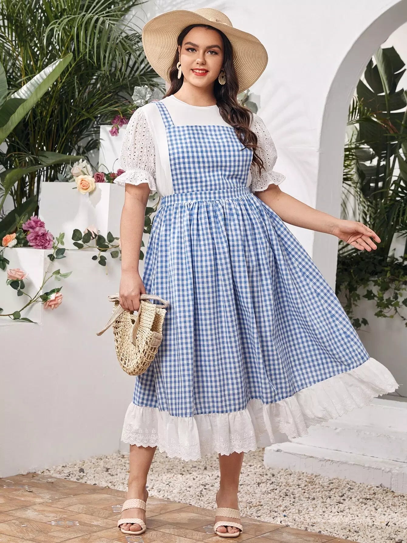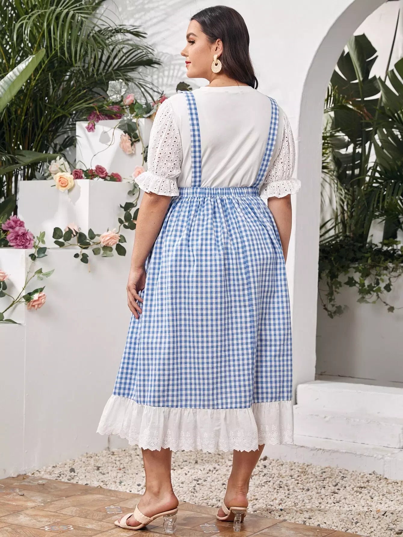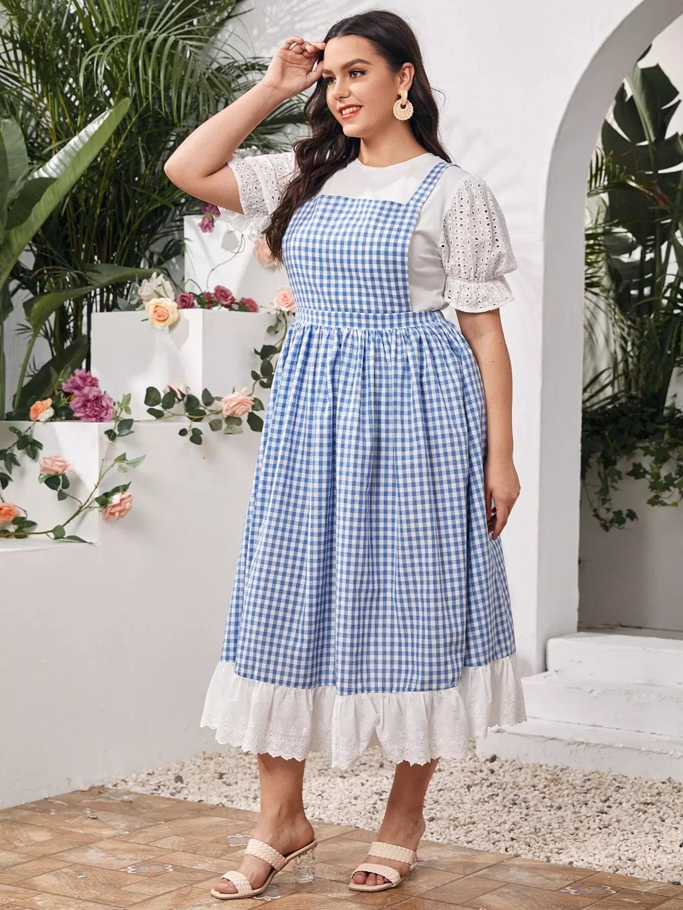 بلوزة بأكمام منفوشة بأكمام منفوشة مع فستان قطني بأطراف مكشكشة بلون مغاير
