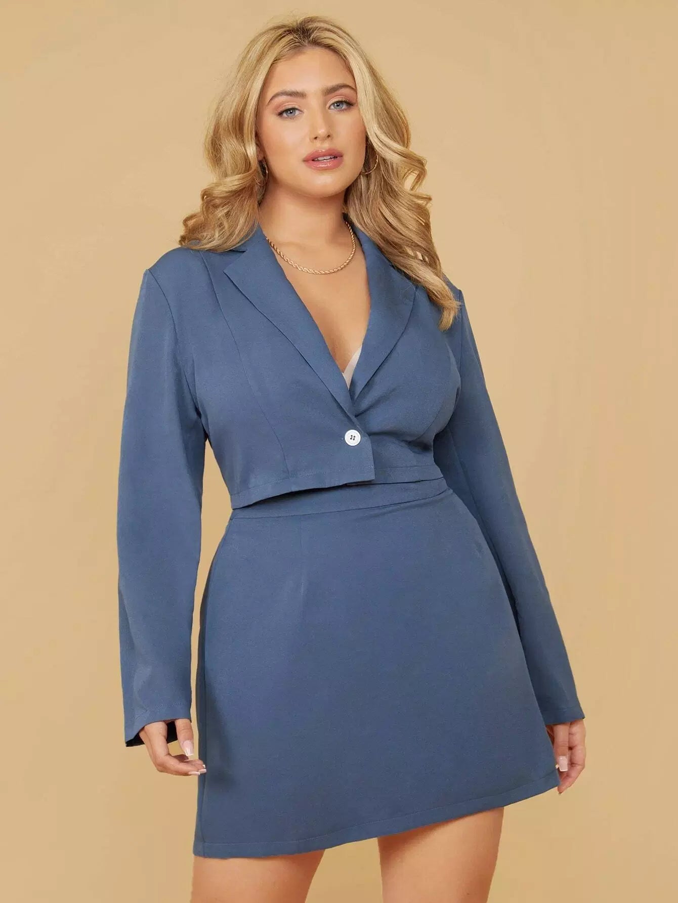 نحيف - مقاس كبير زر واحد طية صدر السترة الرقبة أعلى وتنورة الصلبة