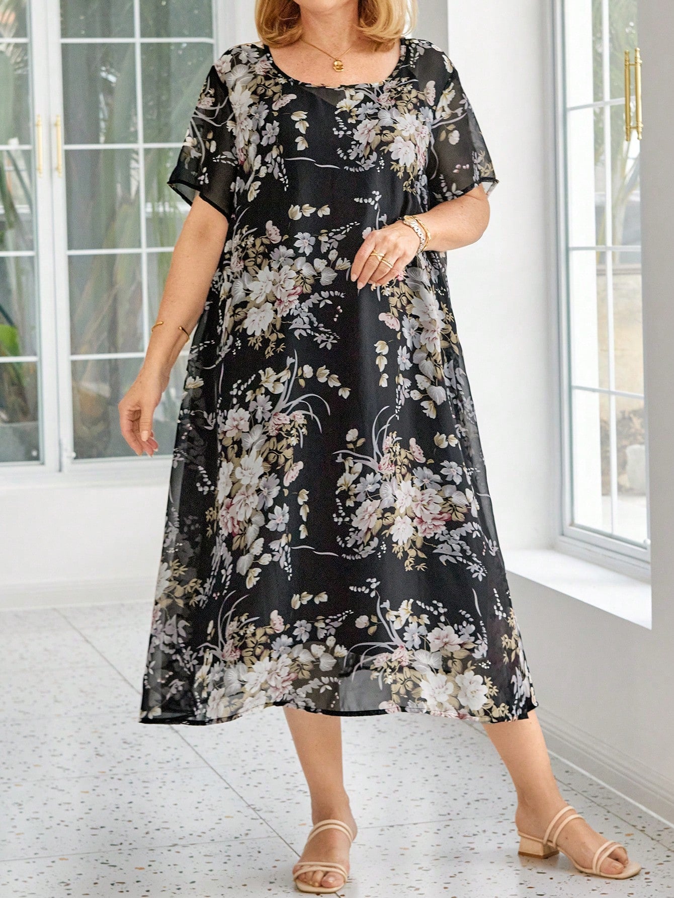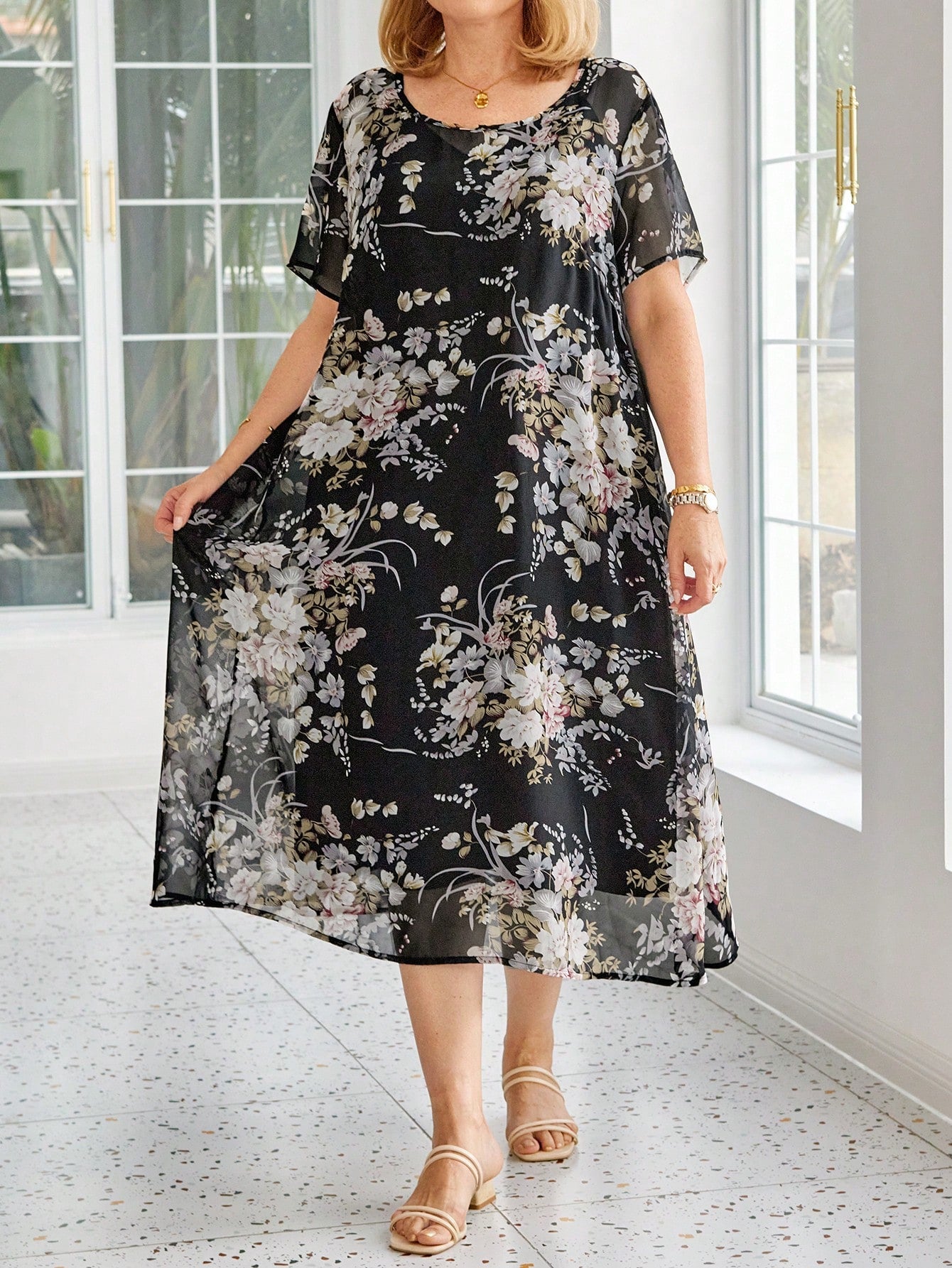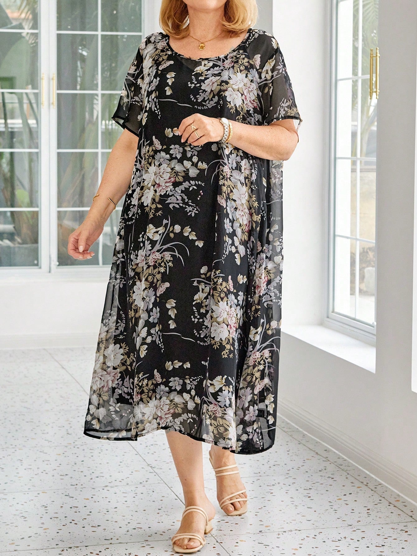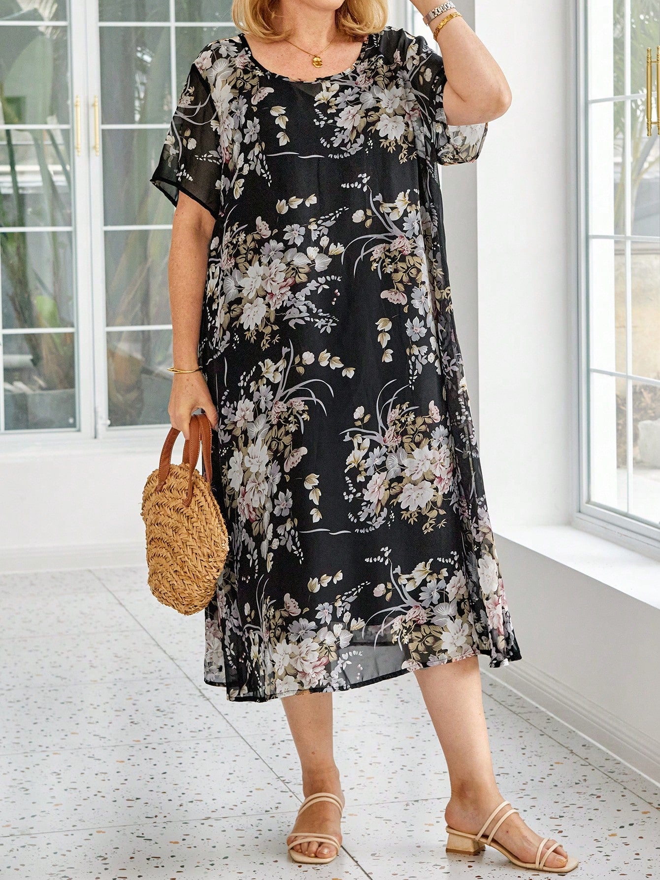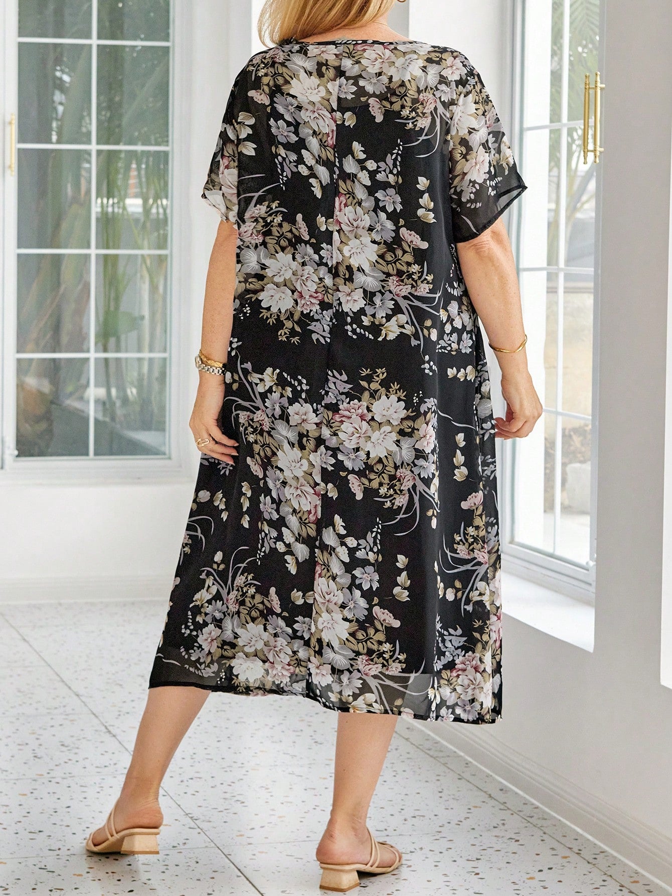 women Plus Size Women's Randomly Printed Simple Daily Dress Coat 2pcs/Set