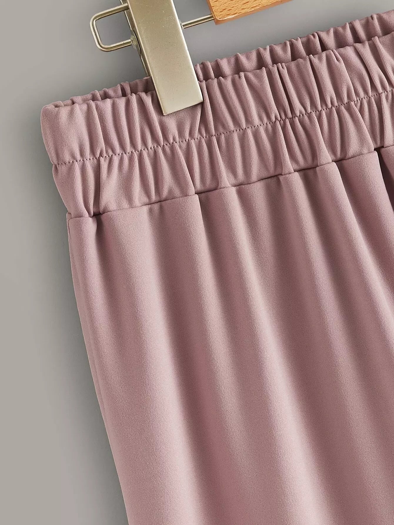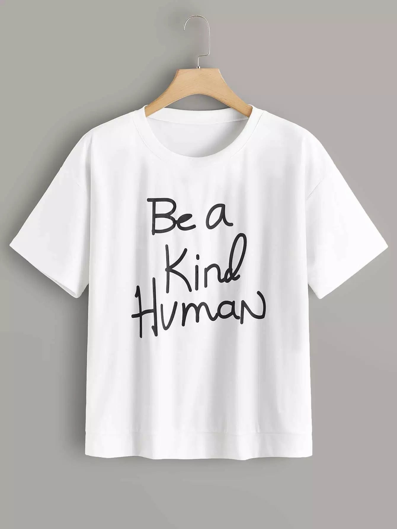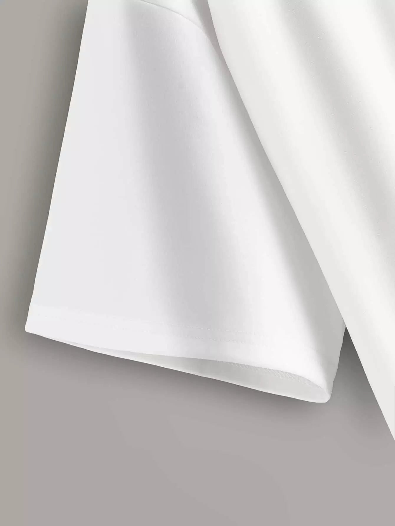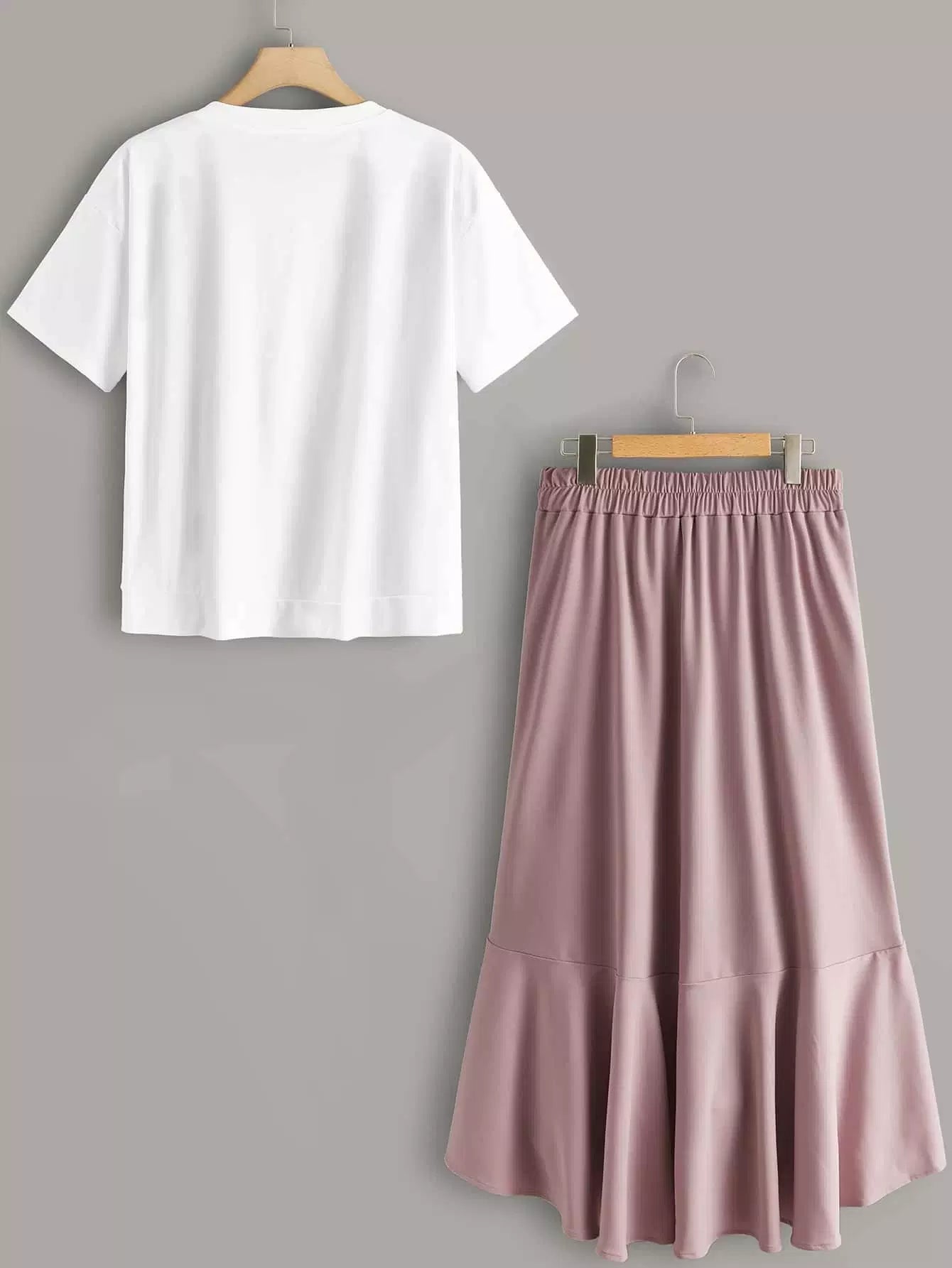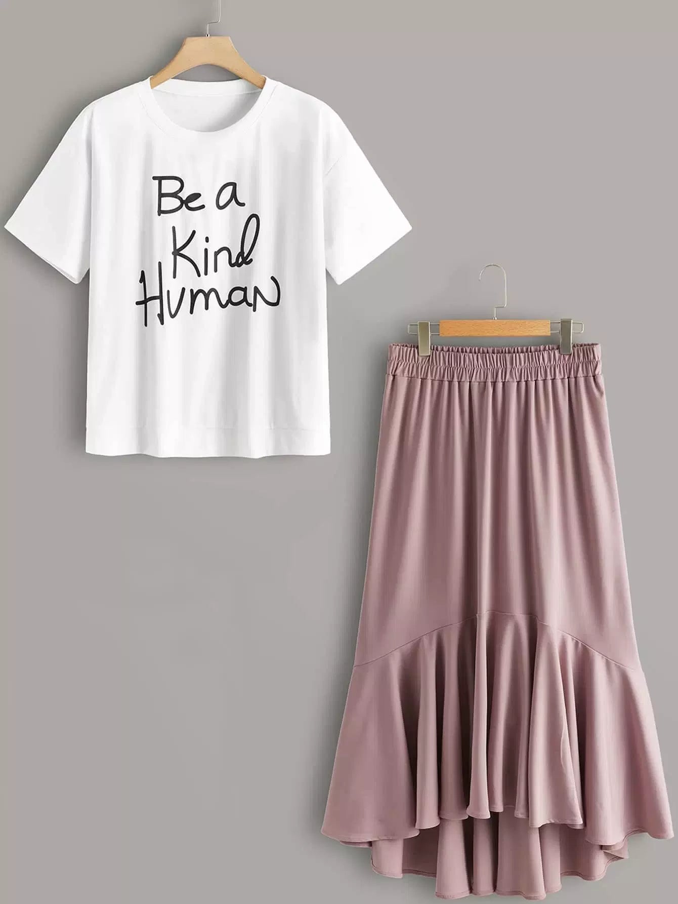 تي شيرت جرافيك بشعار زائد وتنورة عالية منخفضة