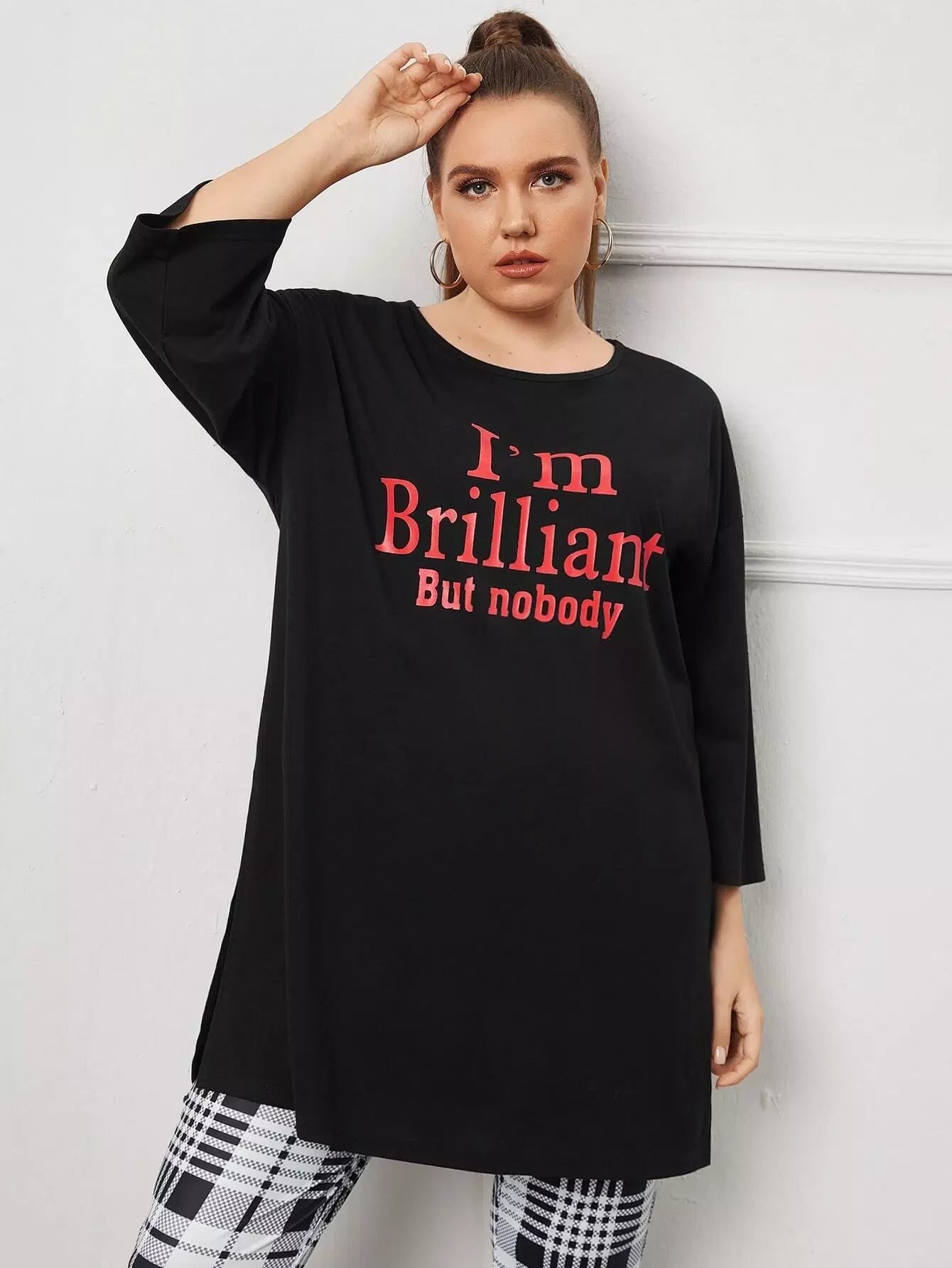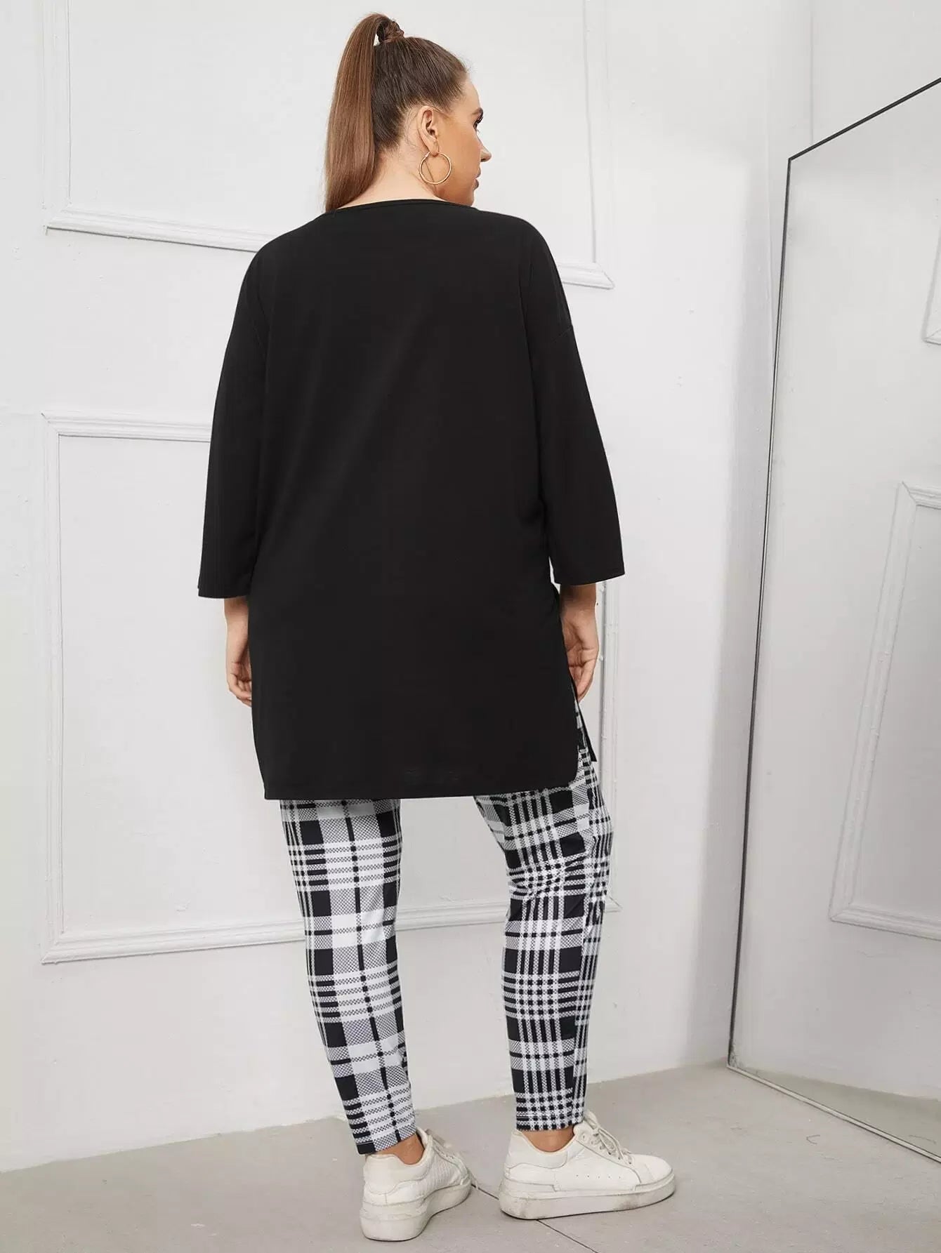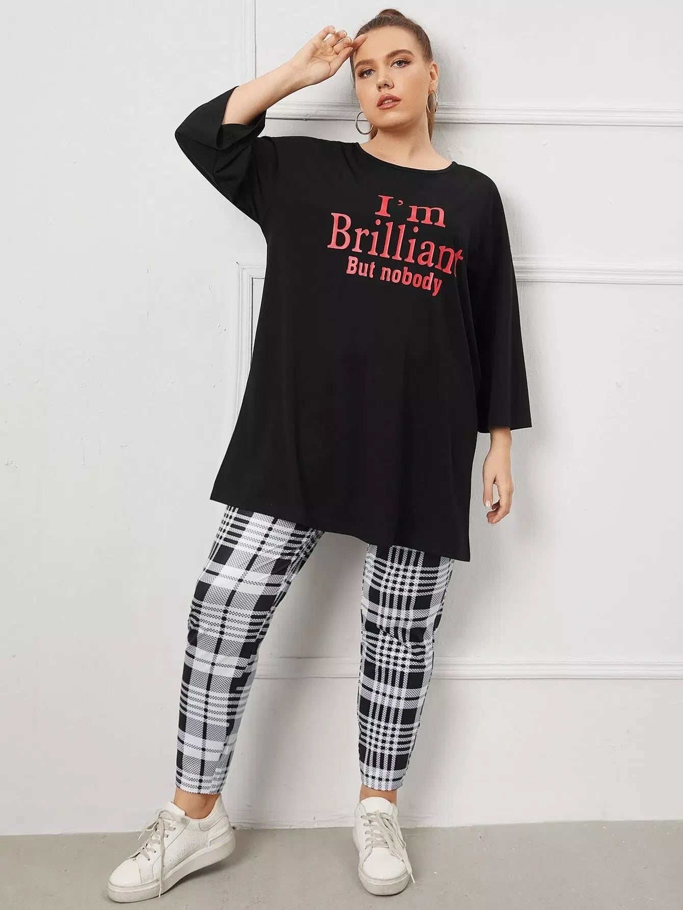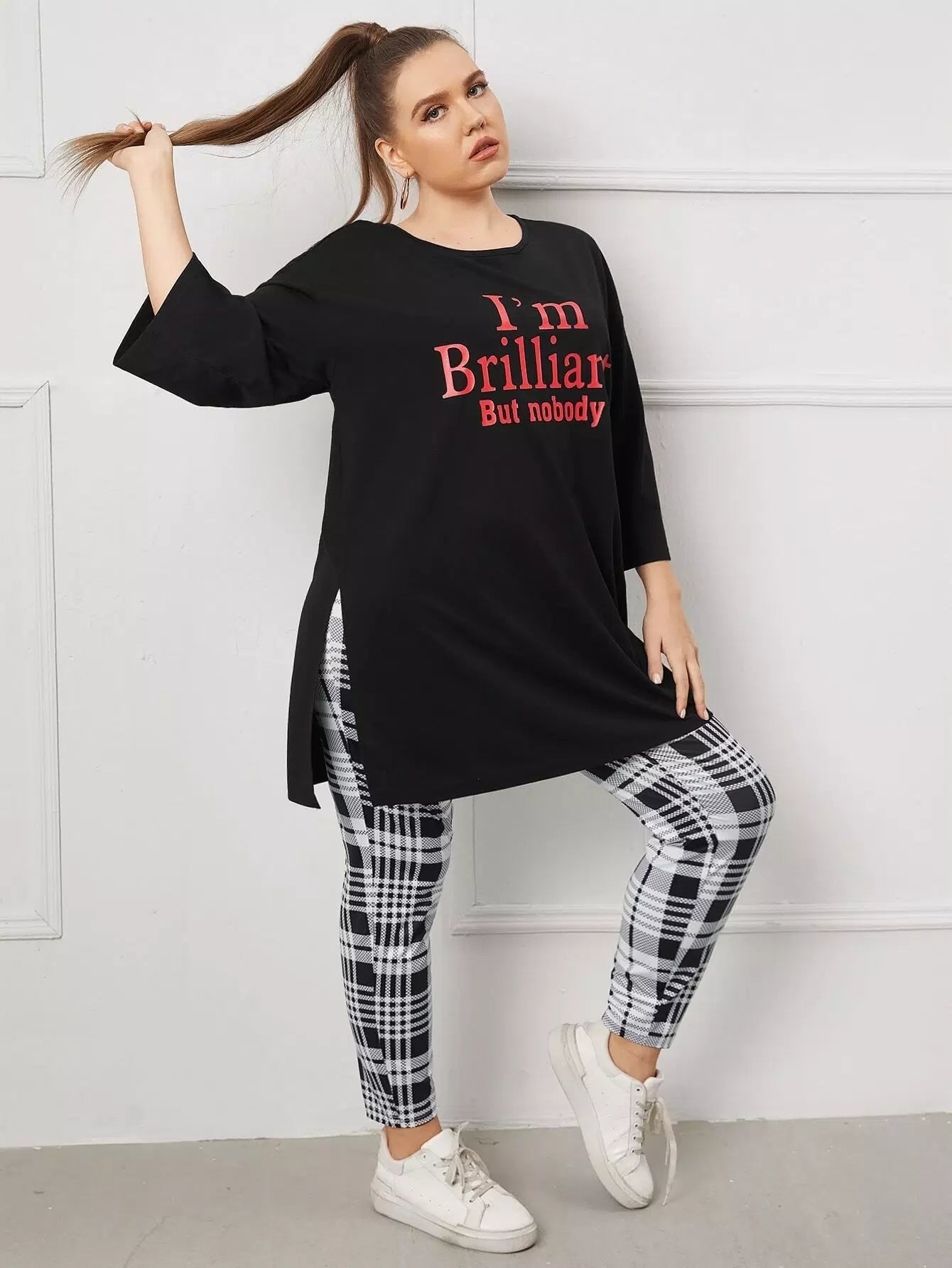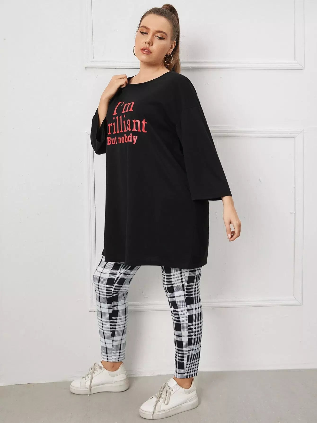 تي شيرت جرافيك بشعار زائد مع بنطال ضيق منقوش