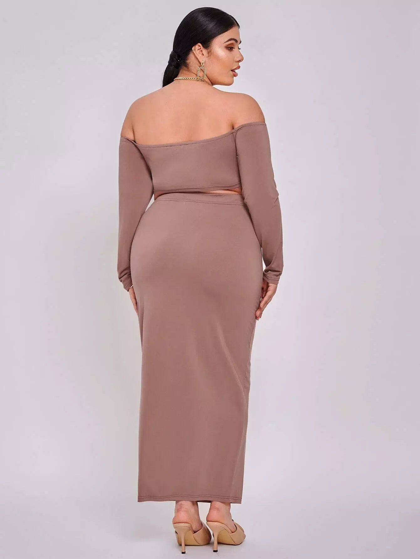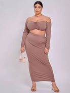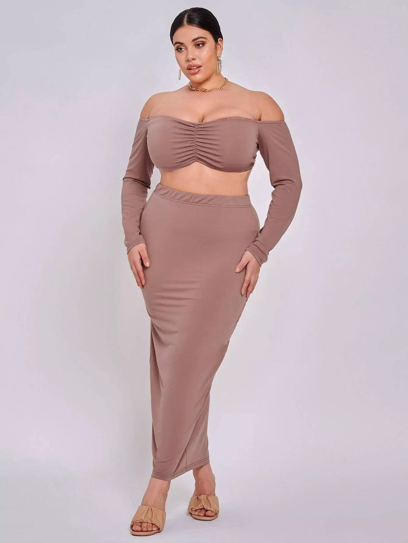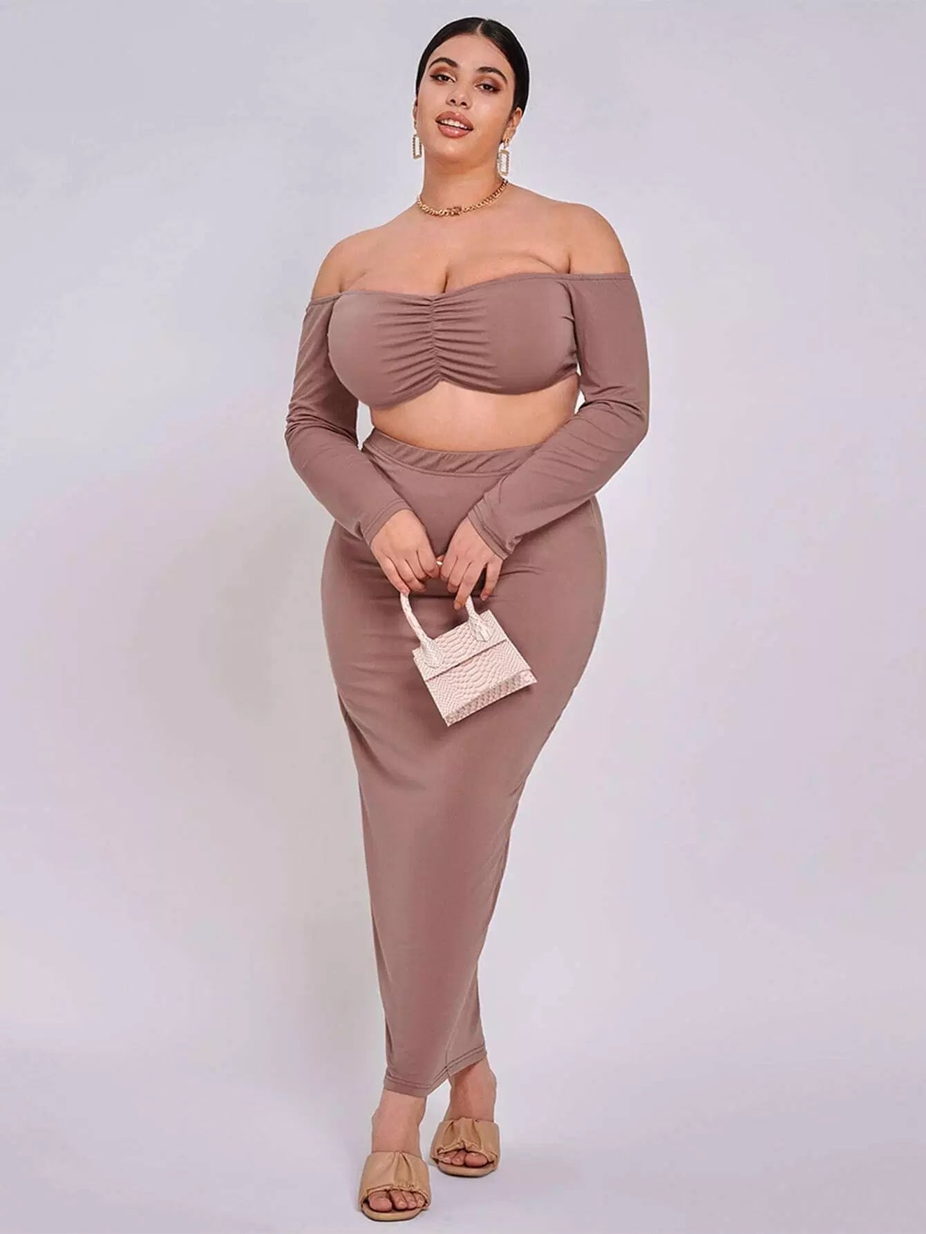 بلوزة باردو سادة بلاس سادة وتنورة قصيرة