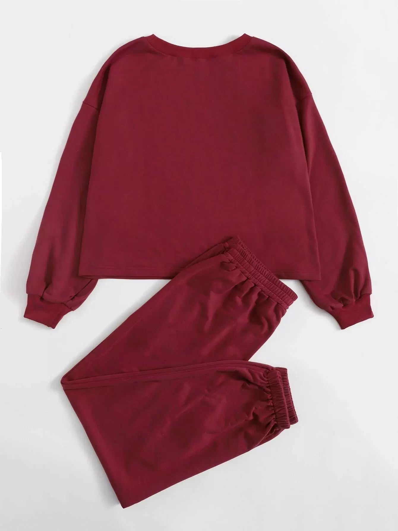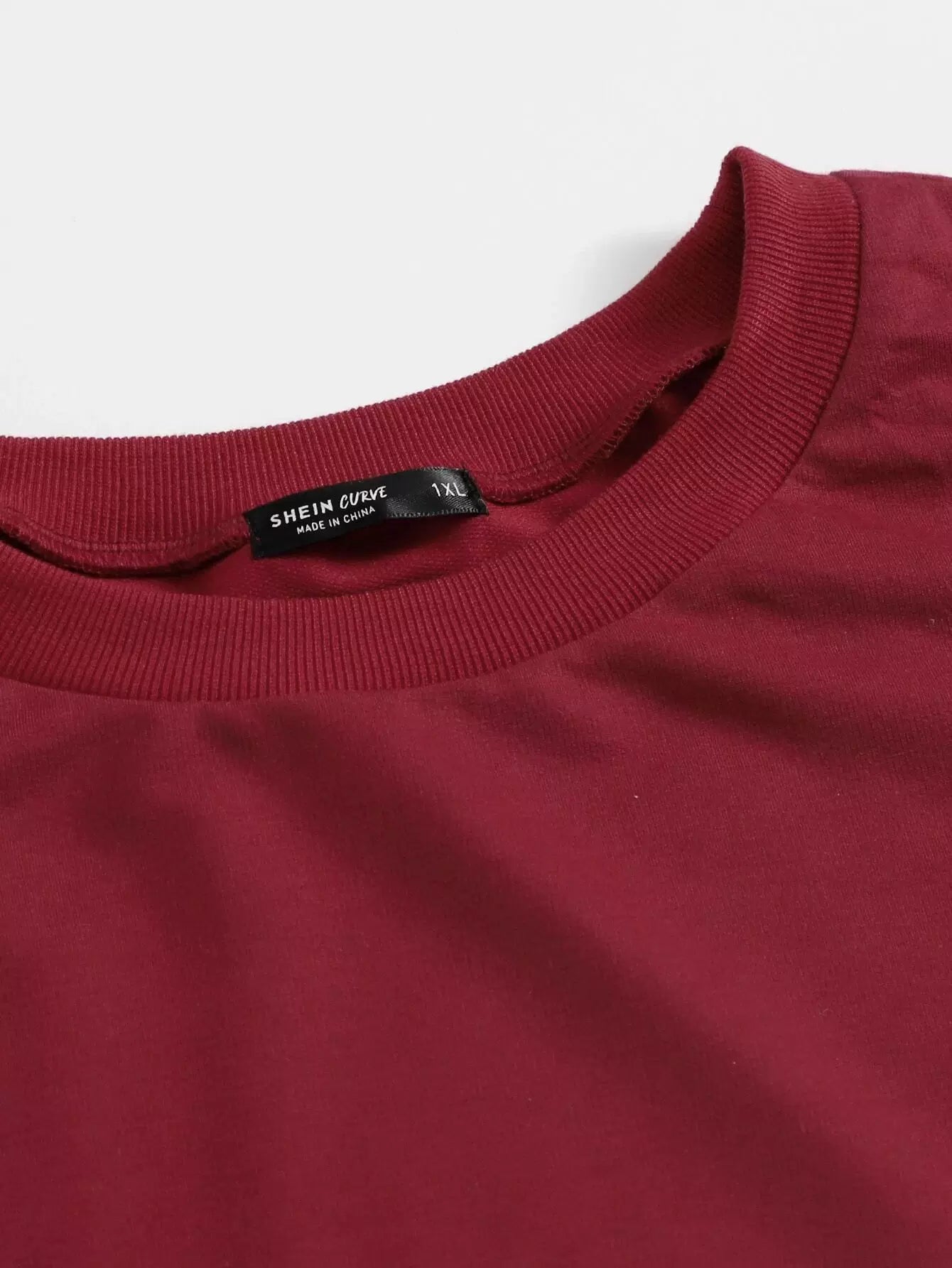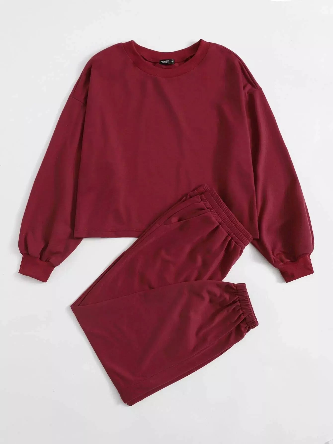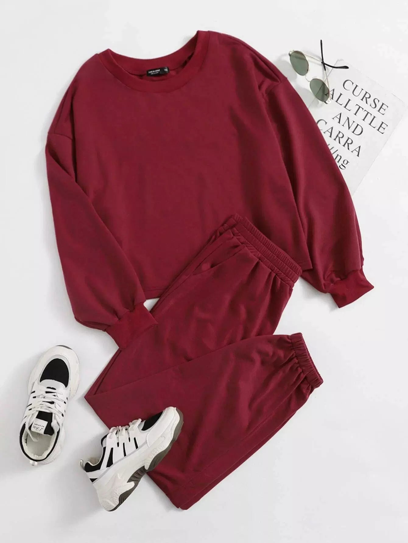 بلس سويت شيرت سادة منسدل الكتفين مع بنطال رياضي