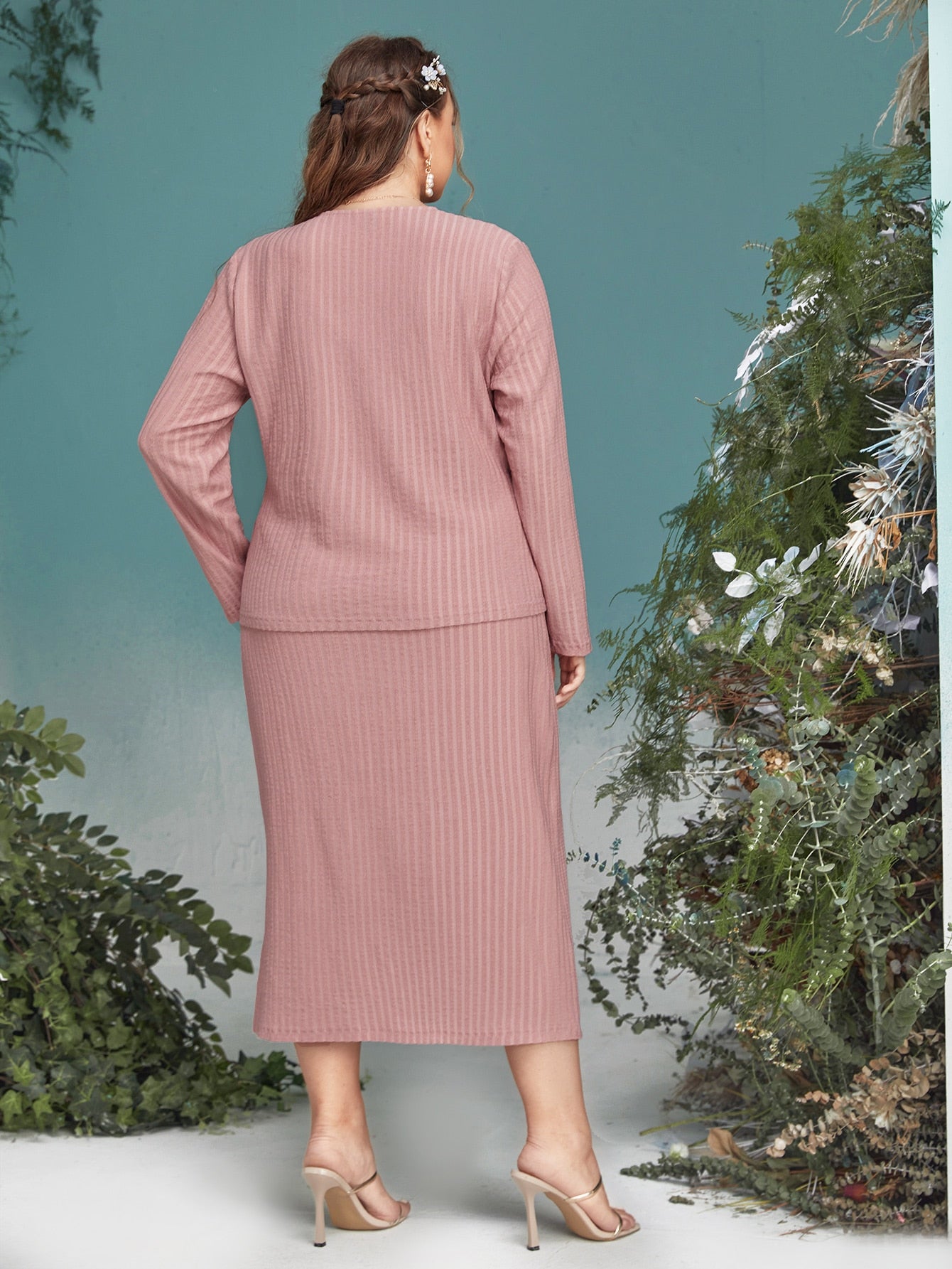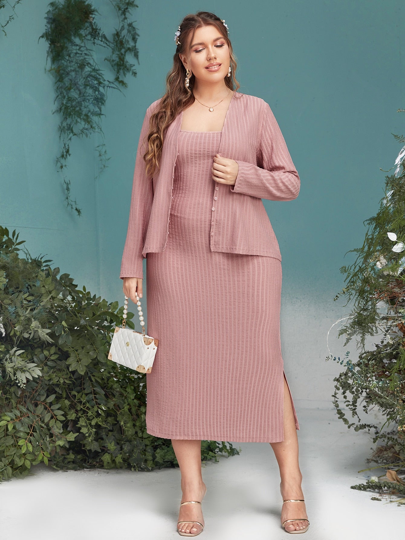 Plus Solid Slit Hem Tank Dress & Coat