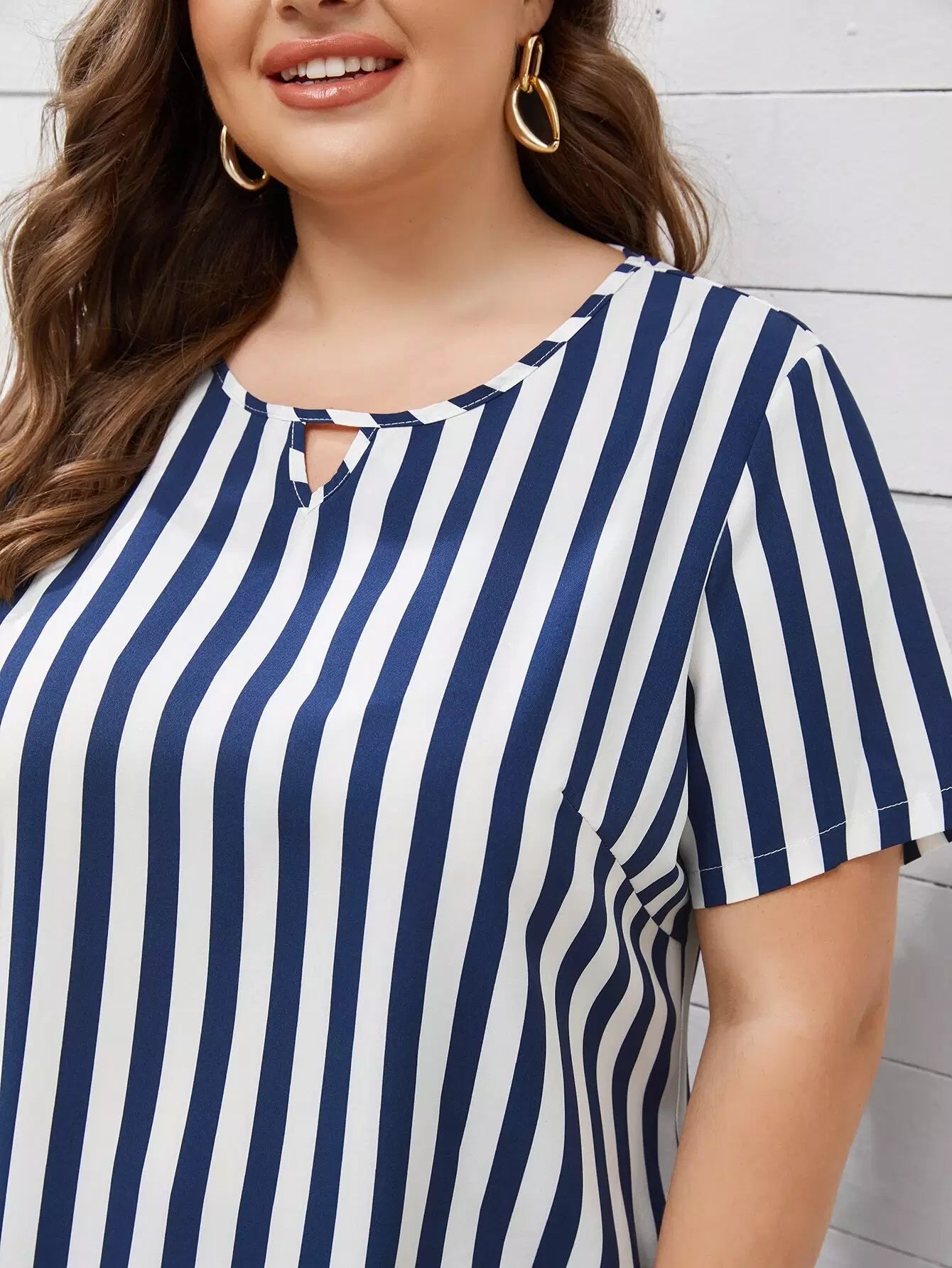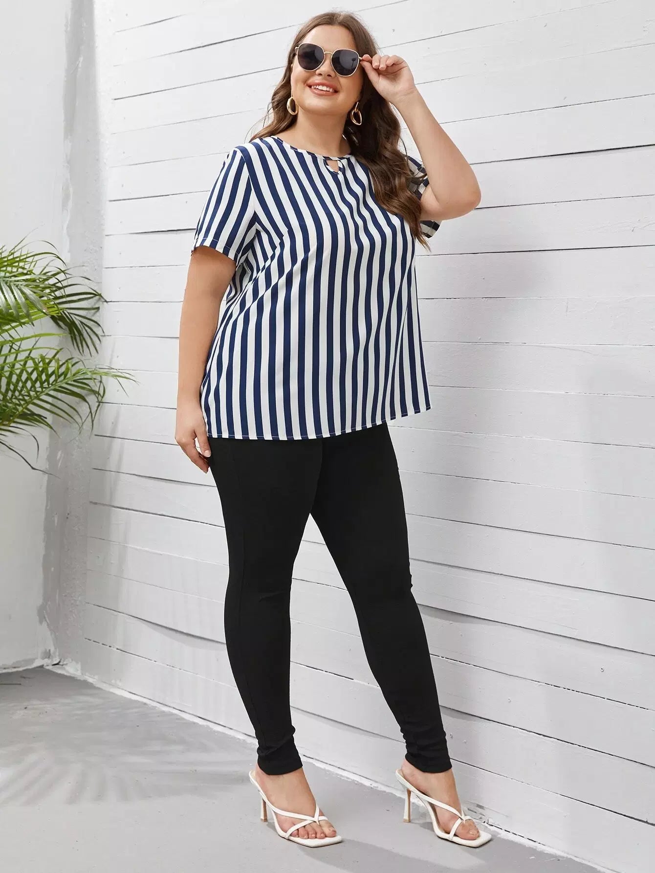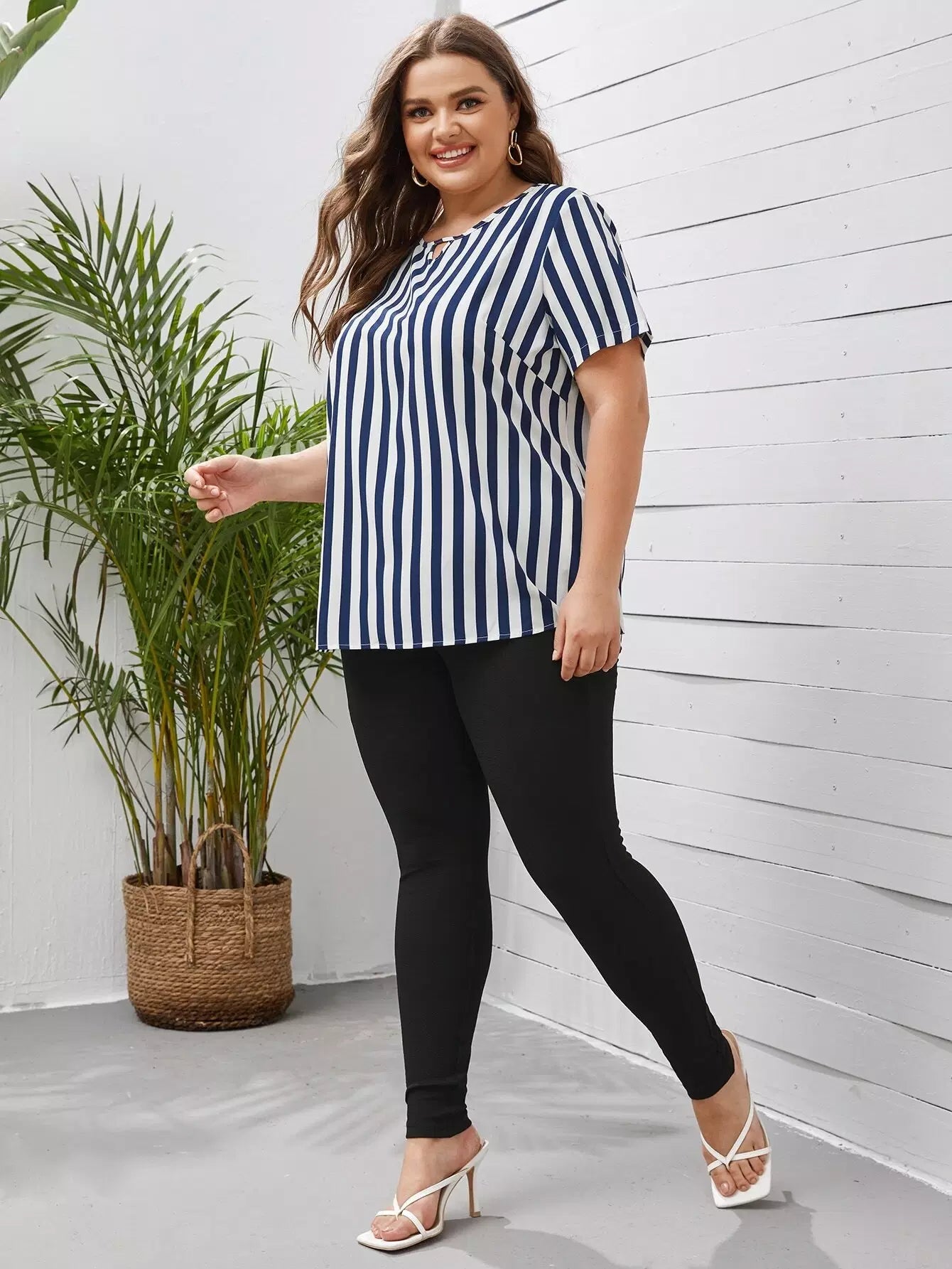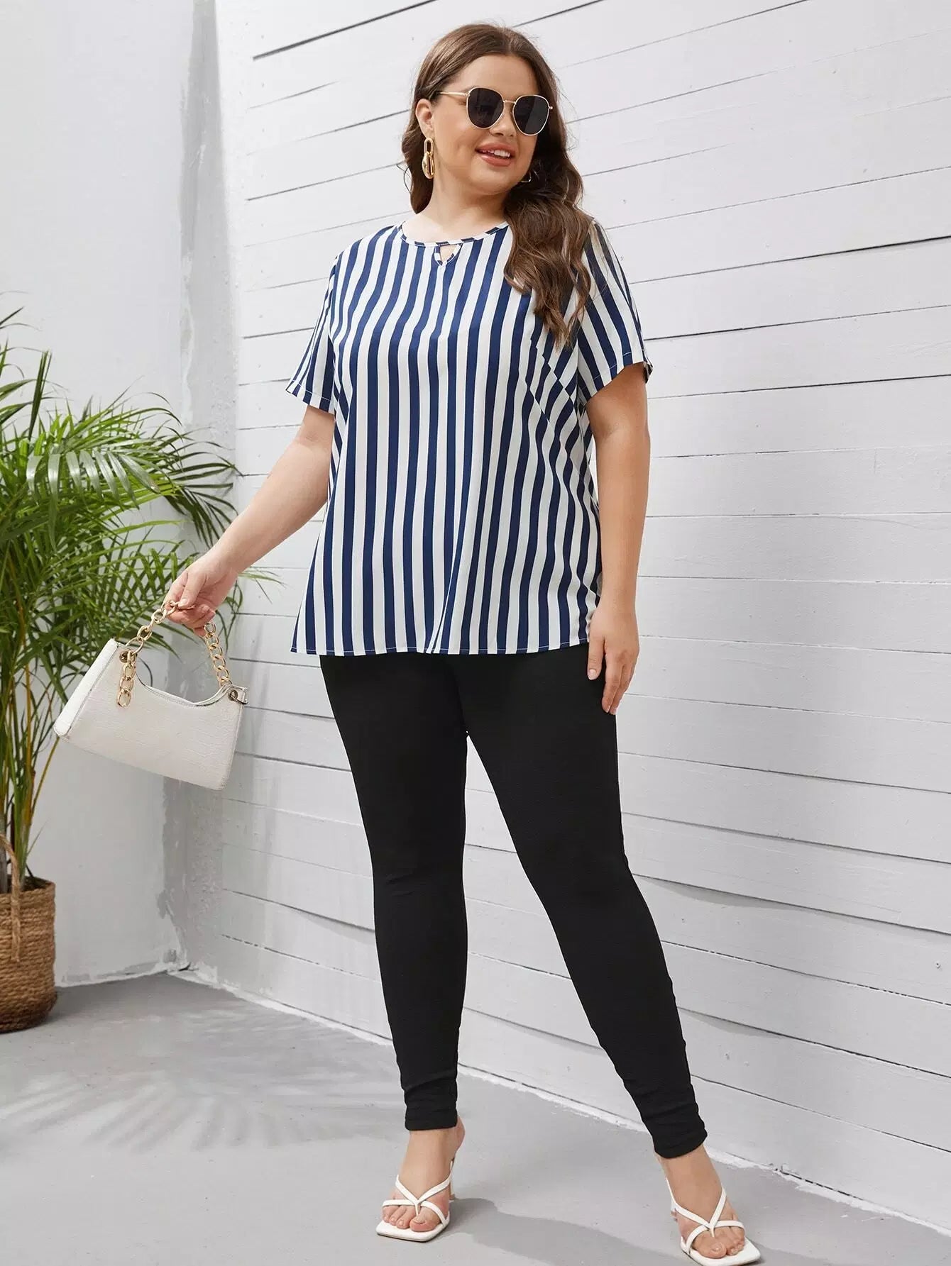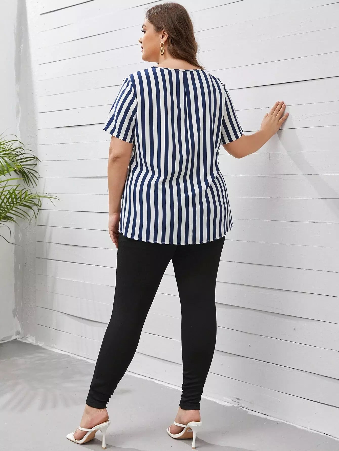 بلوزة بياقة مخططة بفتحة عنق مخططة وبلوزة برقبة مخططة بفتحة قميص وطماق