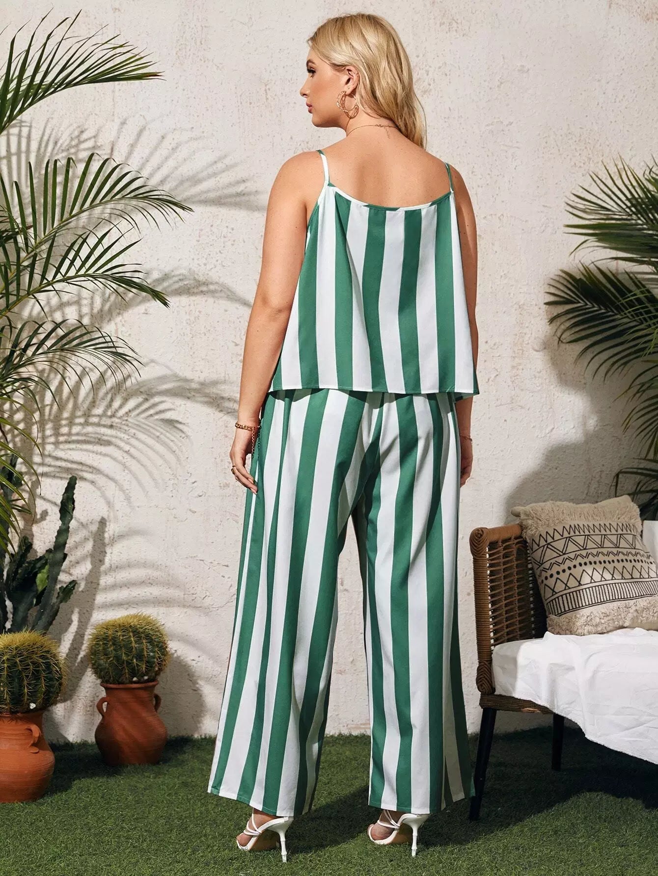 بلوزة كامي بطبعة مخططة مع بنطلون واسع الساقين