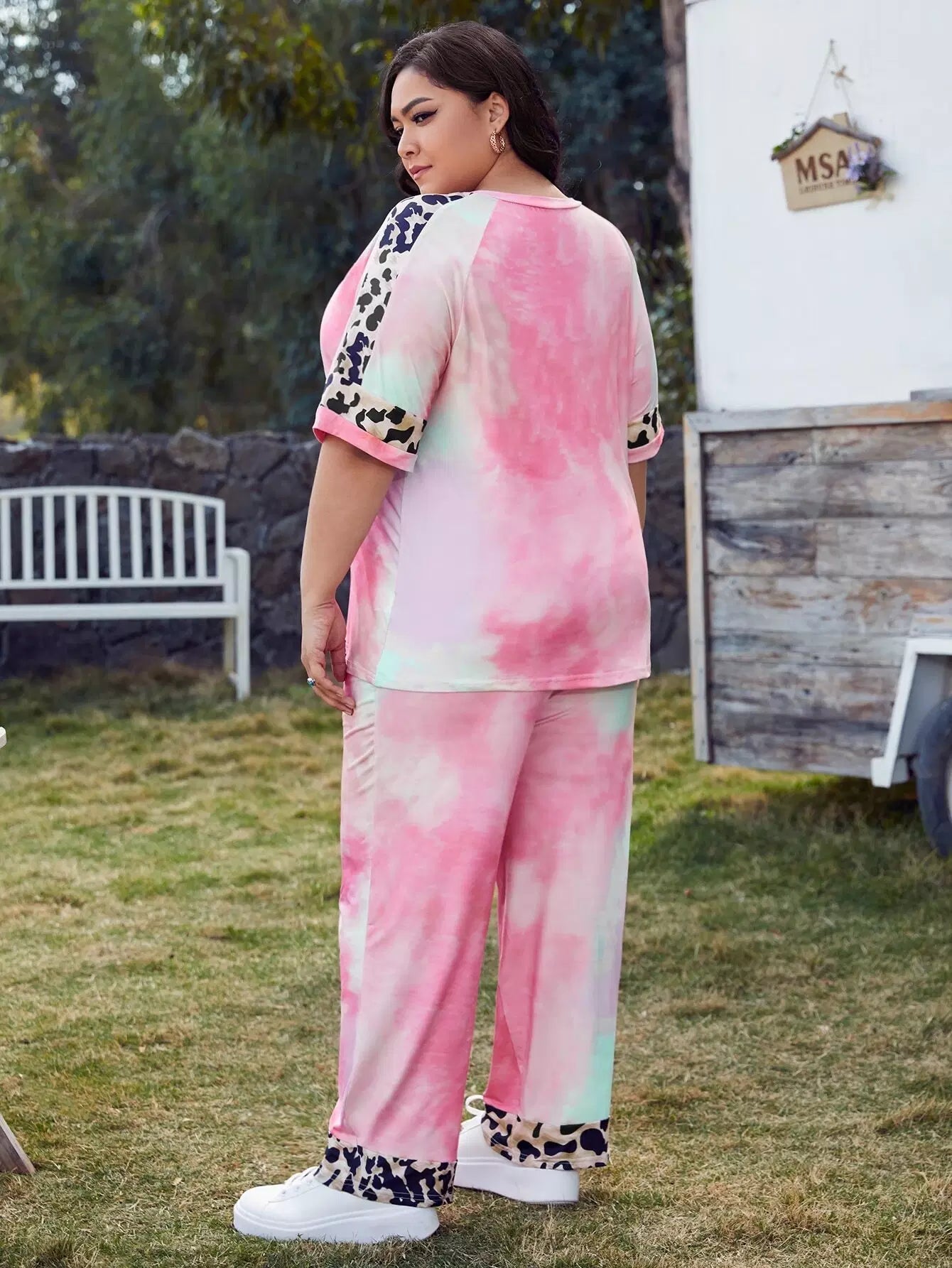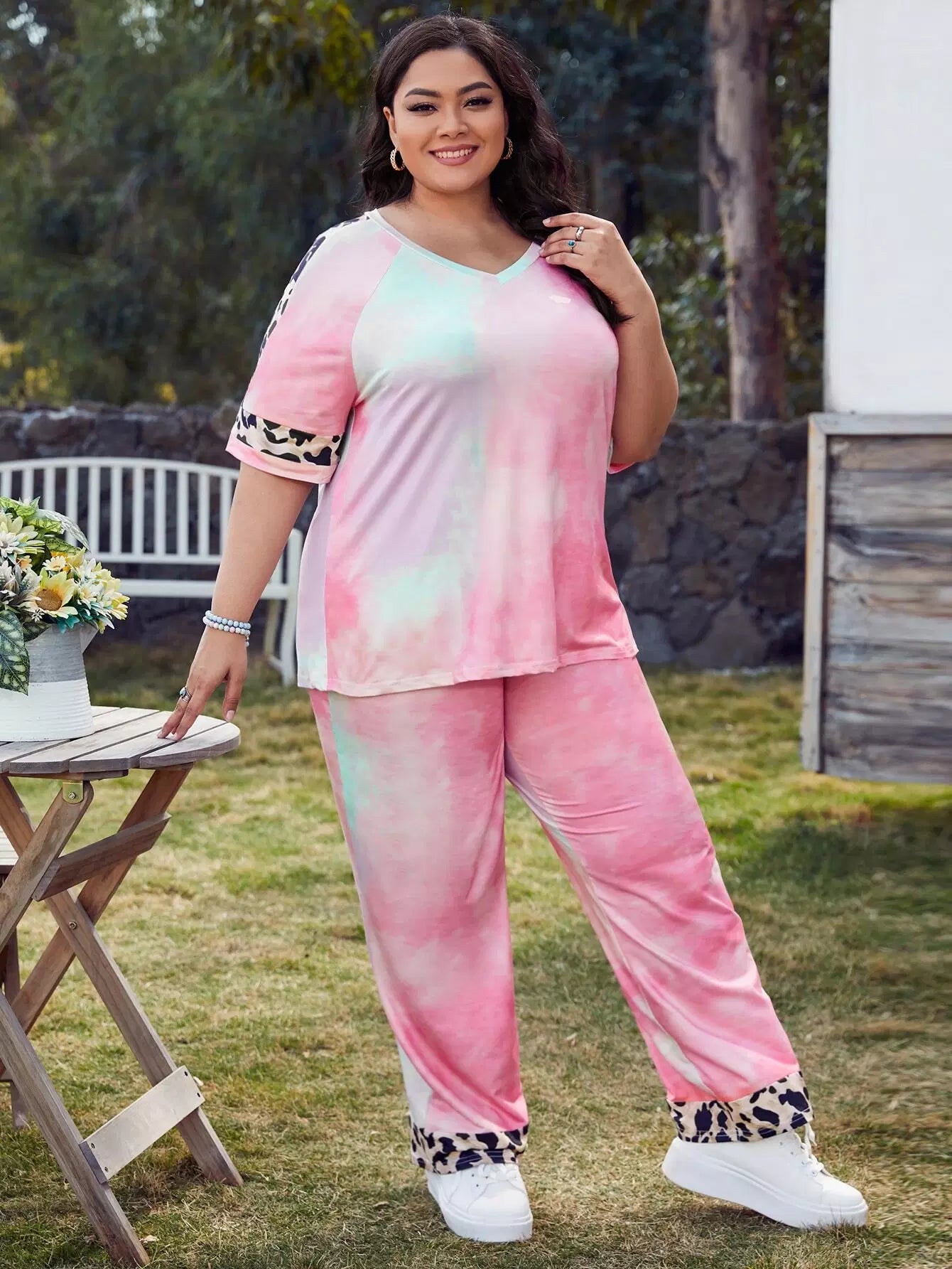 تي شيرت وبنطلون بأكمام متباينة بأربطة بلون مغاير