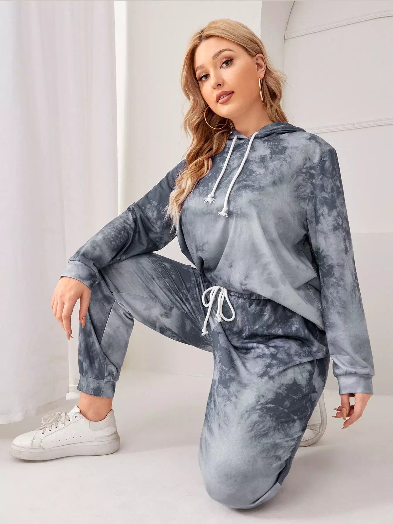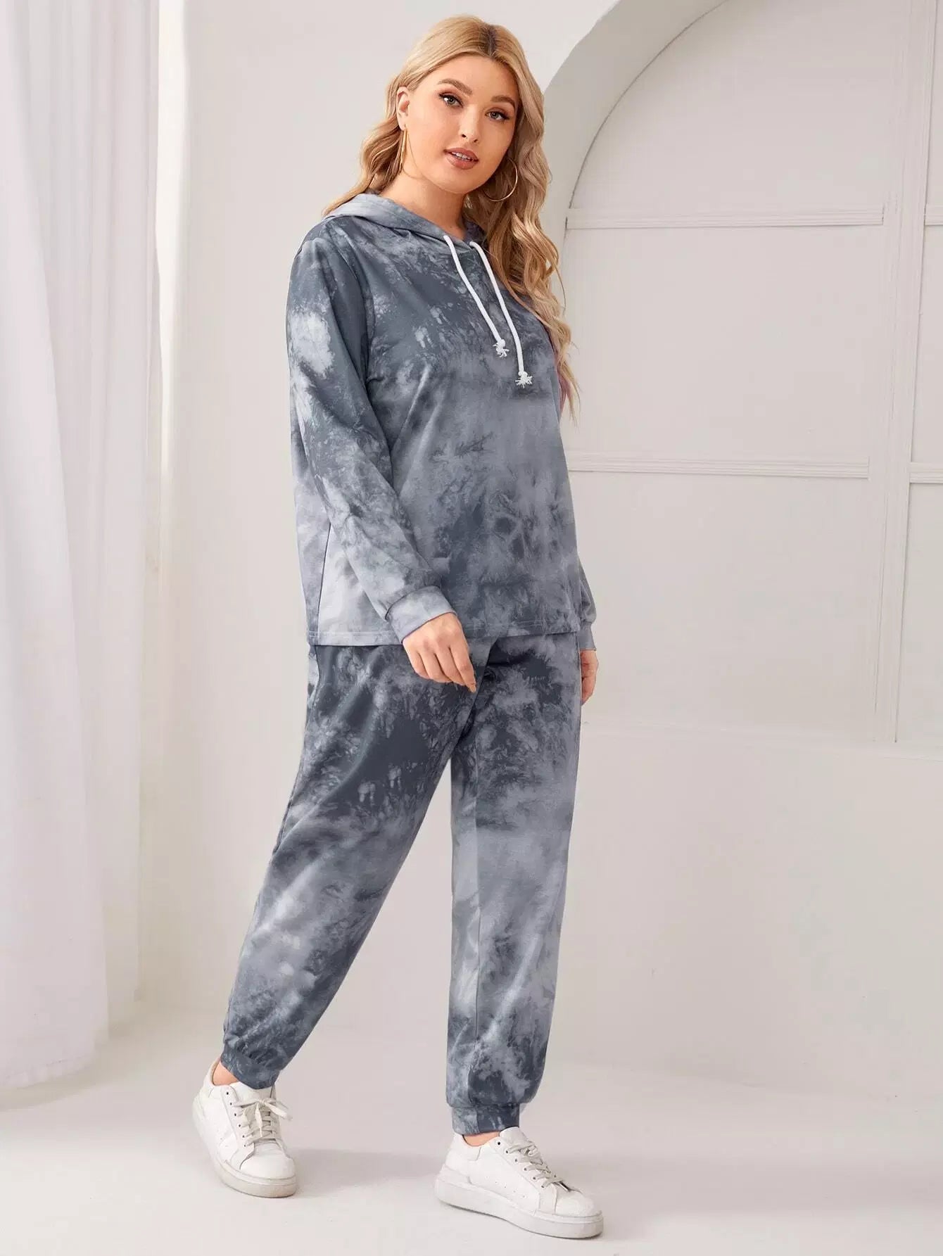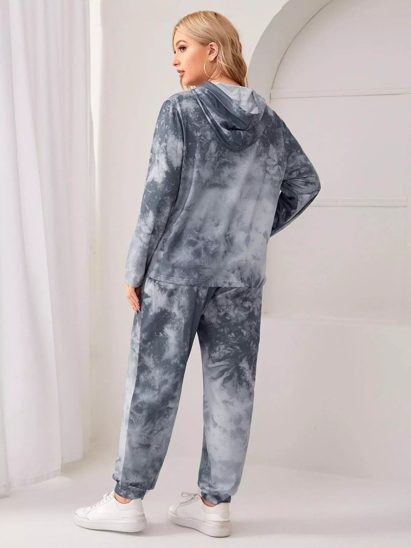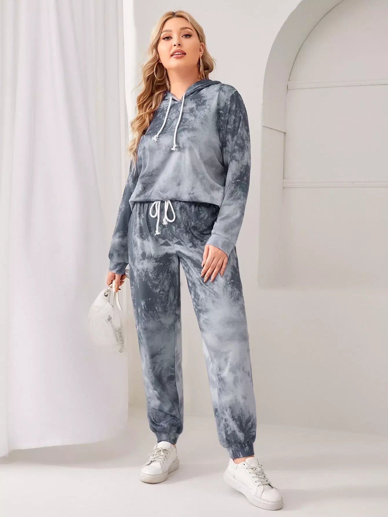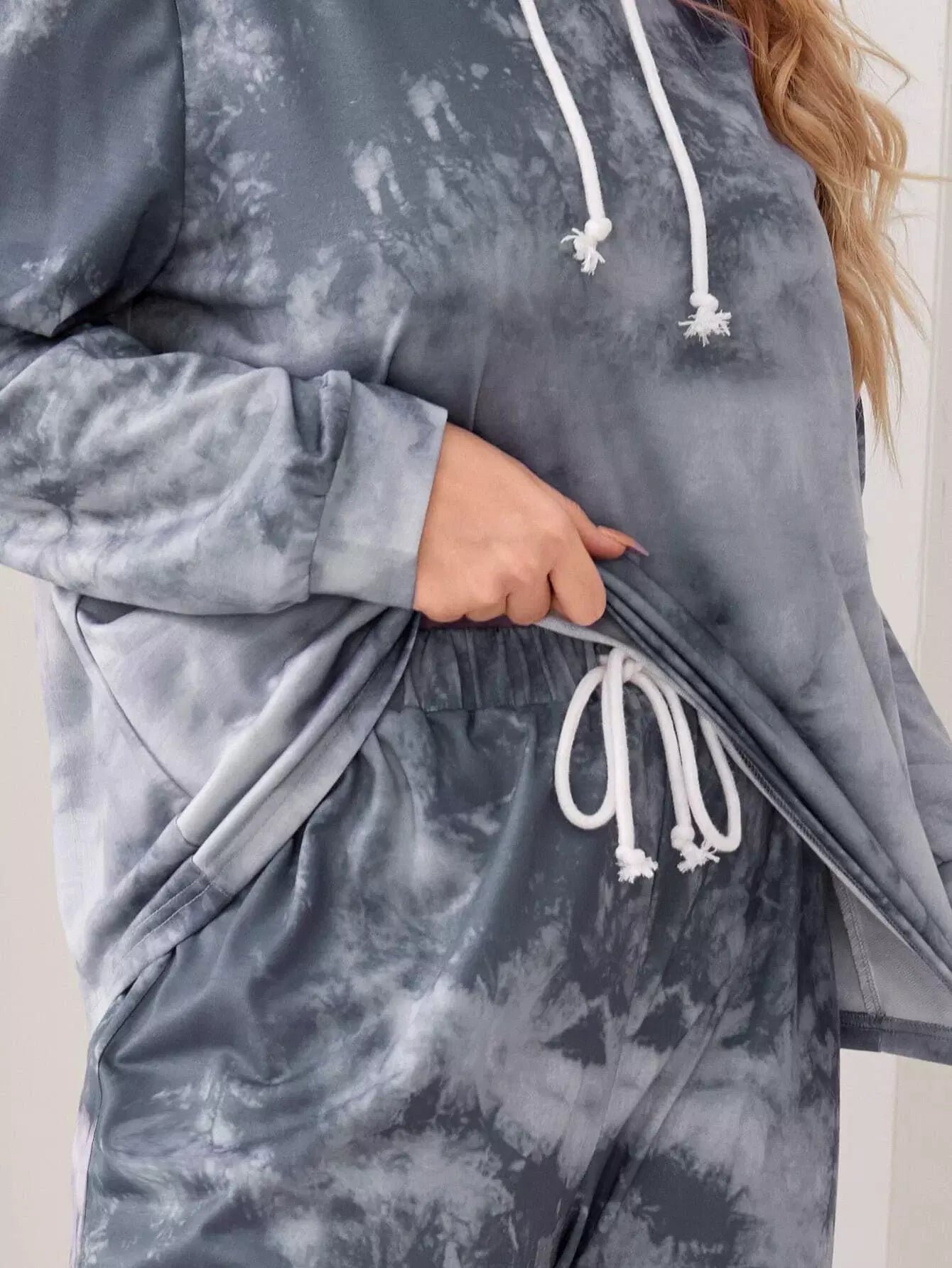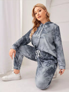 بلس هودي وسراويل رياضية بقبعة برباط مصبوغ برباط بلاس