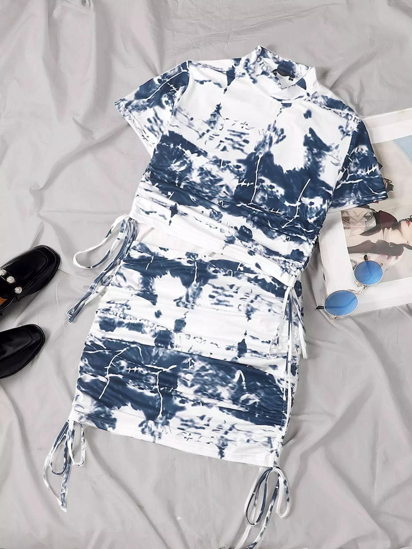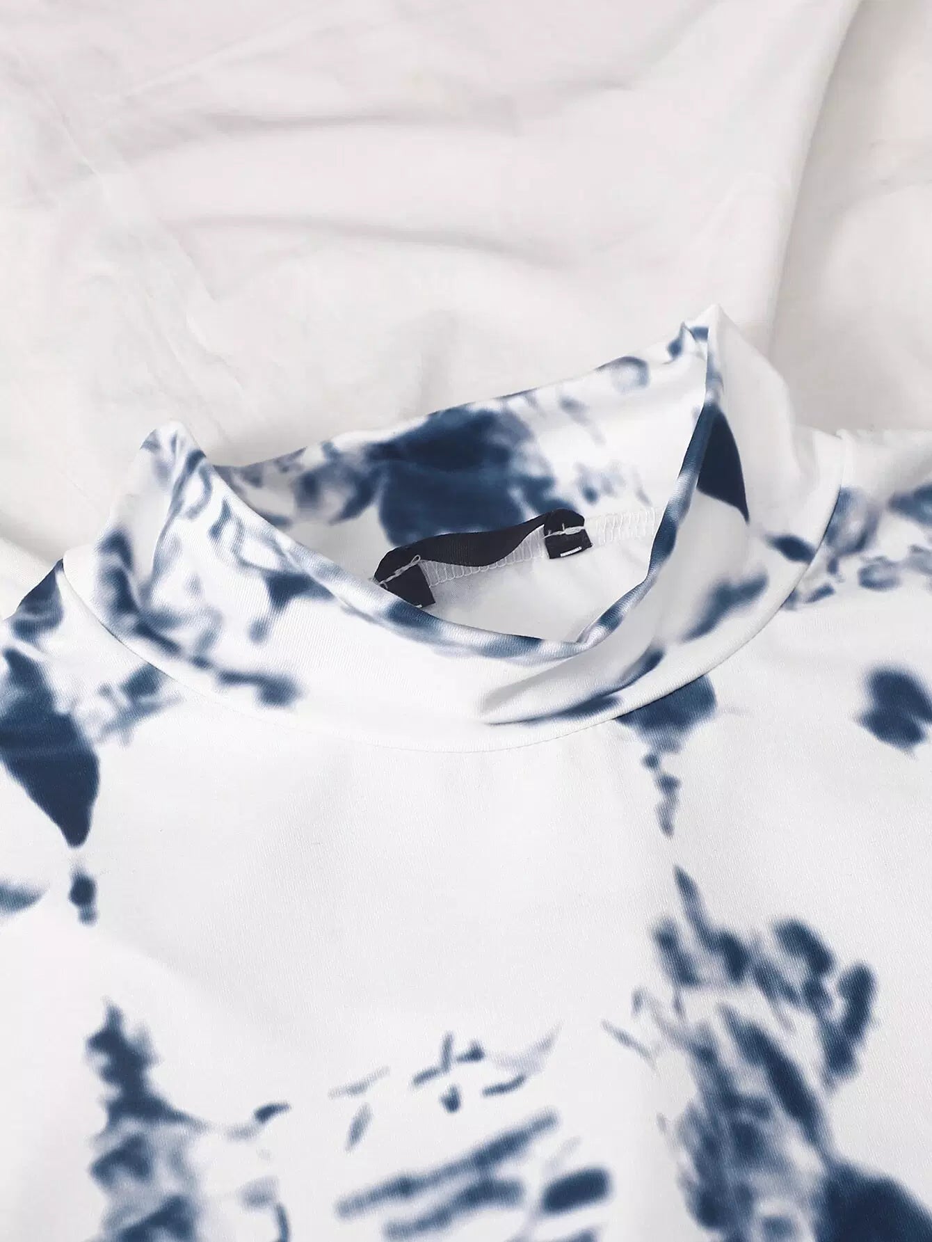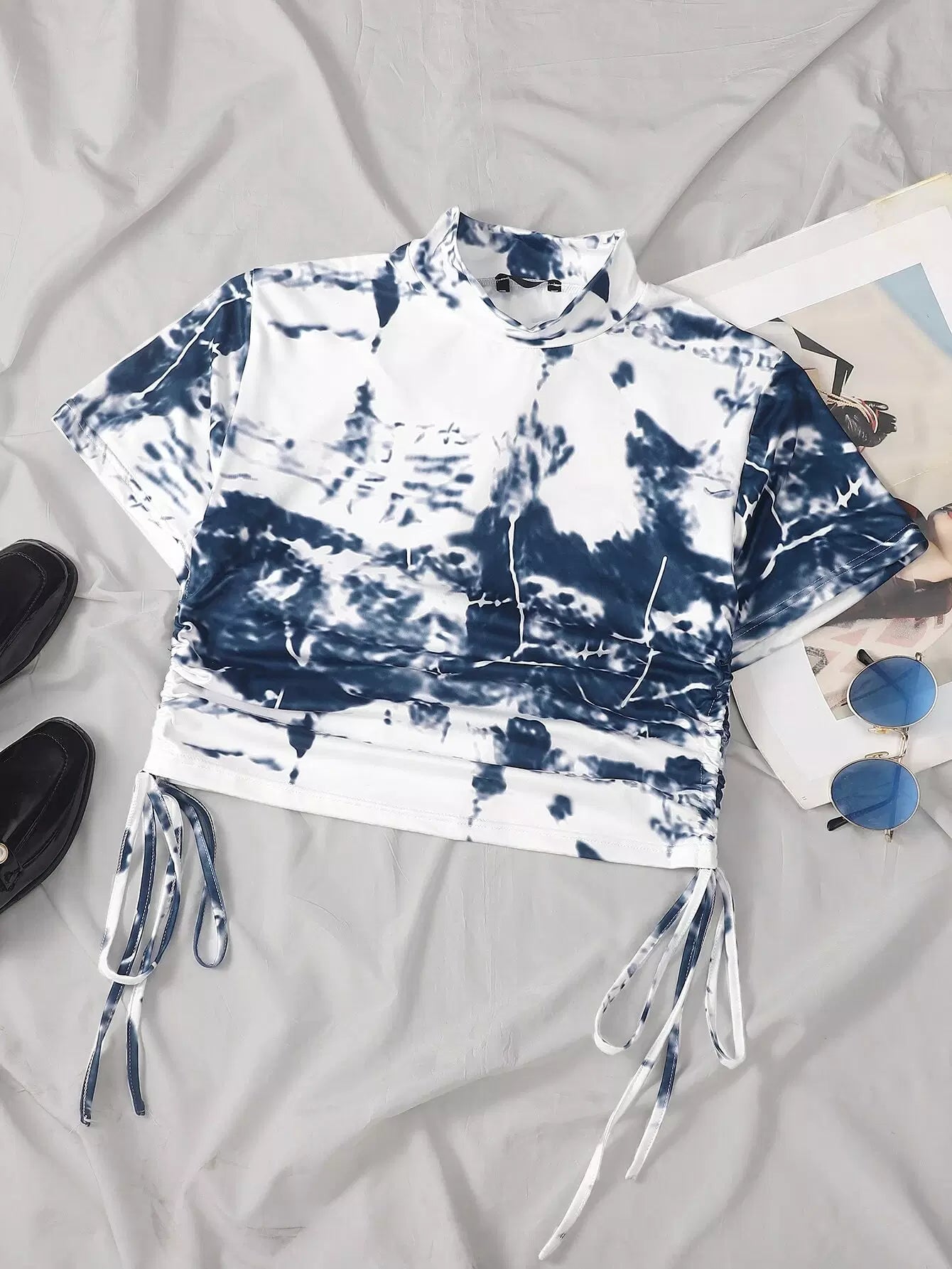 تي شيرت برقبة زائد مصبوغ بربطة عنق ورباط جانبي