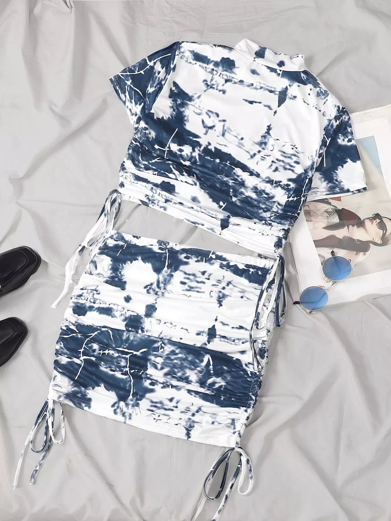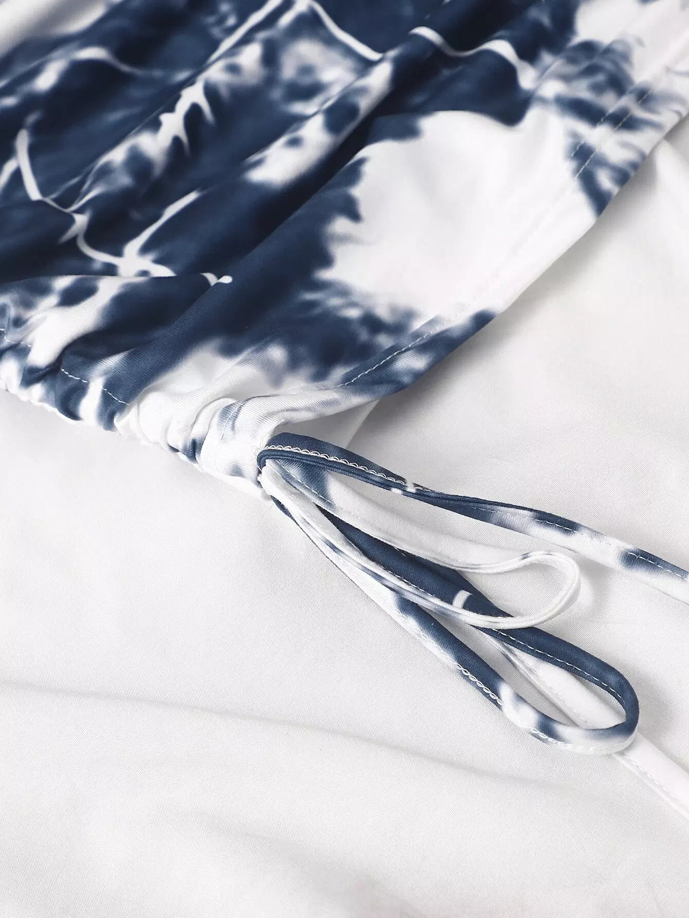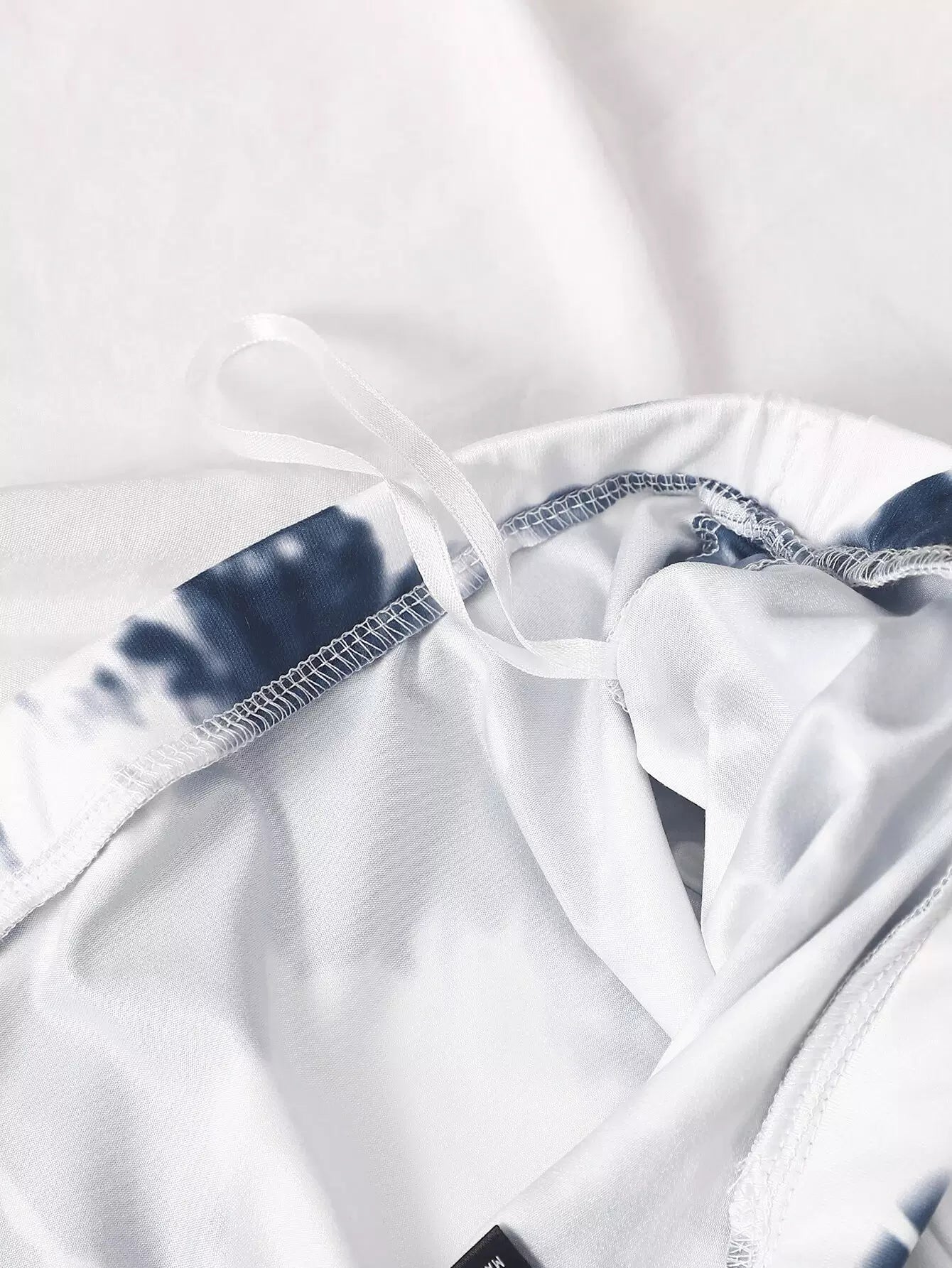 تي شيرت برقبة زائد مصبوغ بربطة عنق ورباط جانبي