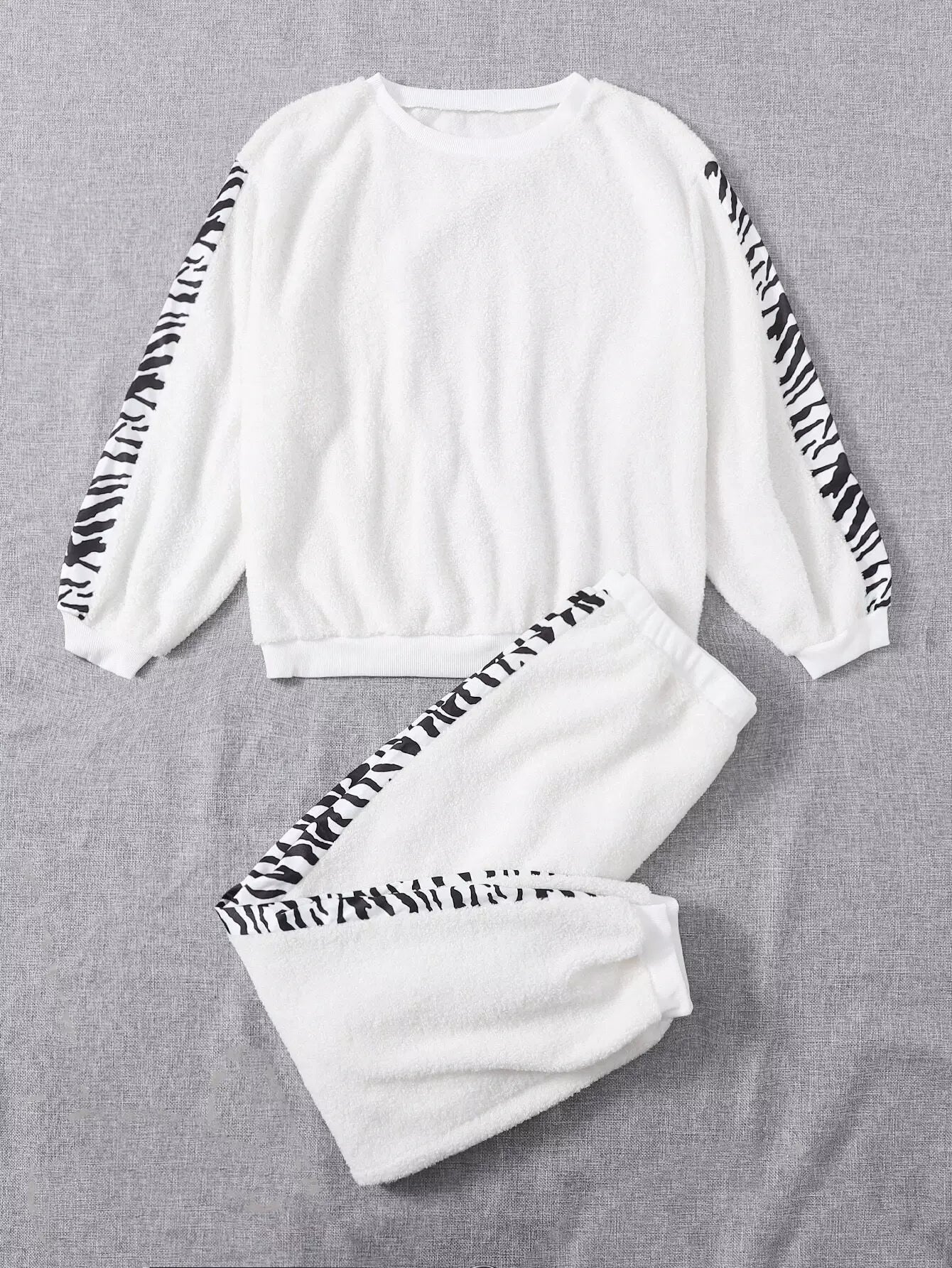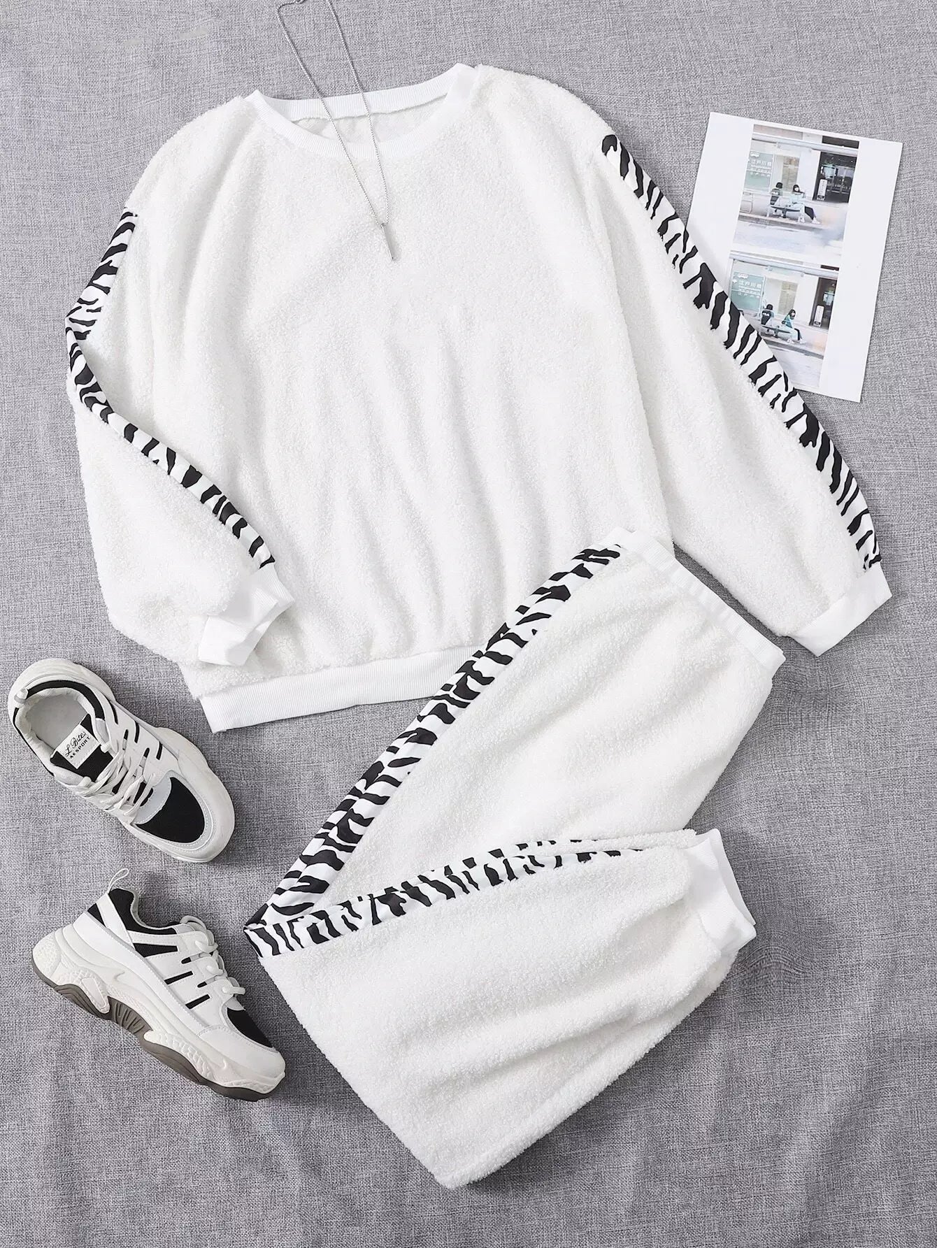 بلس سويت شيرت تي شيرت مخطط بحمار وحشي مع بنطال رياضي