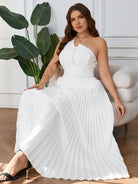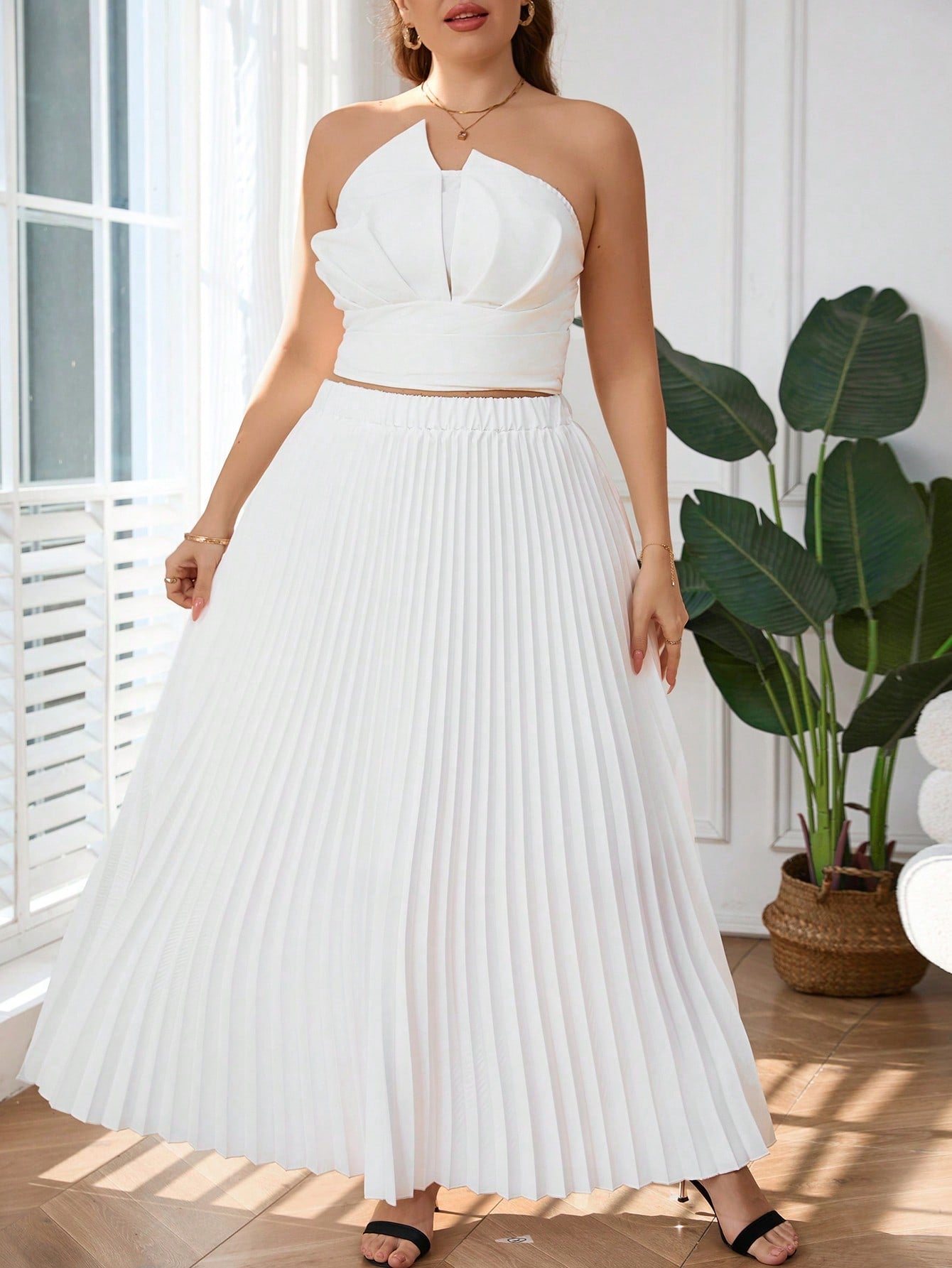 مجموعة Privï½ للنساء بمقاسات كبيرة مكونة من قطعتين: بلوزة قصيرة أنيقة بيضاء غير متماثلة مكشكشة مع ياقة منتفخة و
