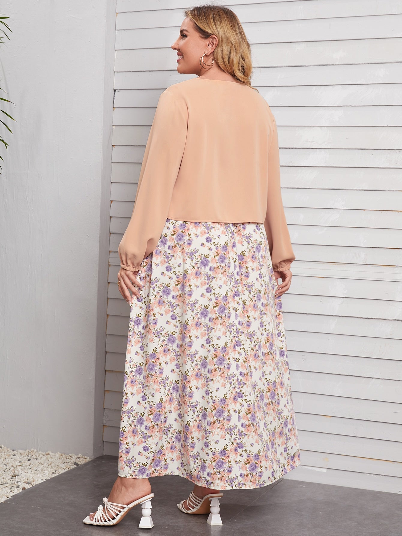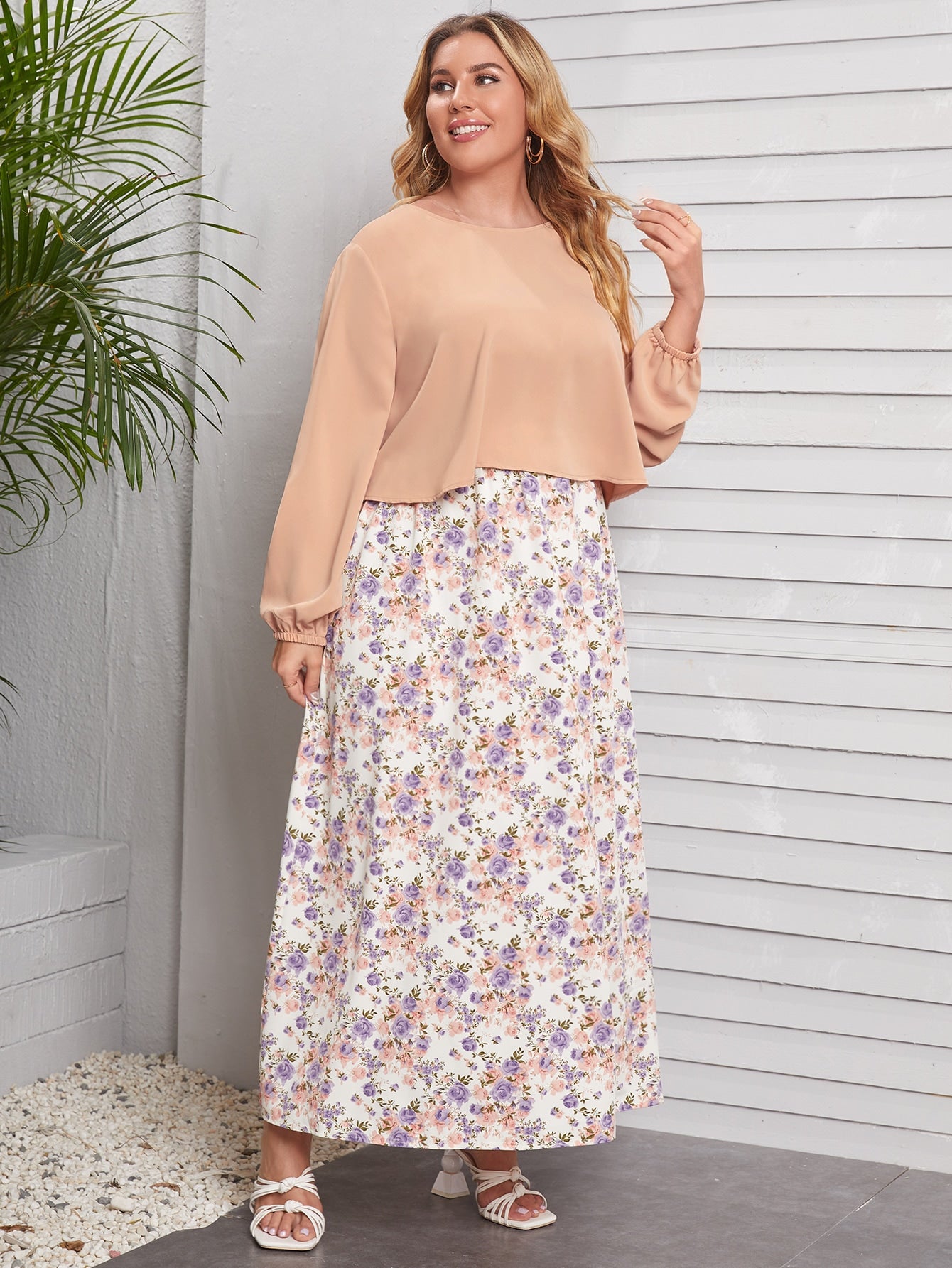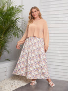 Plus Bishop Sleeve Blouse With Floral Skirt