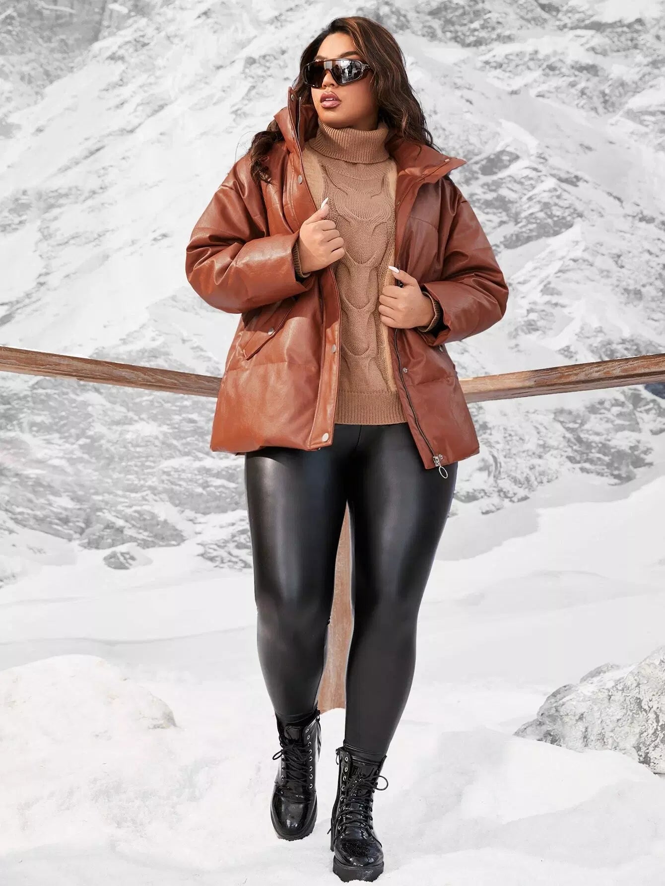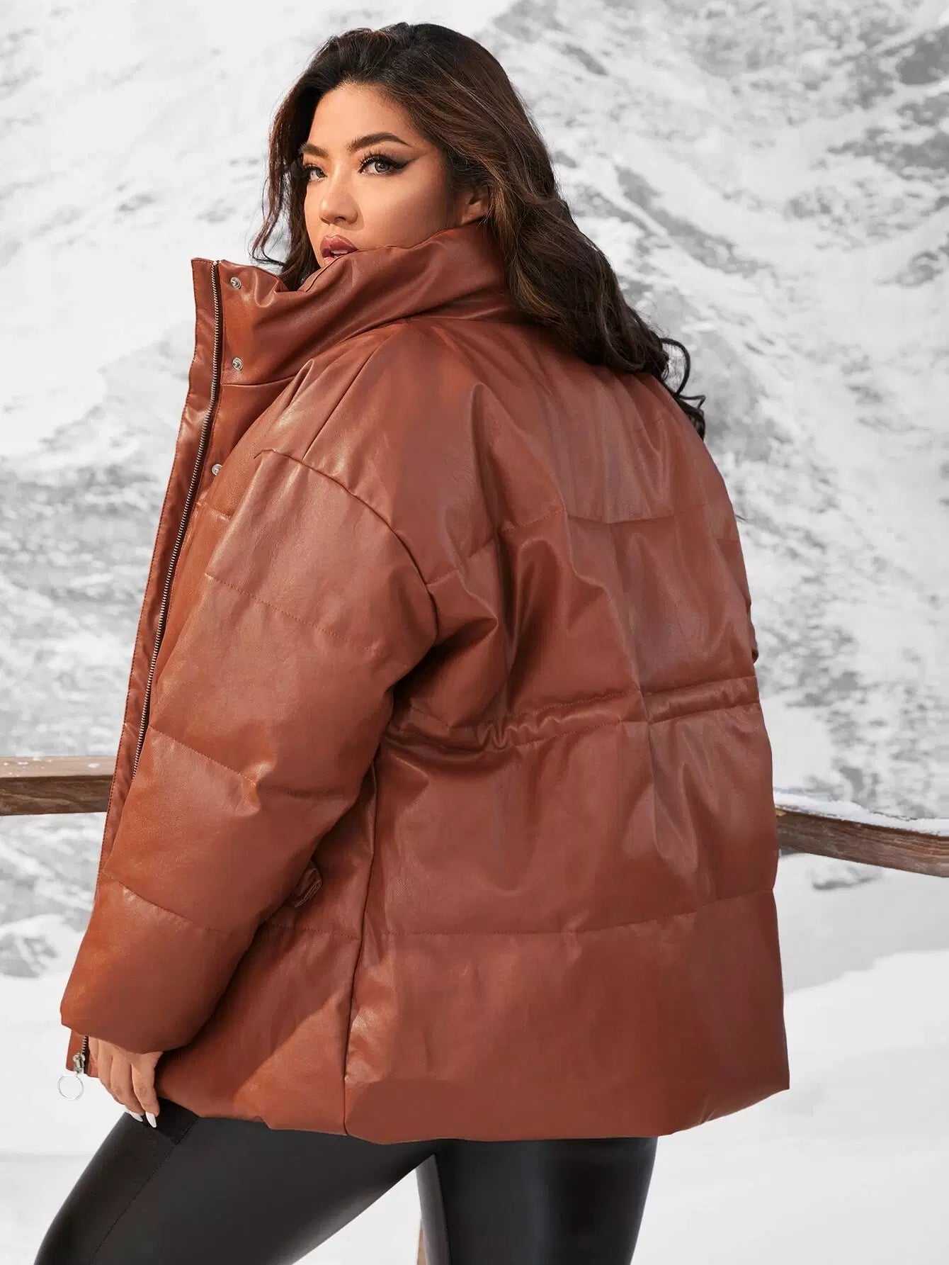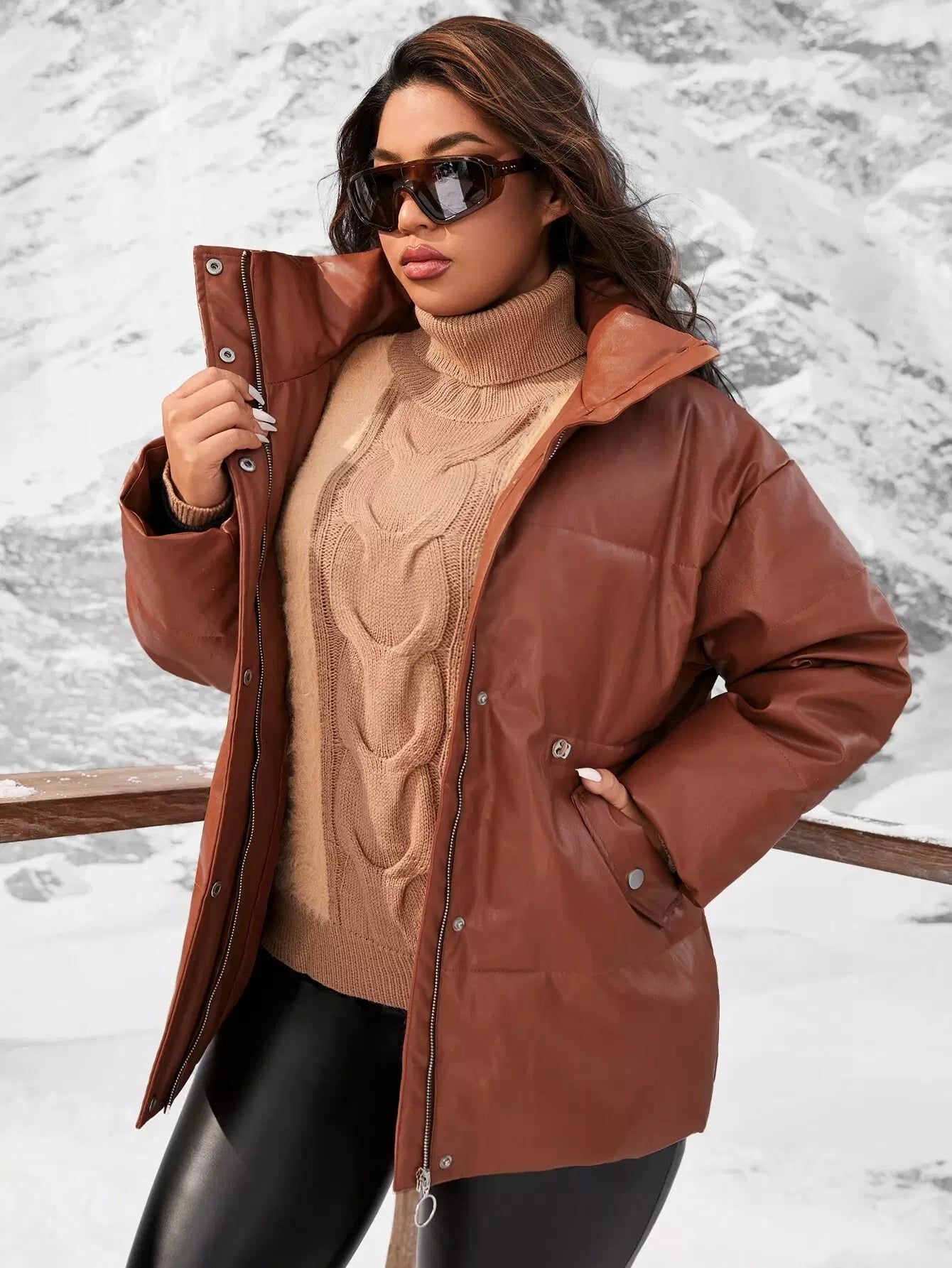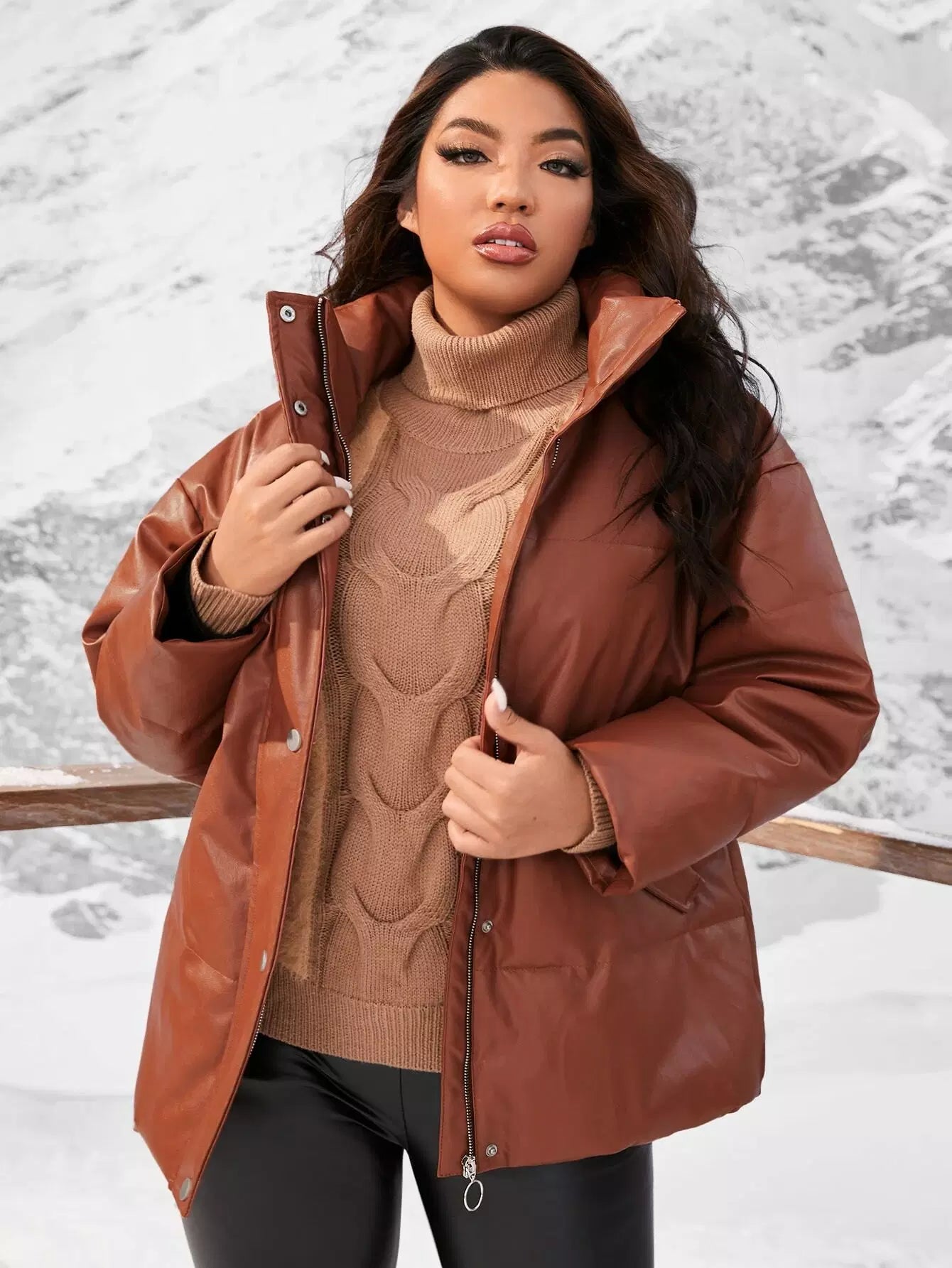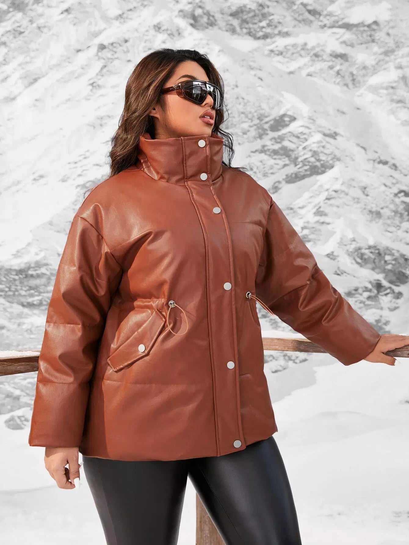 نحيف - مقاس كبير الرباط الخصر بو الجلود معطف منتفخ