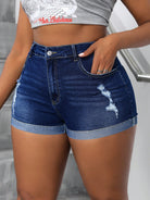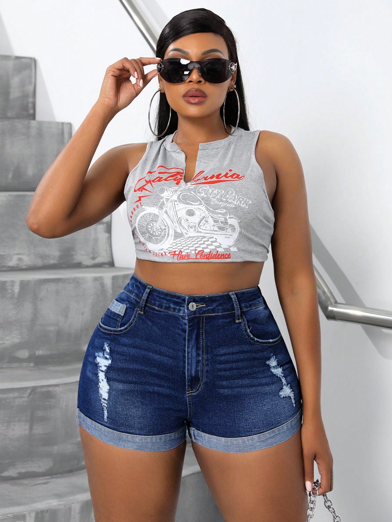 CURVE+ Plus Size Women Casual Distressed Denim Skinny Stretch Shorts, Street Style, Summer Summer Outfits